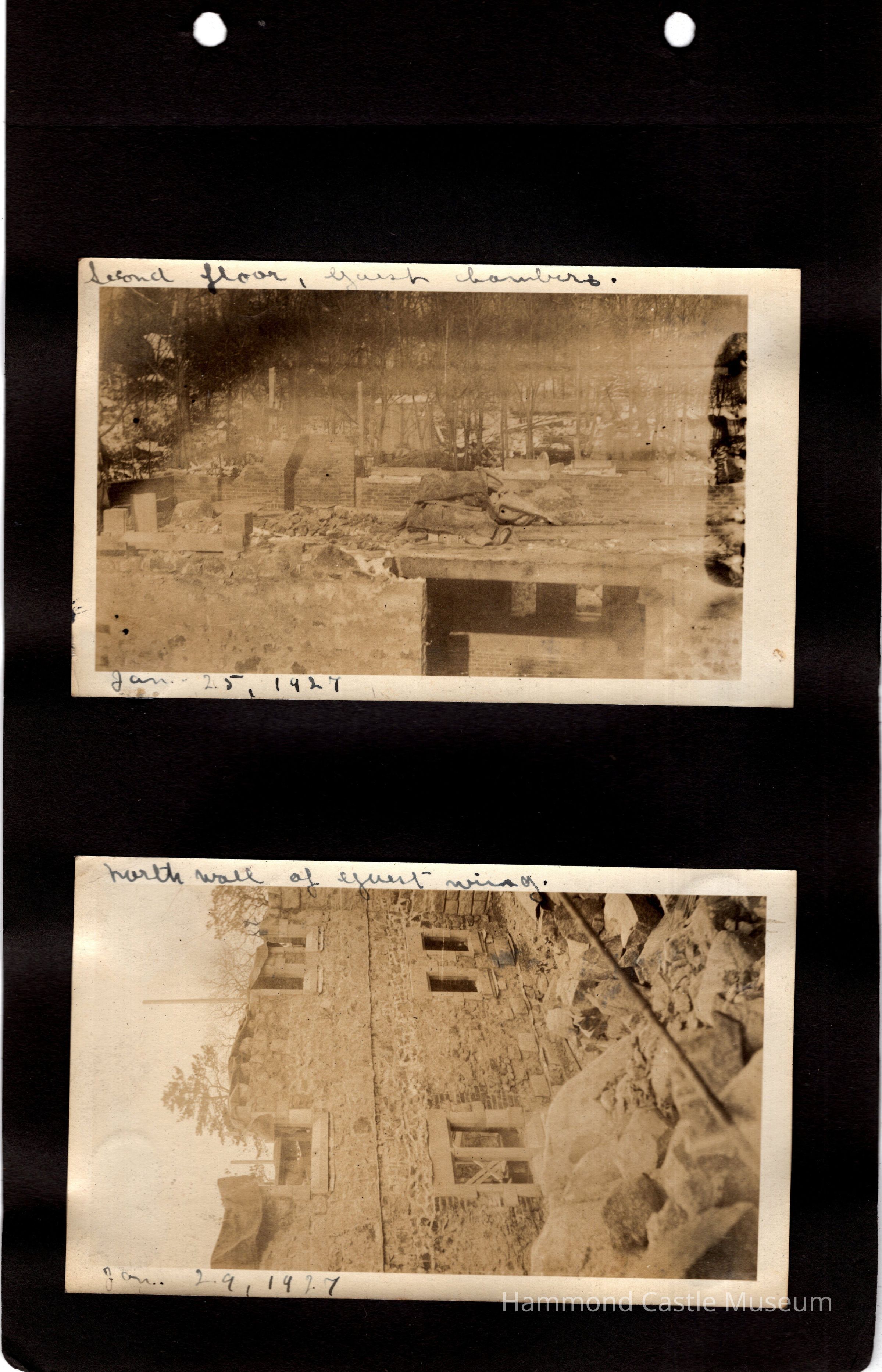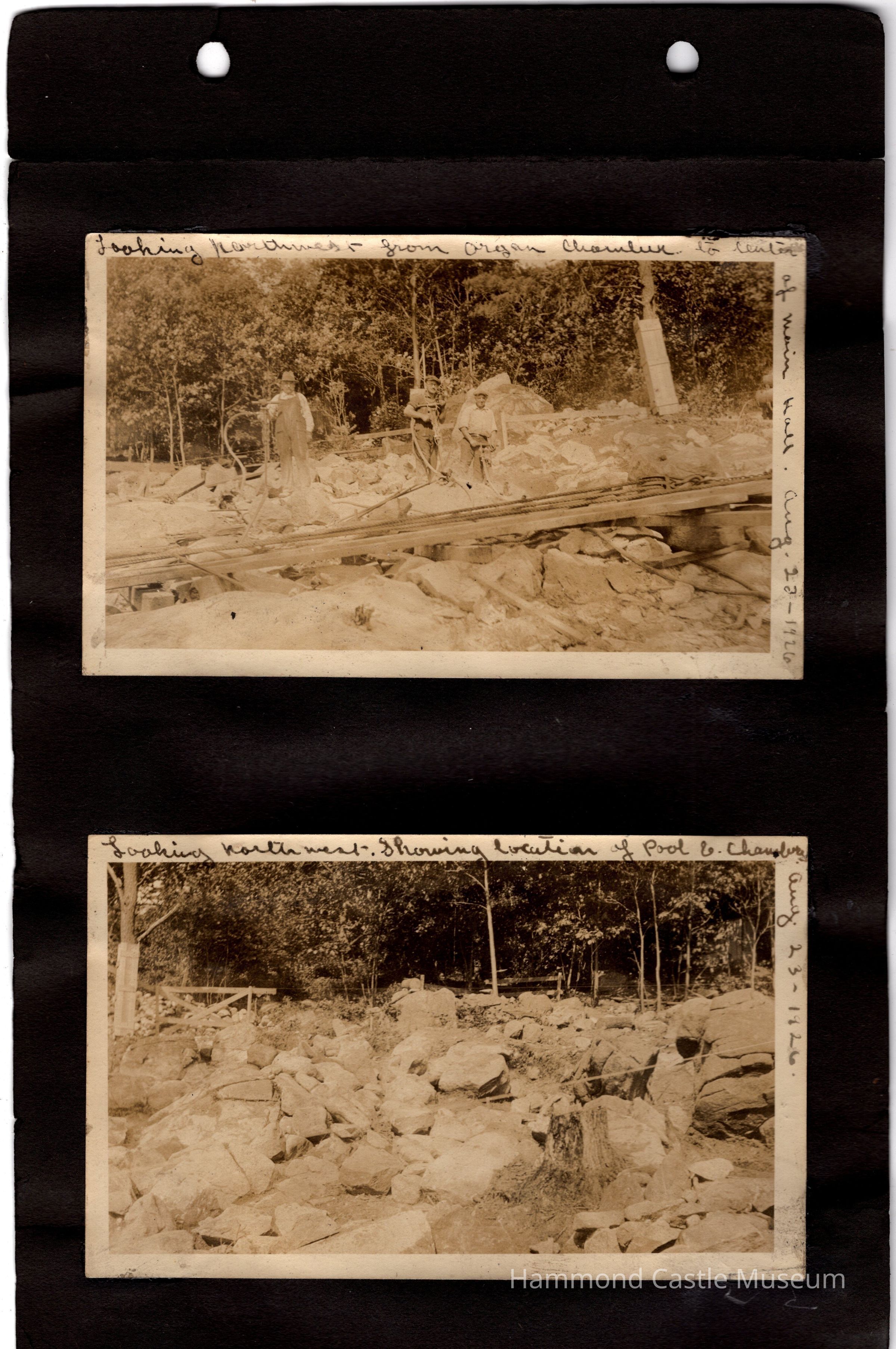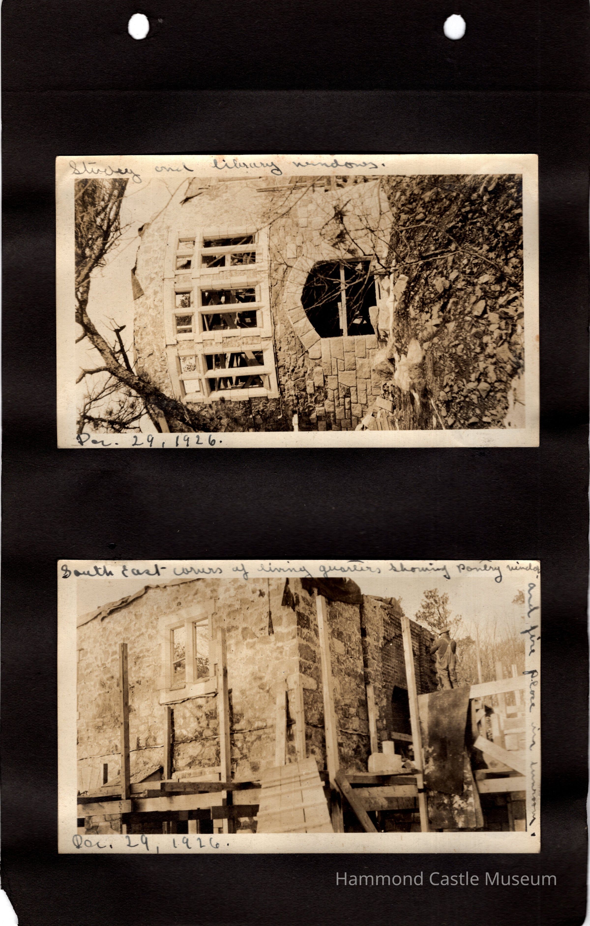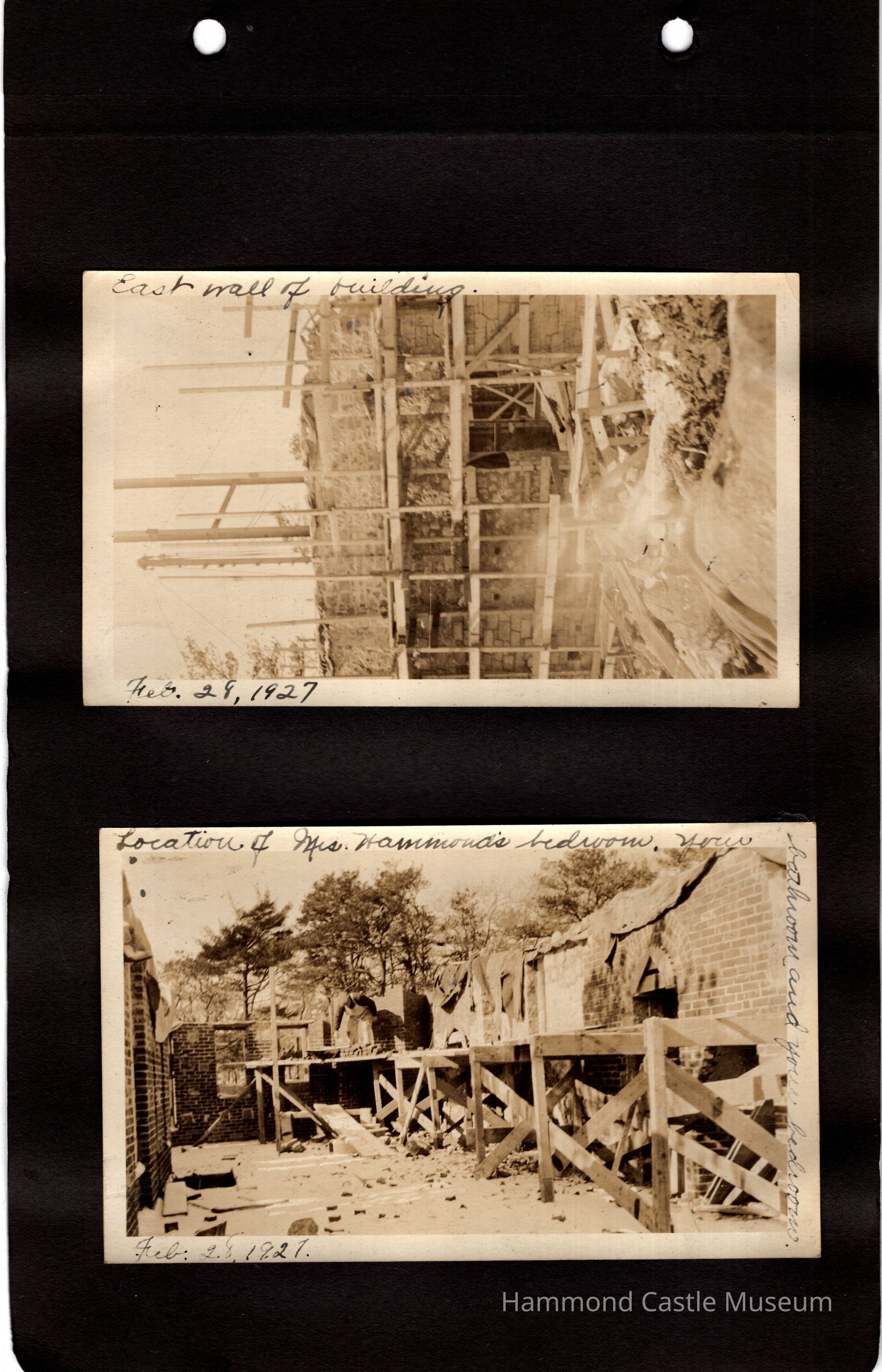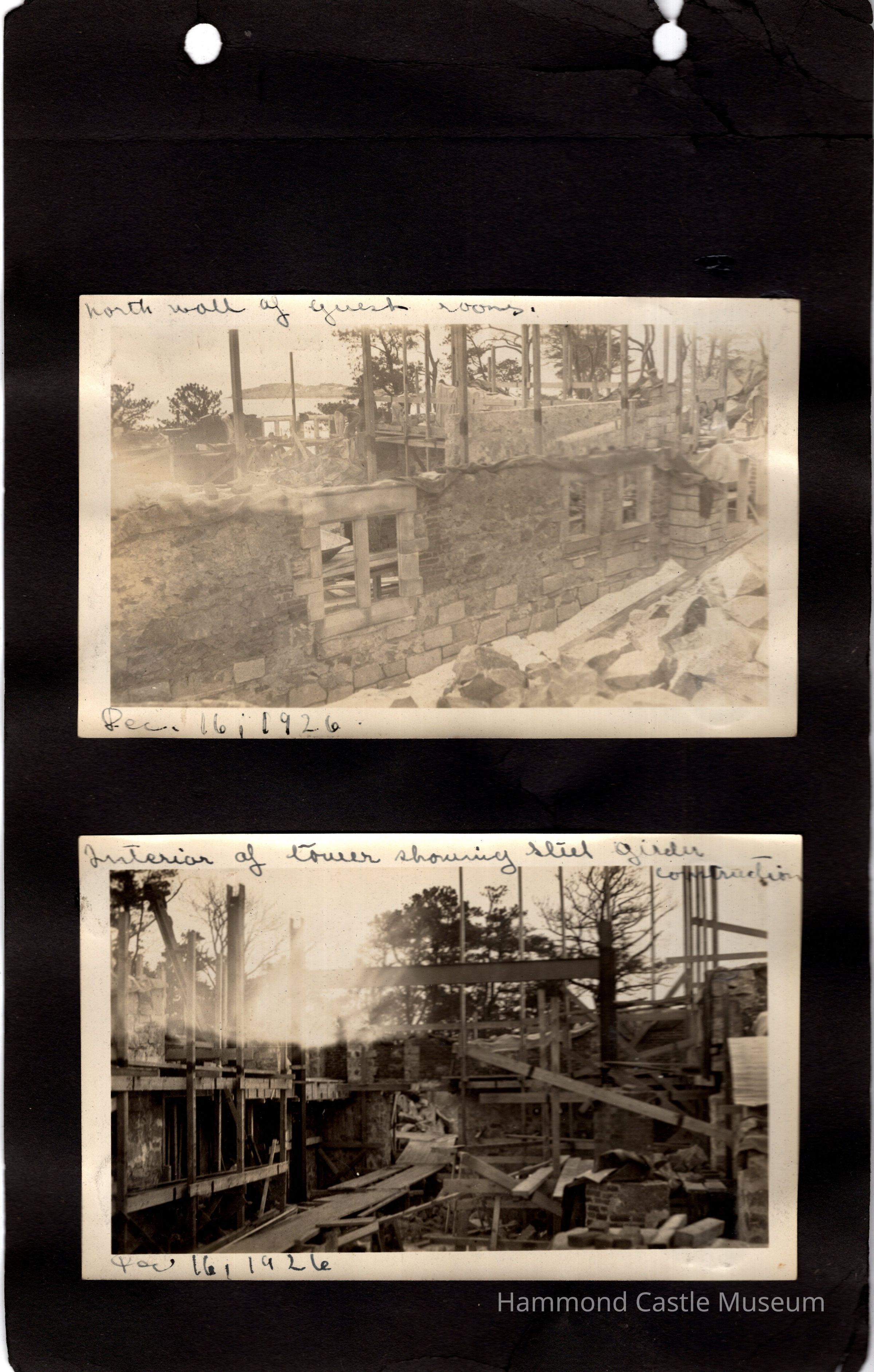 1926-1927 album of photos with annotations from the construction of the castle. (Book dismantled and stored in binder)