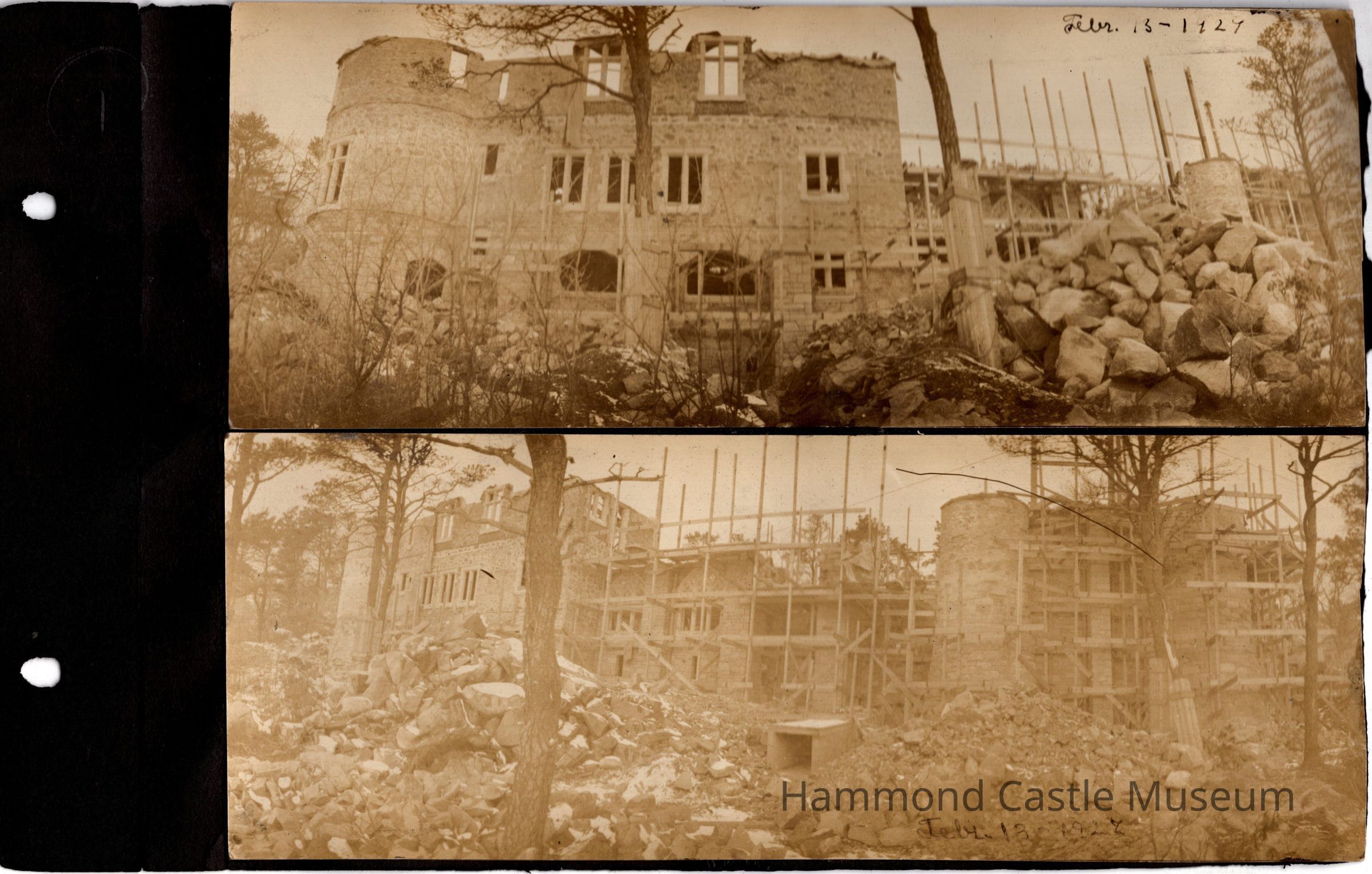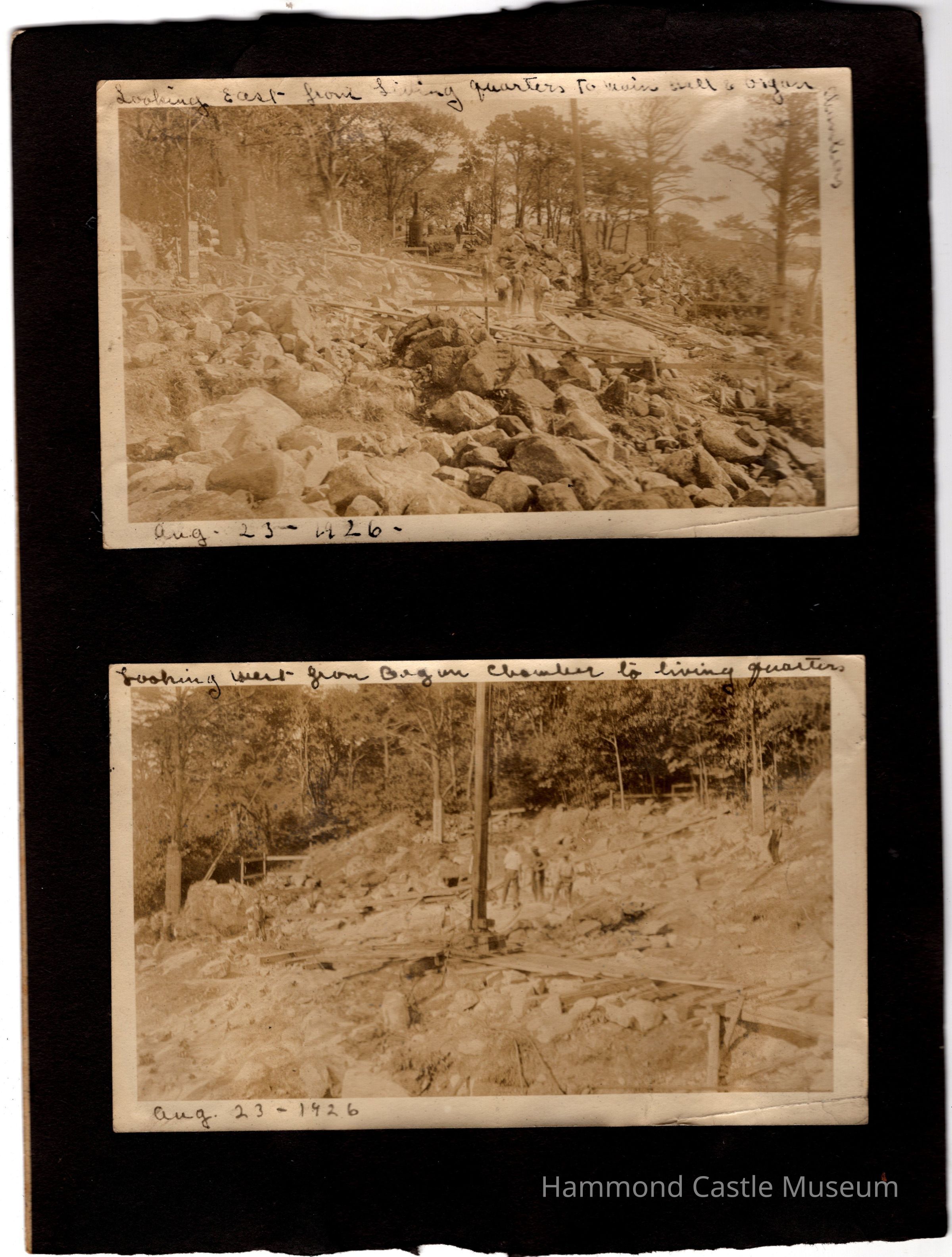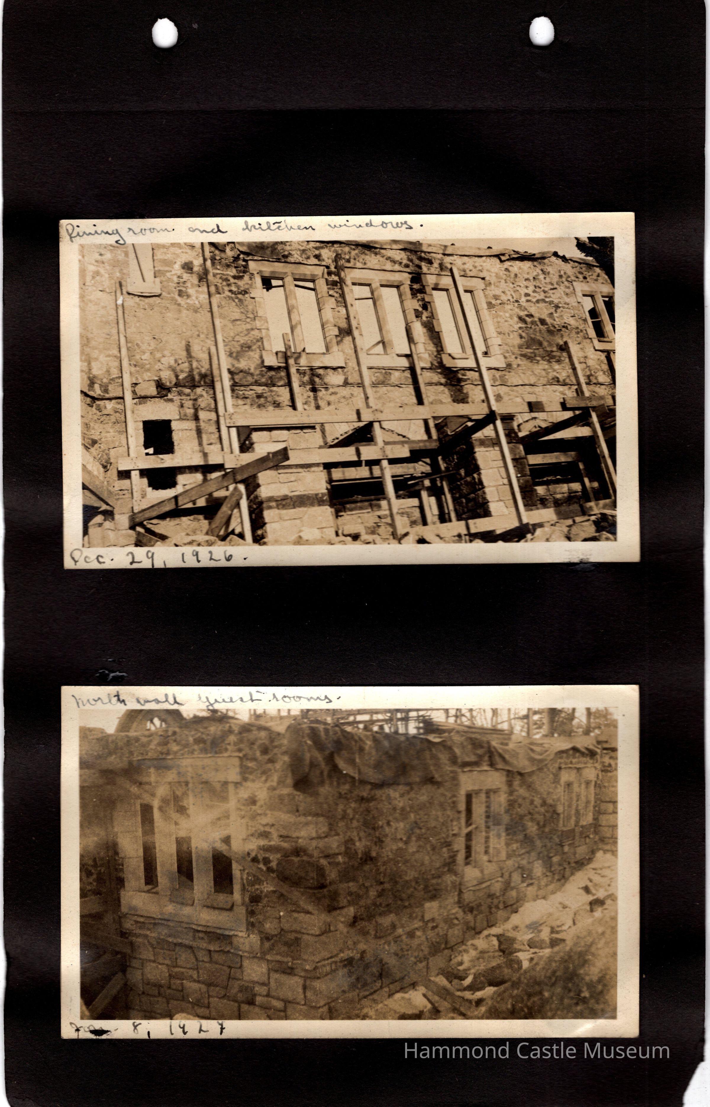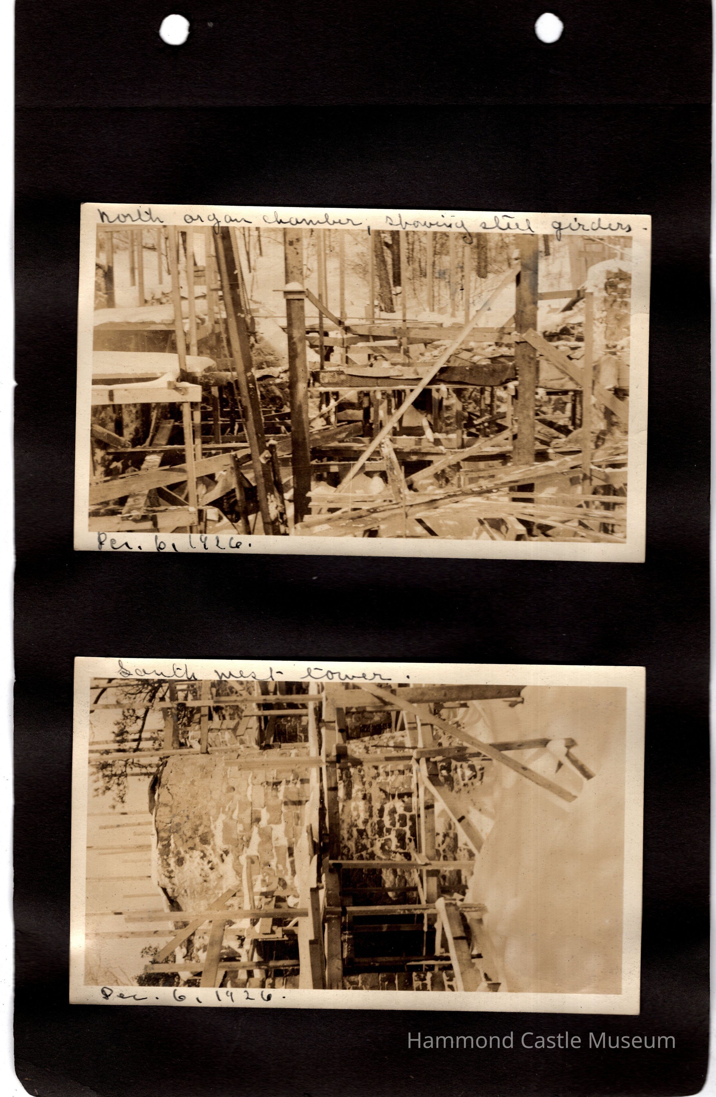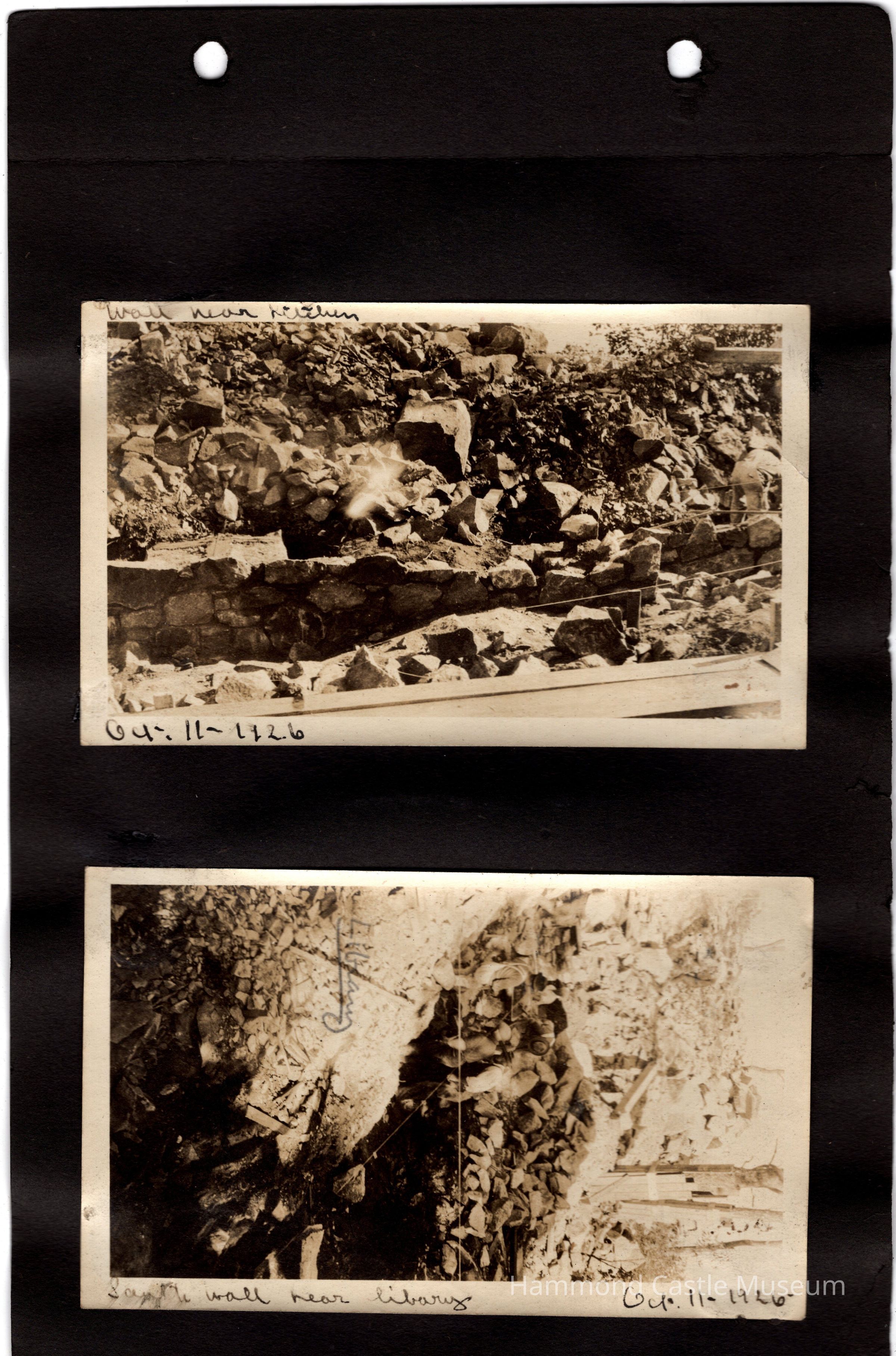 1926-1927 album of photos with annotations from the construction of the castle. (Book dismantled and stored in binder)