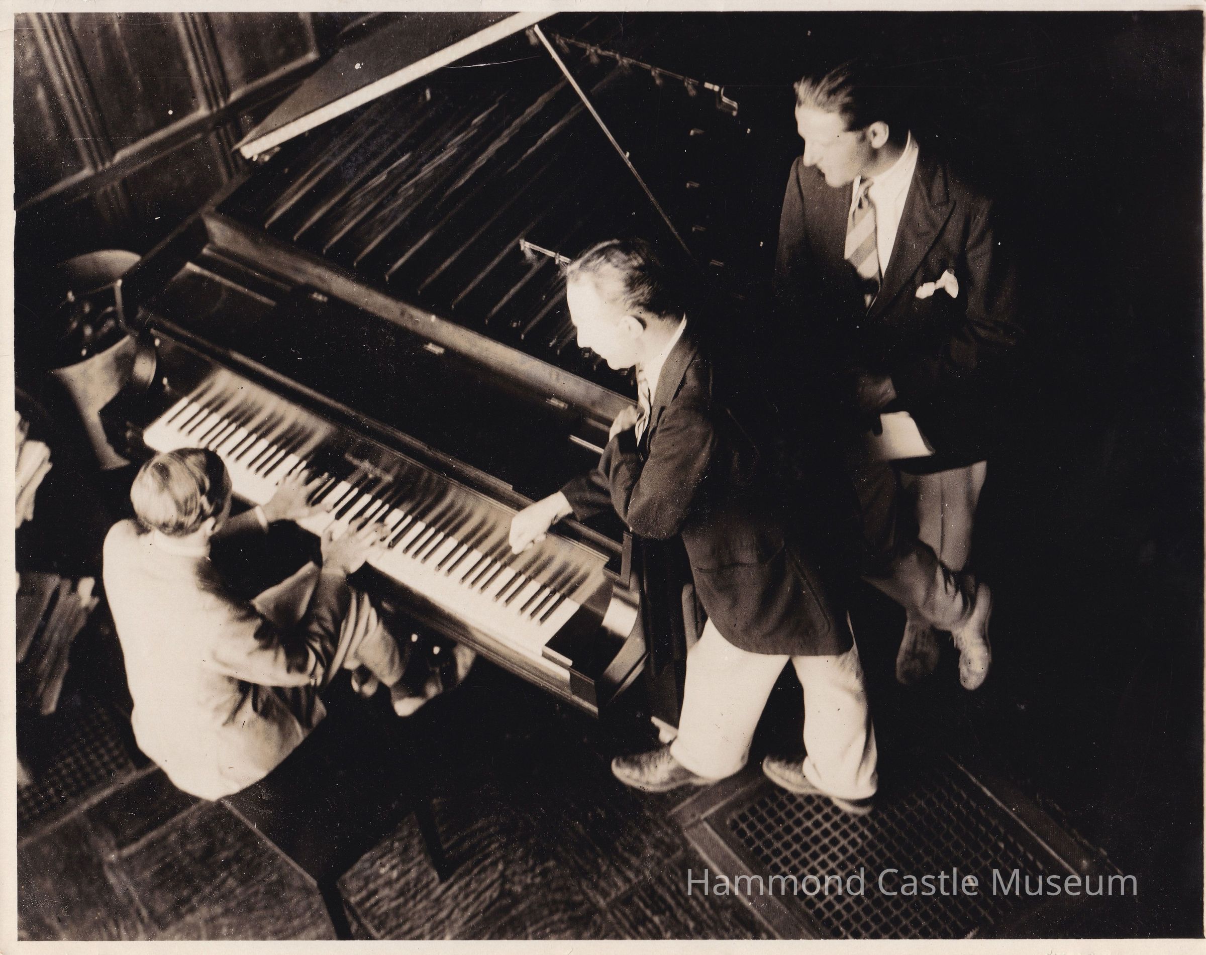 Photo taken1926 ca with Donahue at tonal piano (with shutters) with Hammond & Leslie Buswell in bungalow