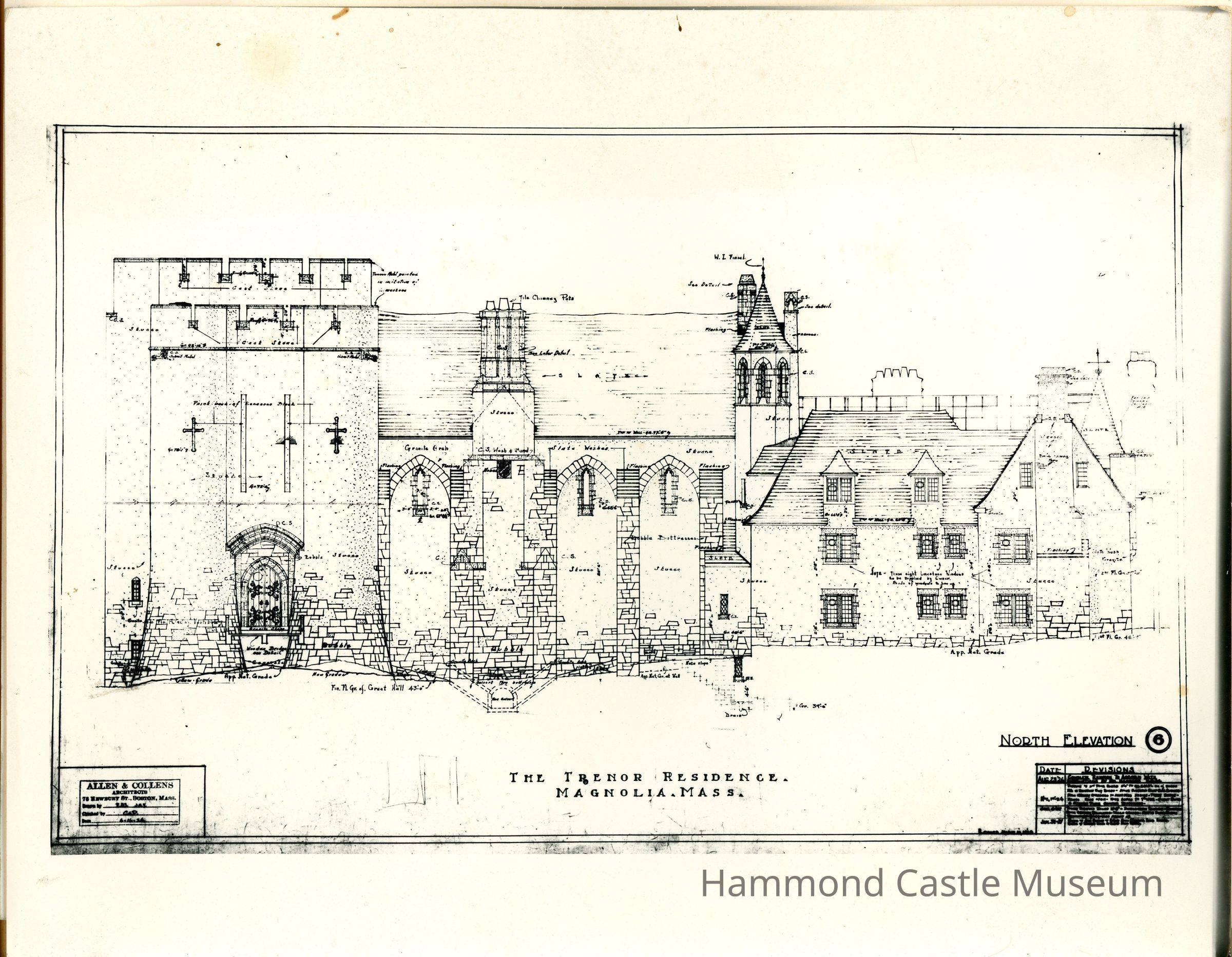 Photo of 1927 Allen and Collens elevation plans for castle (identified as Trenor Residence) Photo source unknown