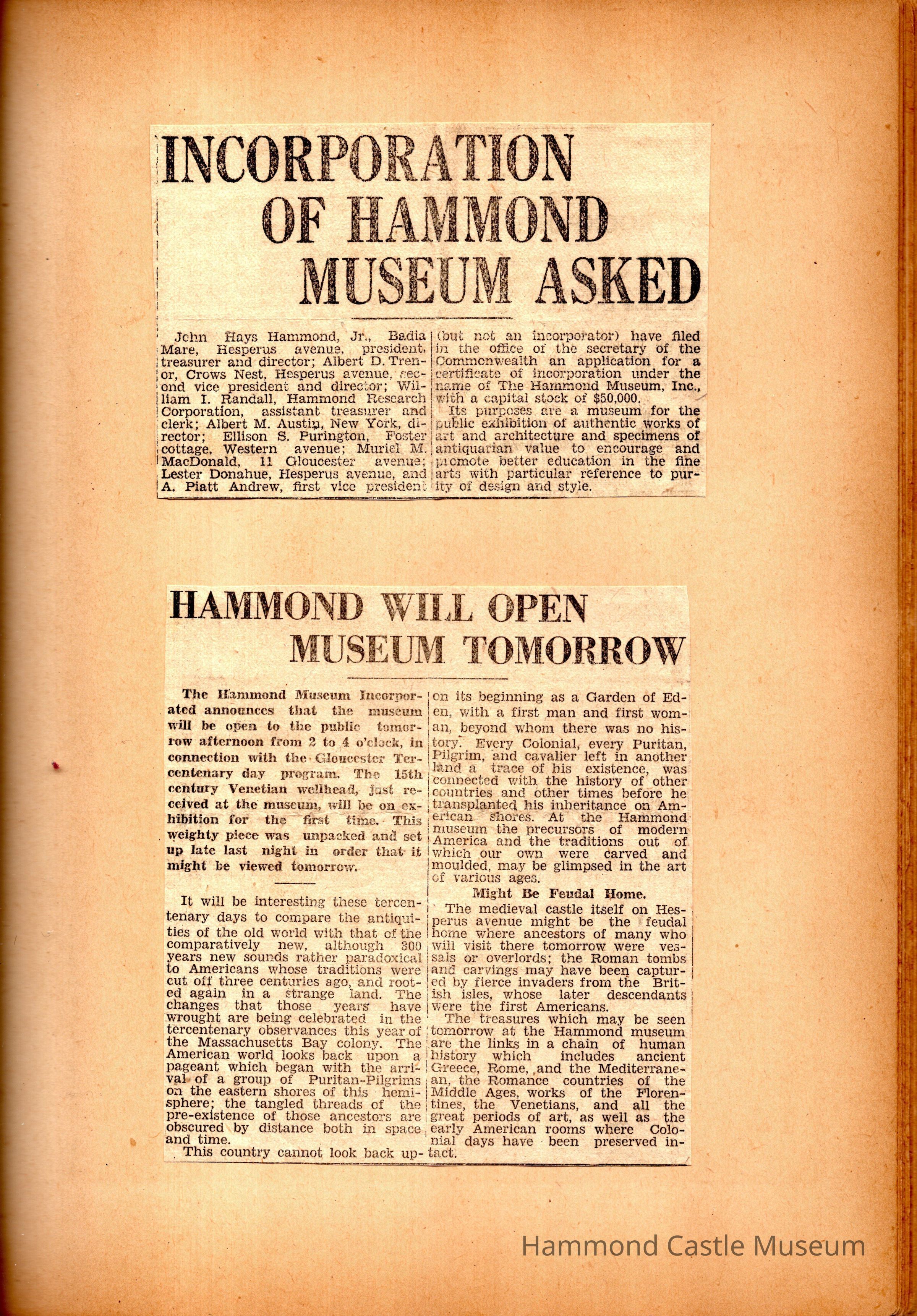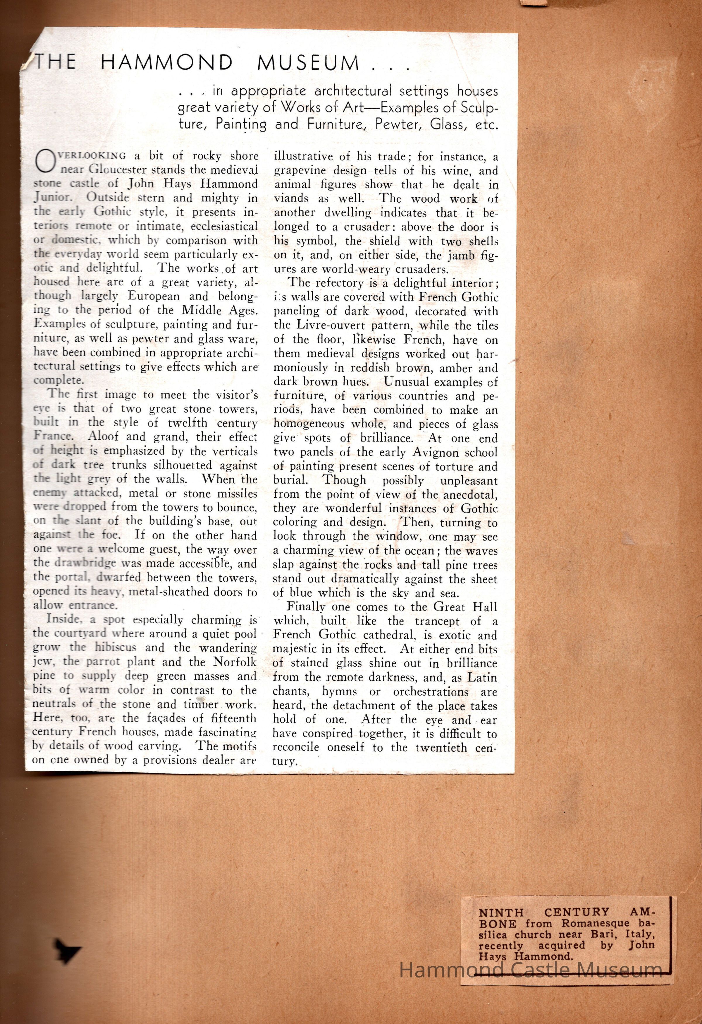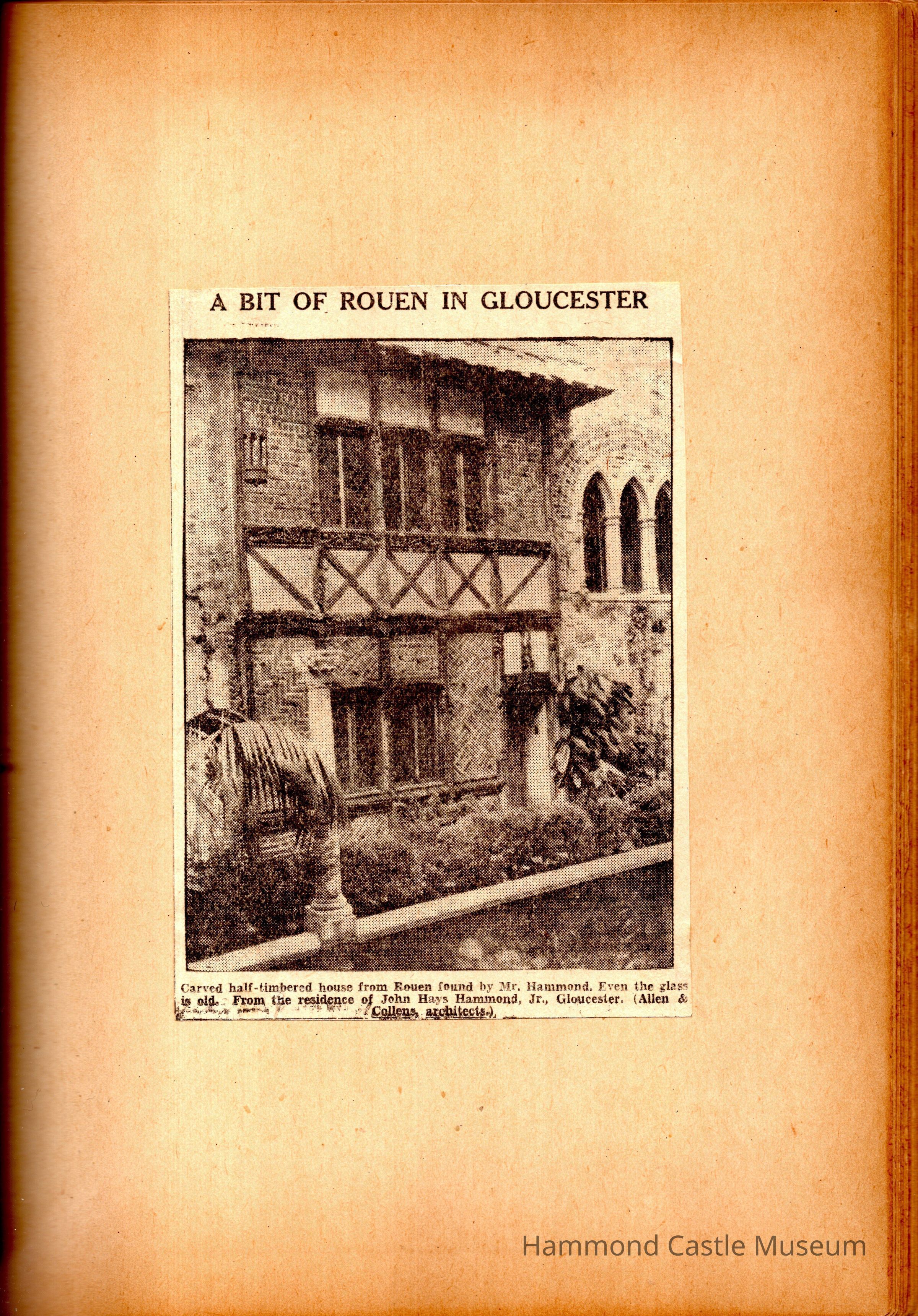 JHHJr scrapbook of the castle 191928-1950s Photos and articles about the castle, family, Willett & Hammond Washington D.C. house