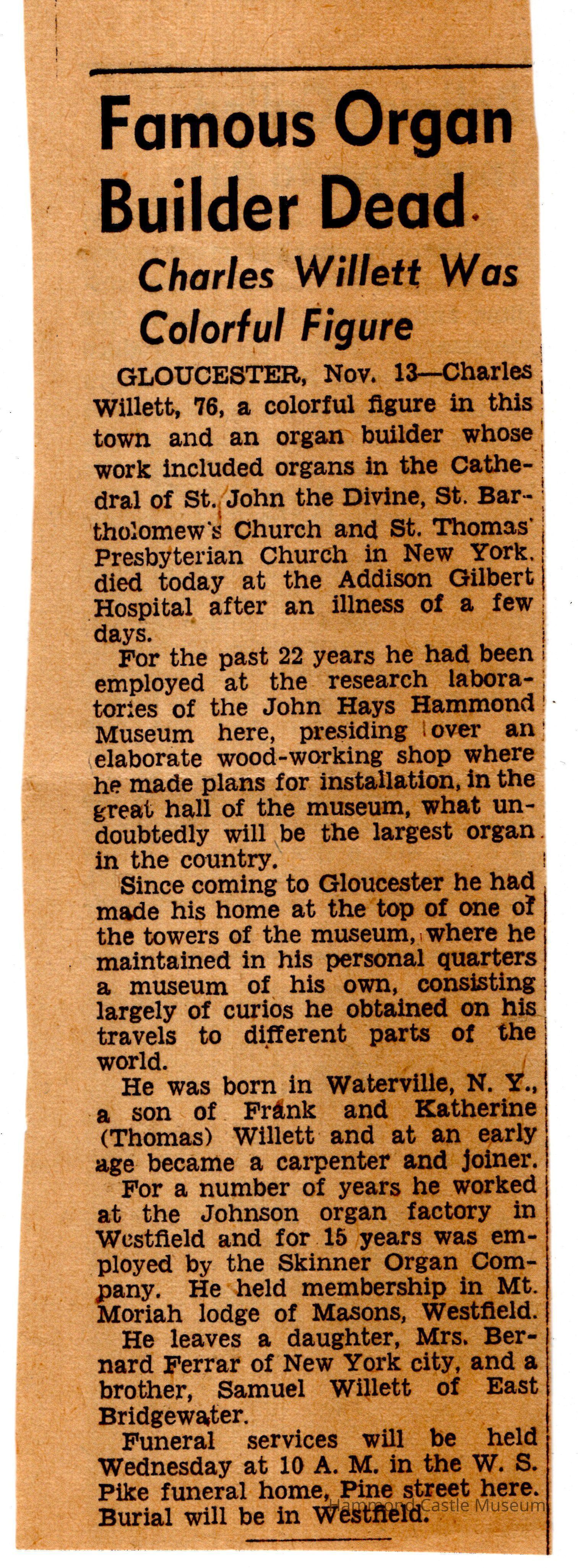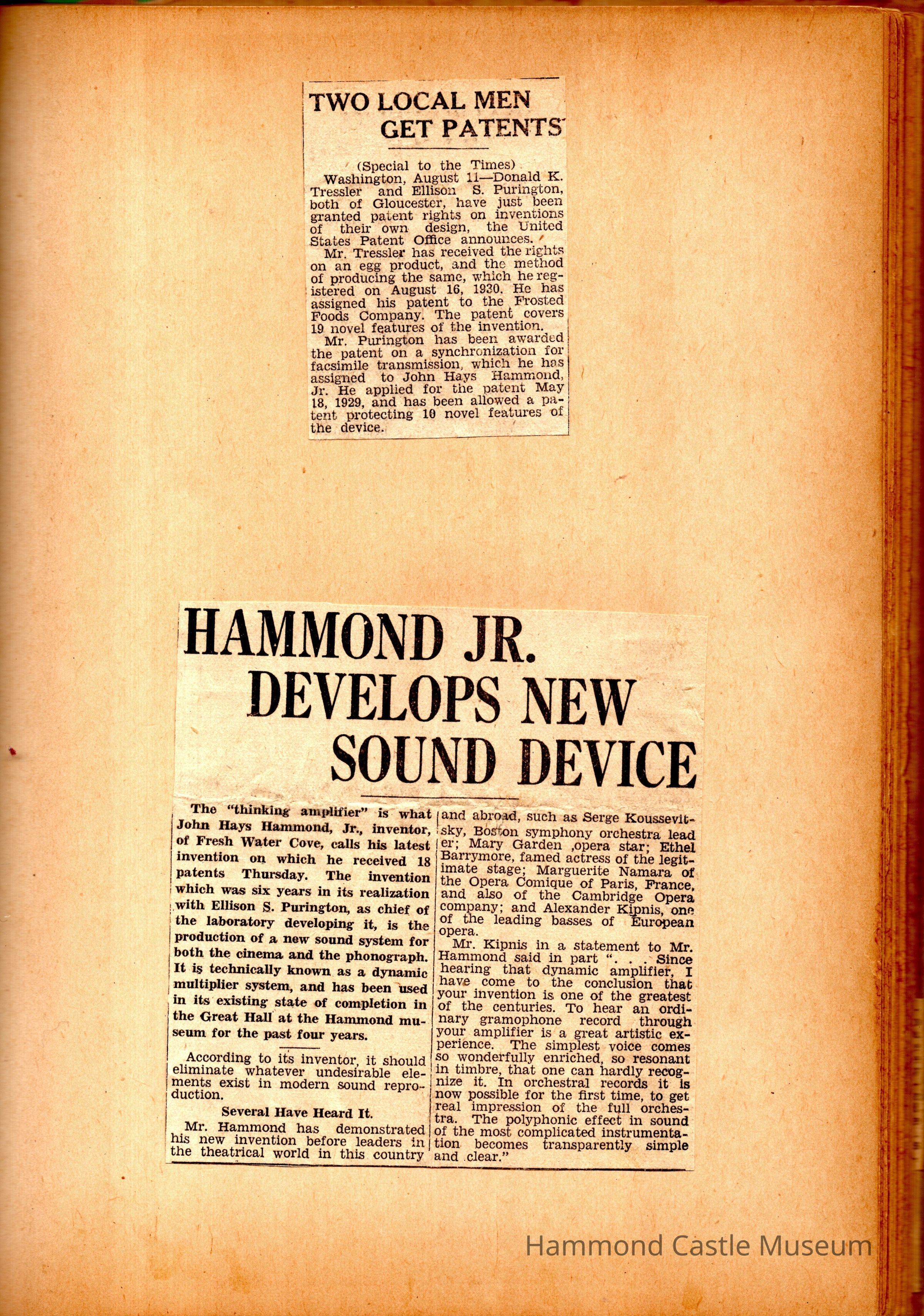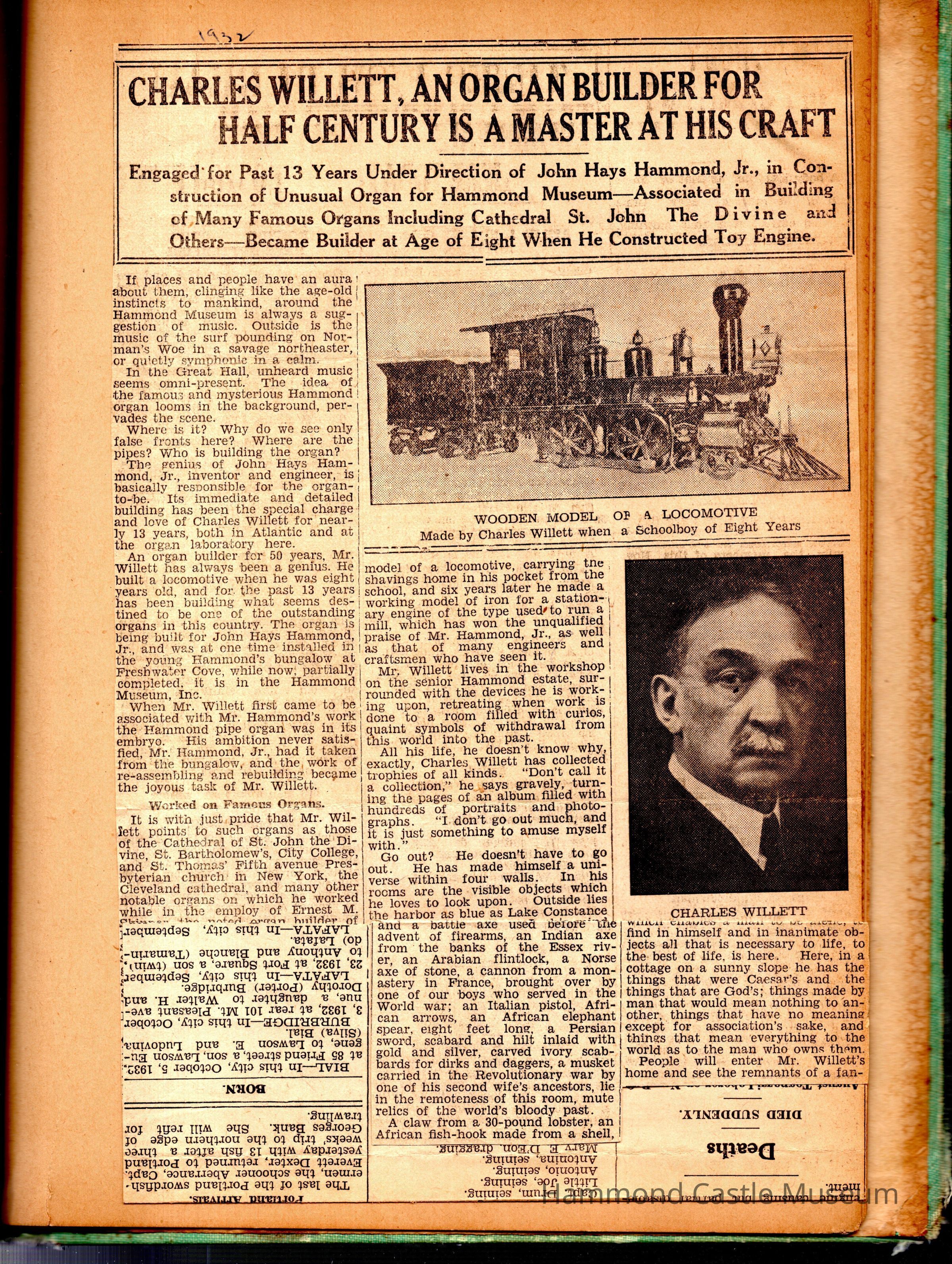 JHHJr scrapbook of the castle 191928-1950s Photos and articles about the castle, family, Willett & Hammond Washington D.C. house