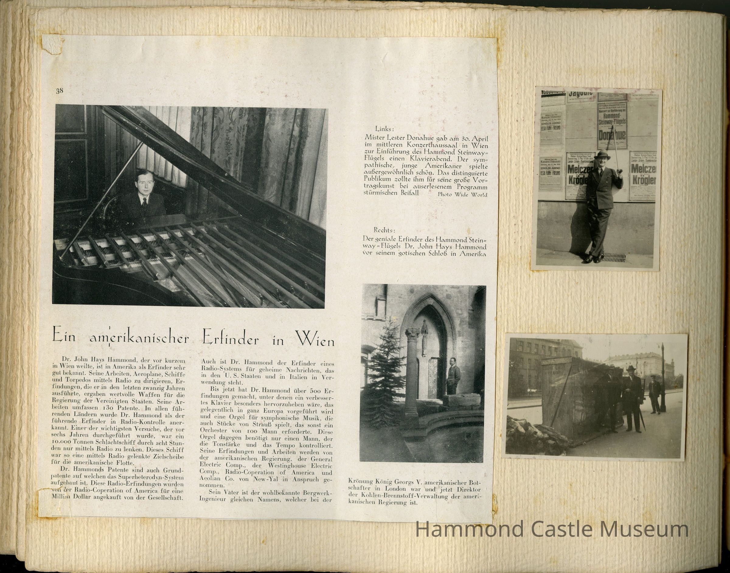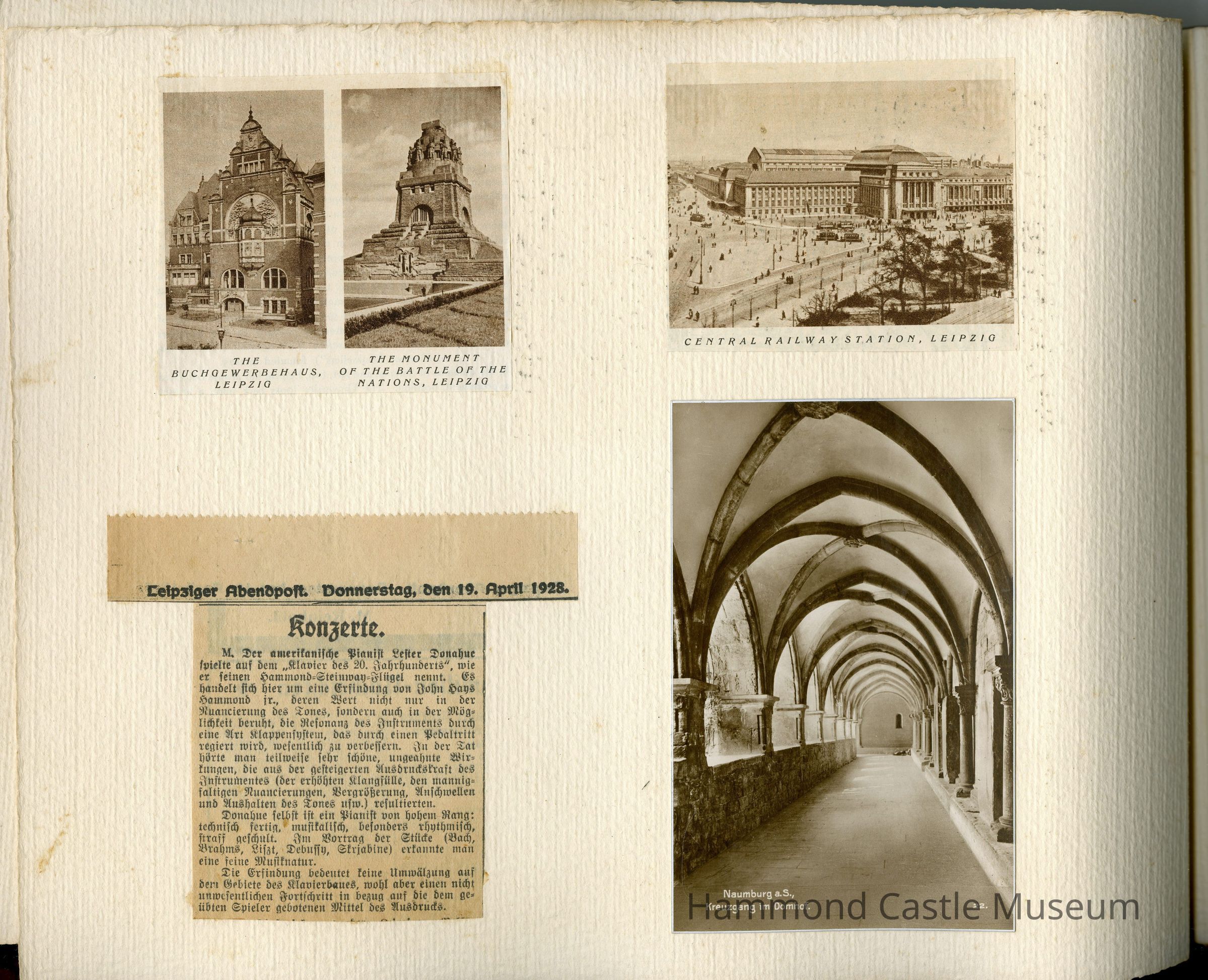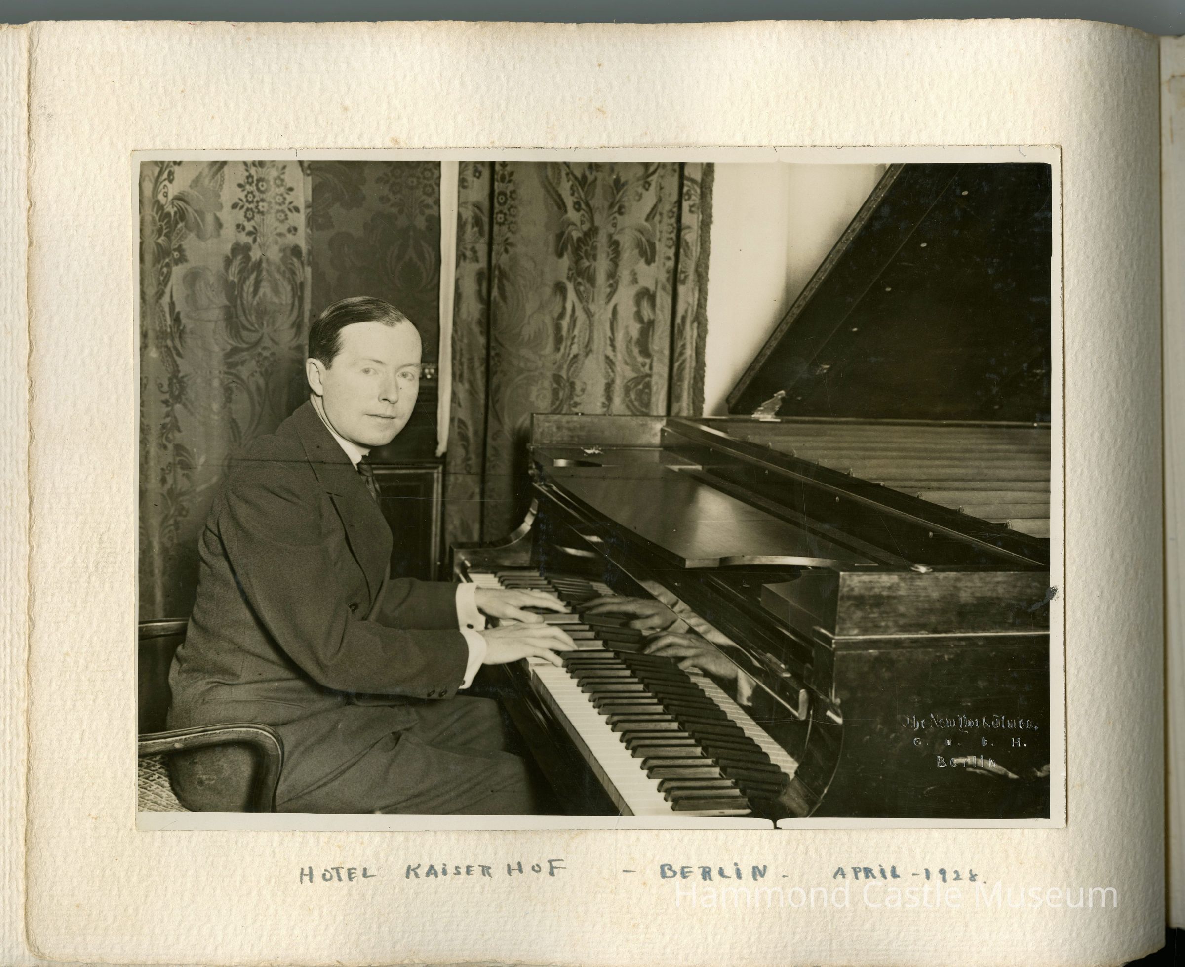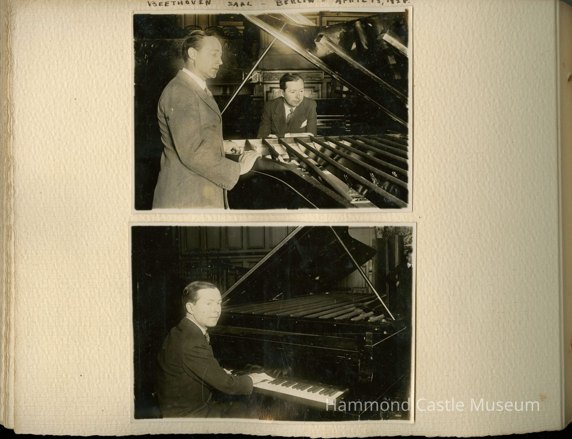 1928 JHH Jr European Trip Album Trip taken with Lester Donahue to demonstrate the Tonal Piano invention