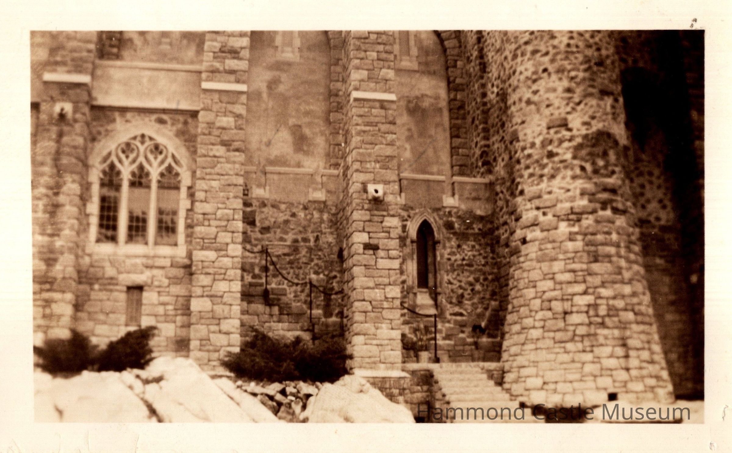 Image of Sunroom window and exterior stairs prior to 1952 stone lanterns addition Unknown photo source