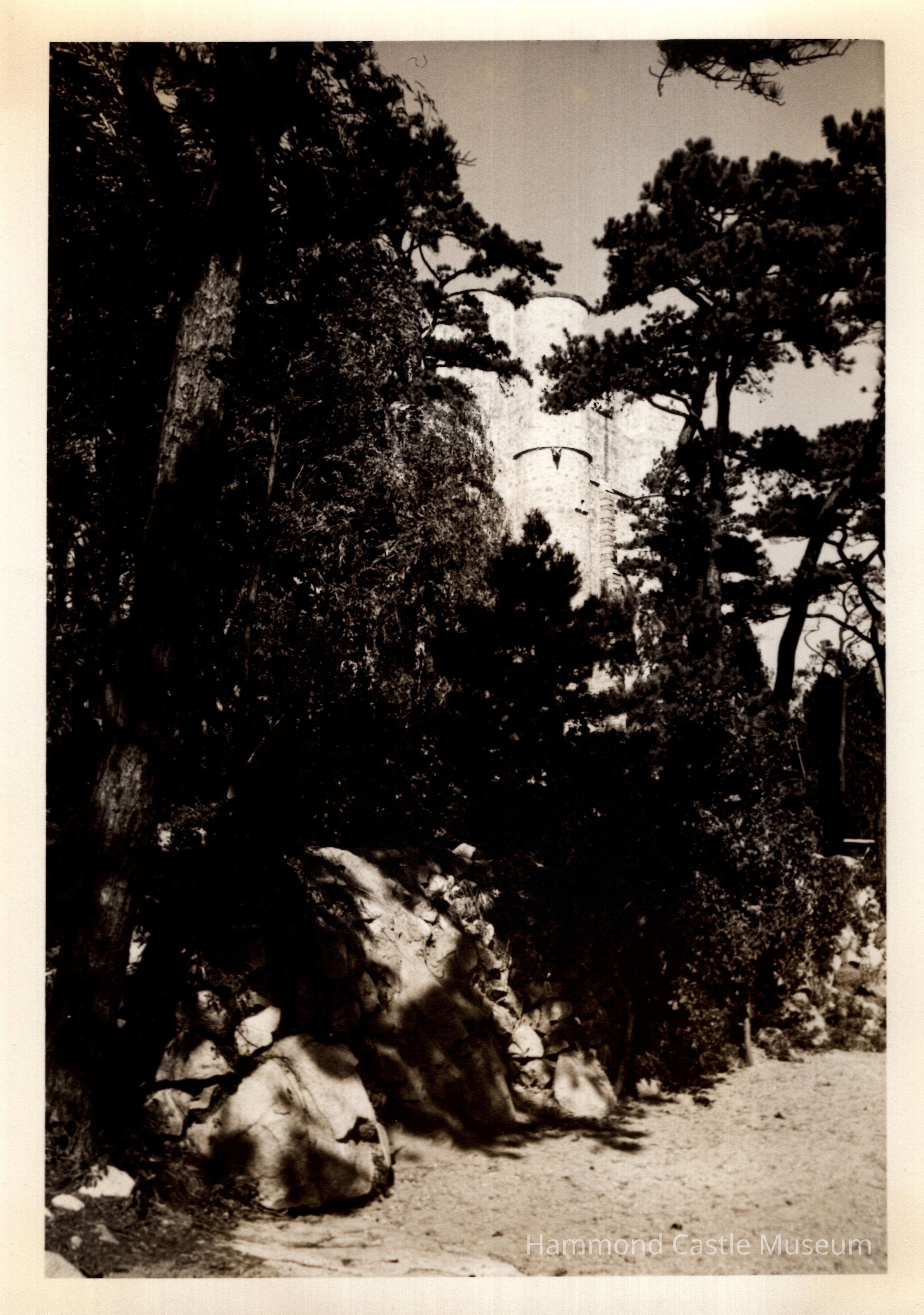 Photo of oceanside facade through the trees on the lawn Unknown photo source