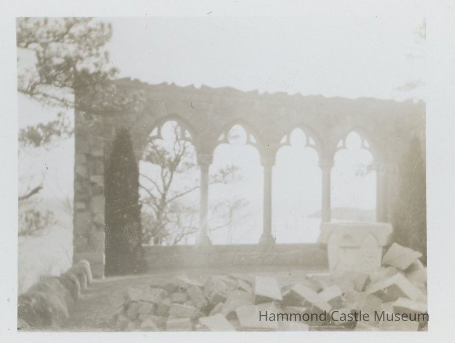Photo of cloister arches with stone rubble in foreground Unknown photo source