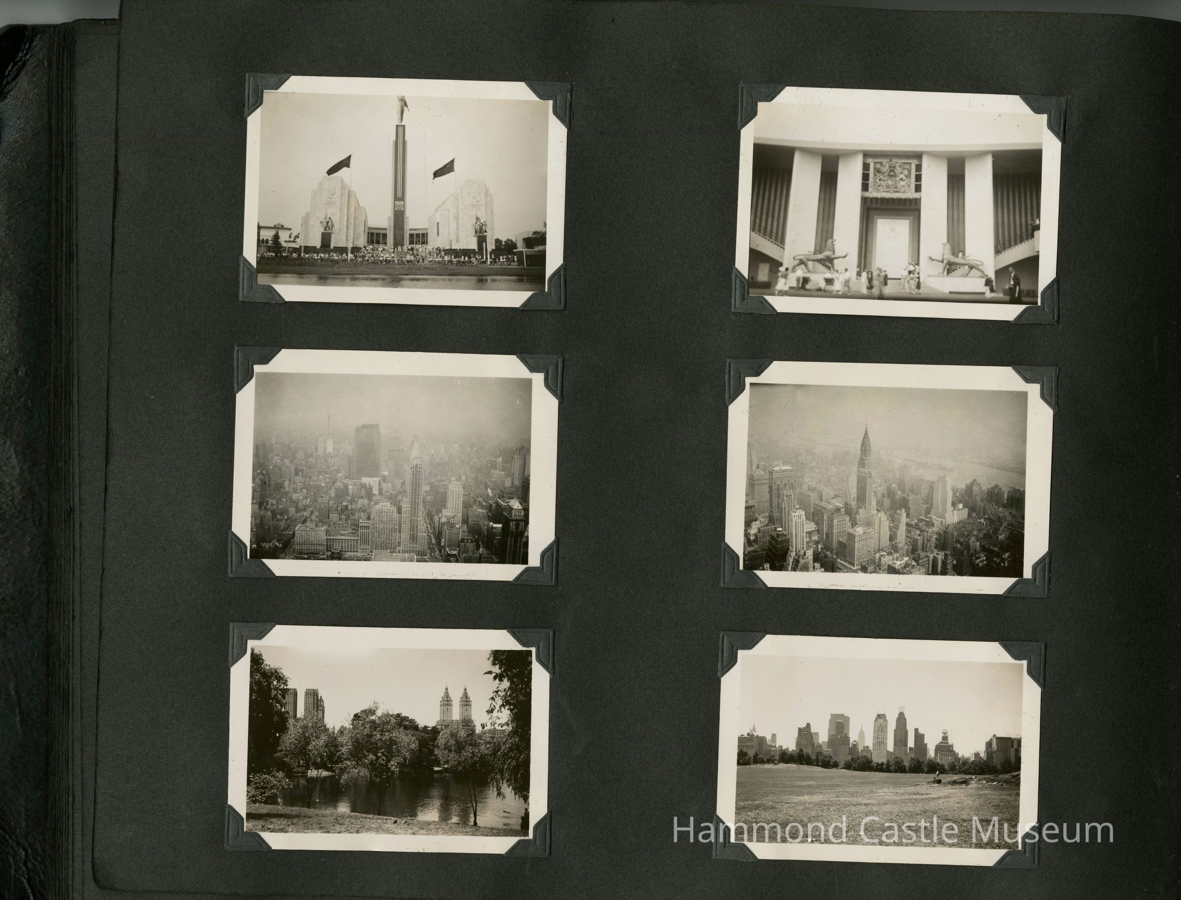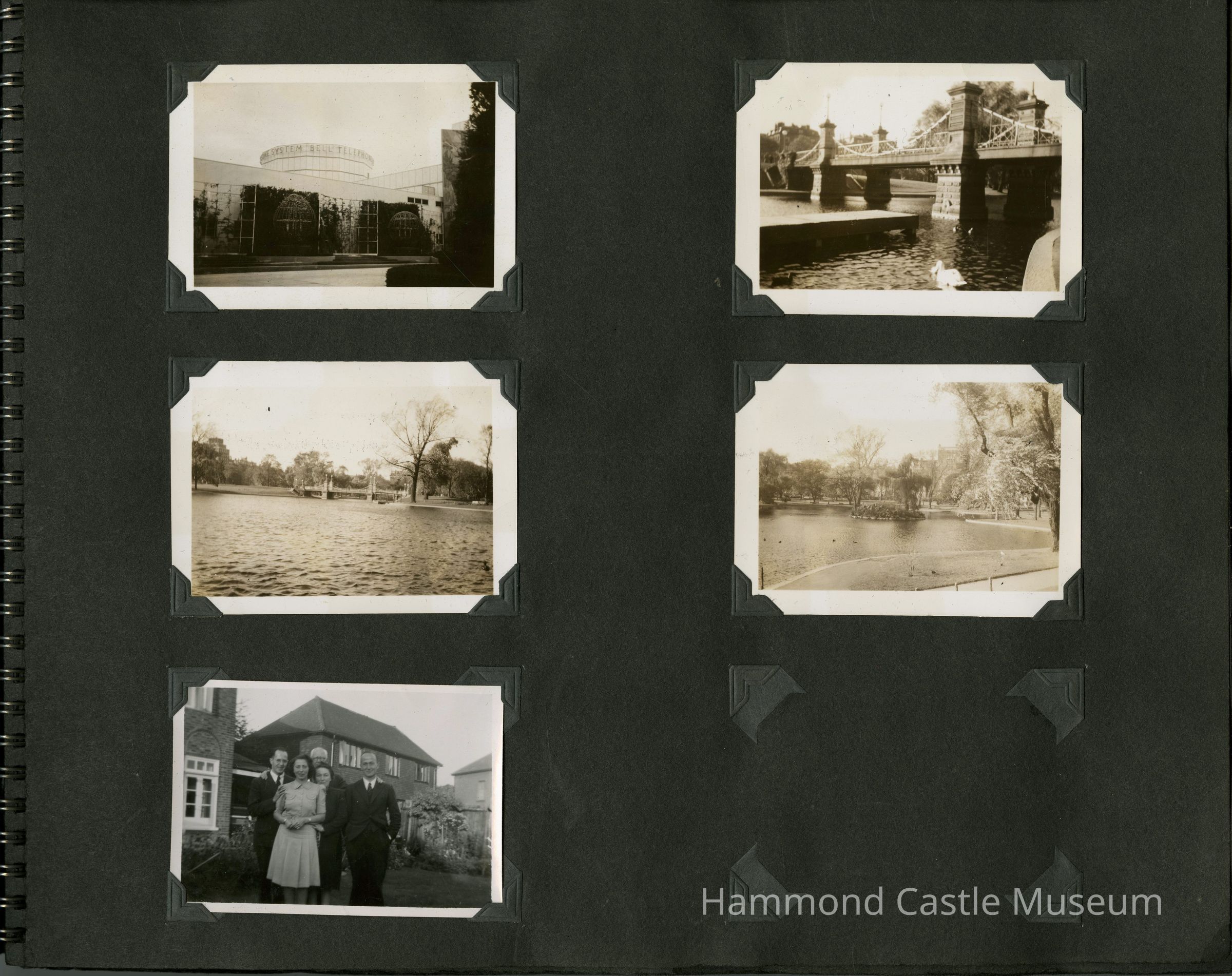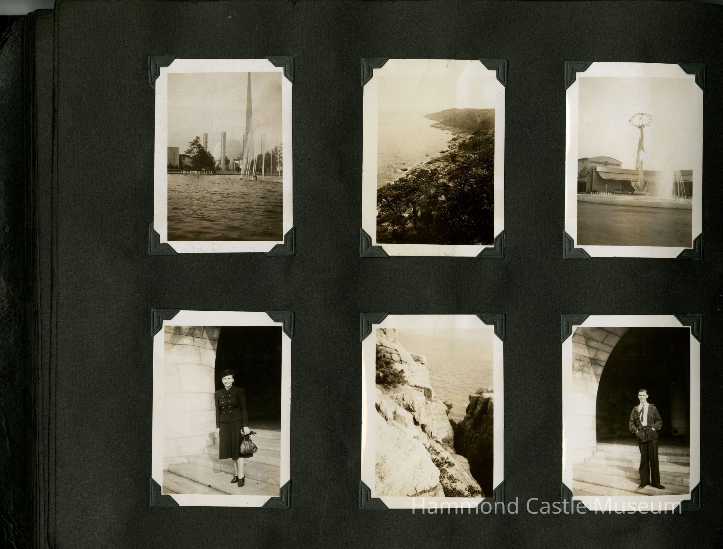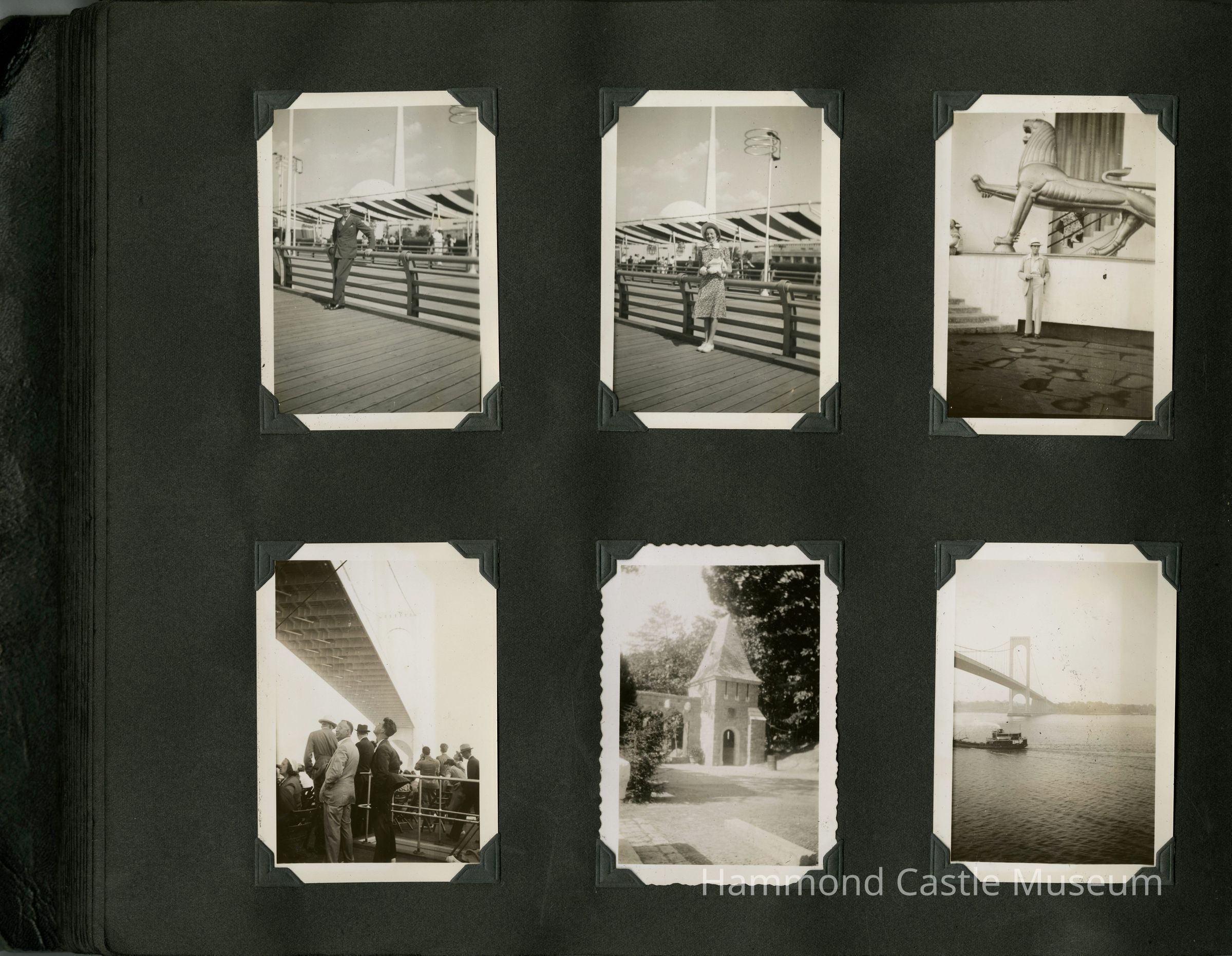 Photo album belonging to butler, Leslie Hillman, Contains images of England, Boston, 1939 World's Fair, NYC, castle and staff.