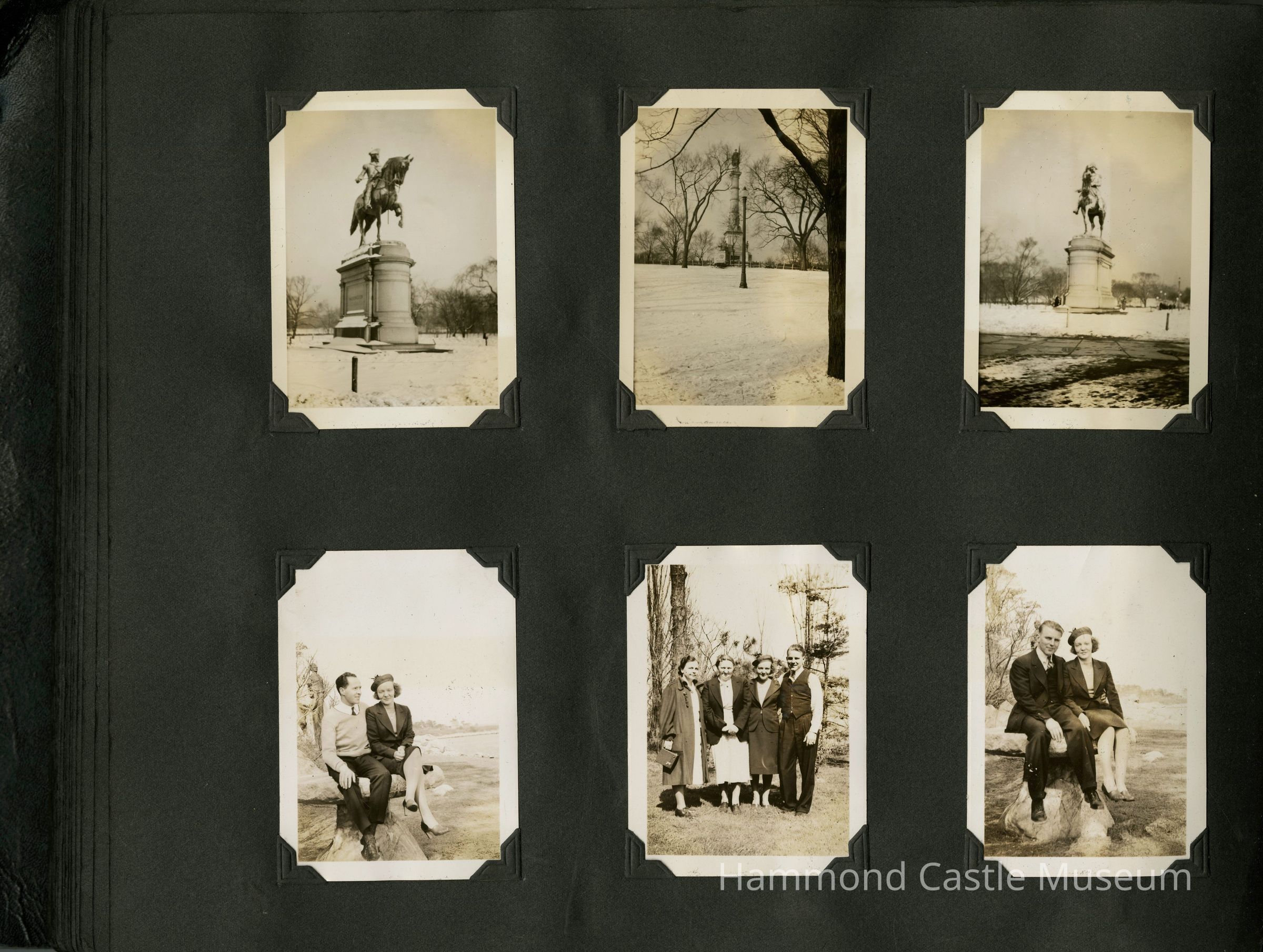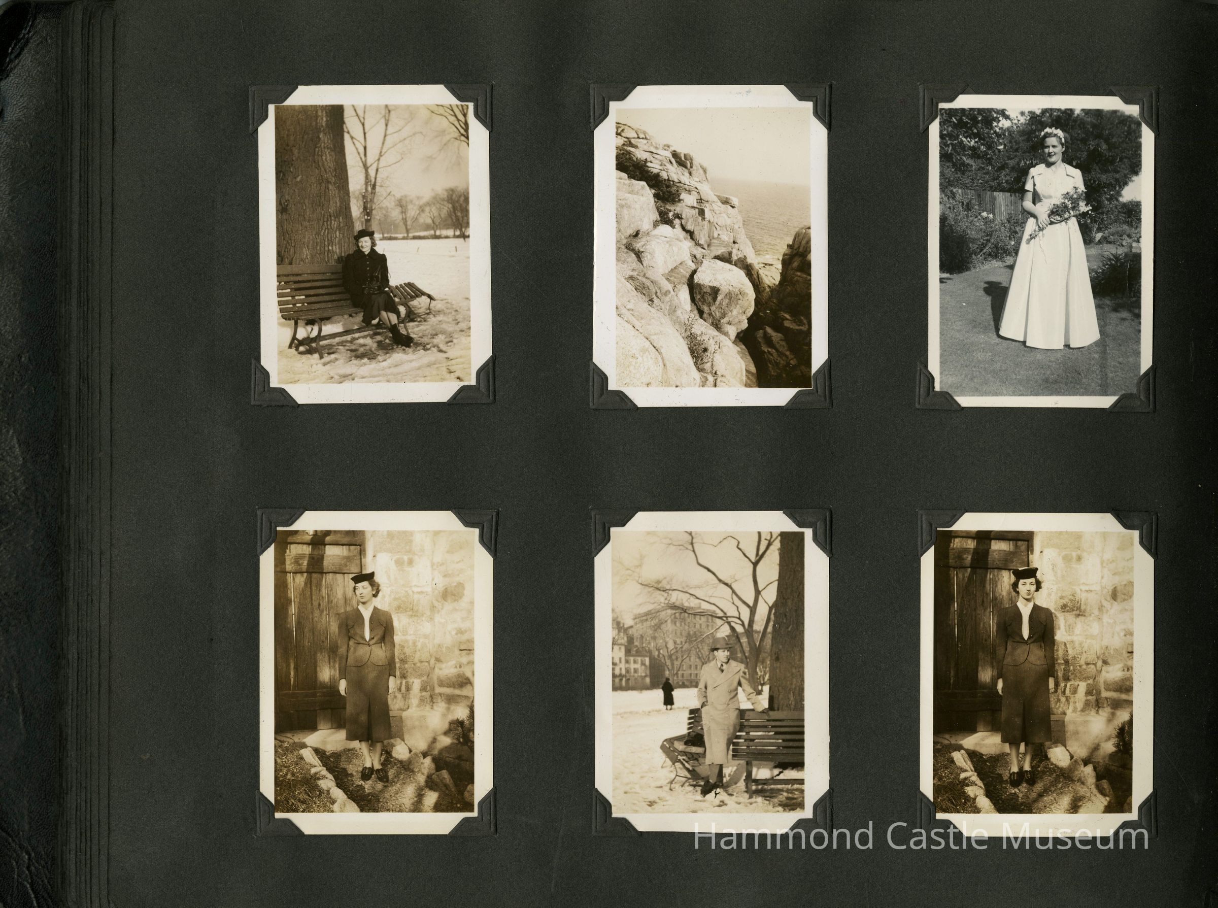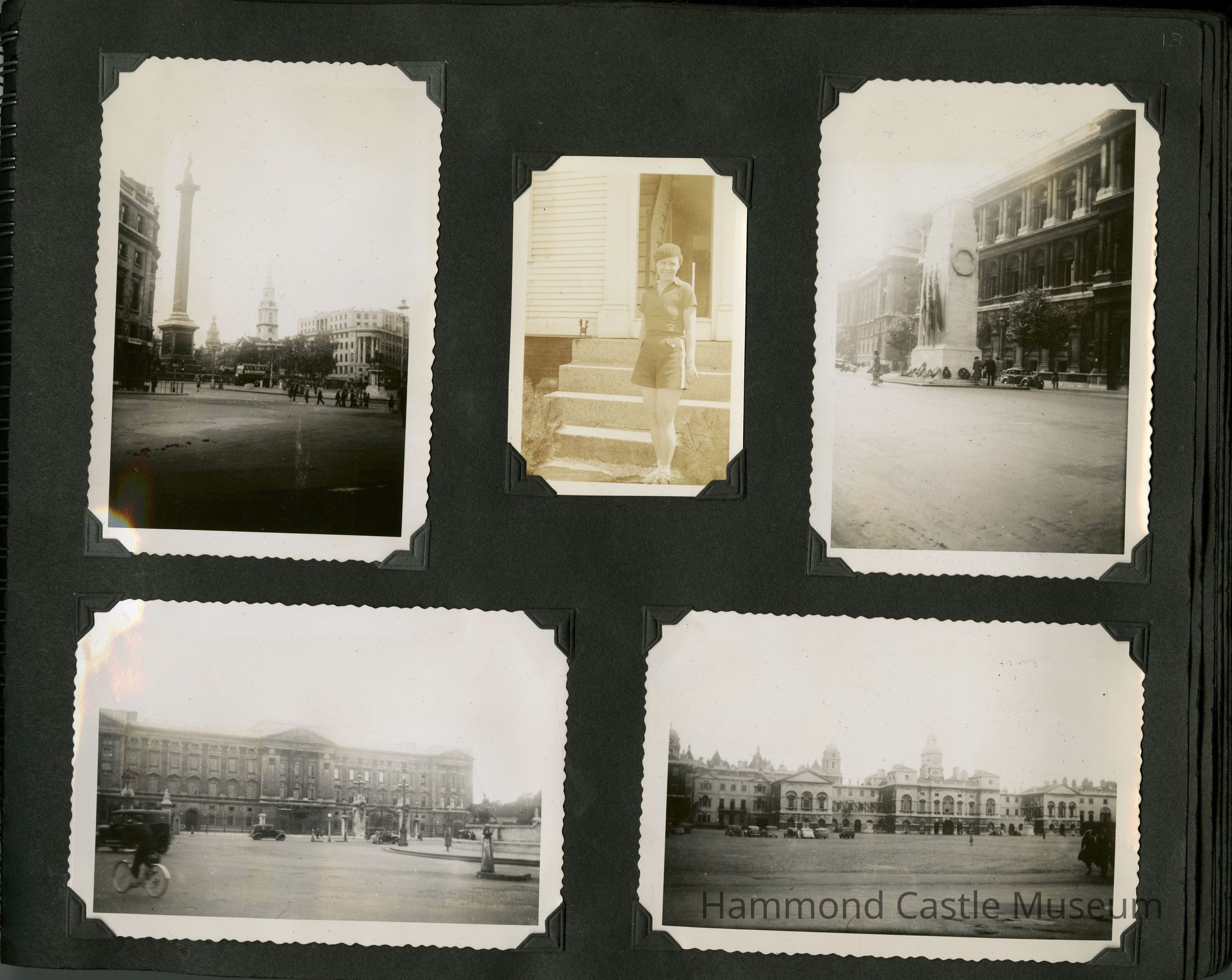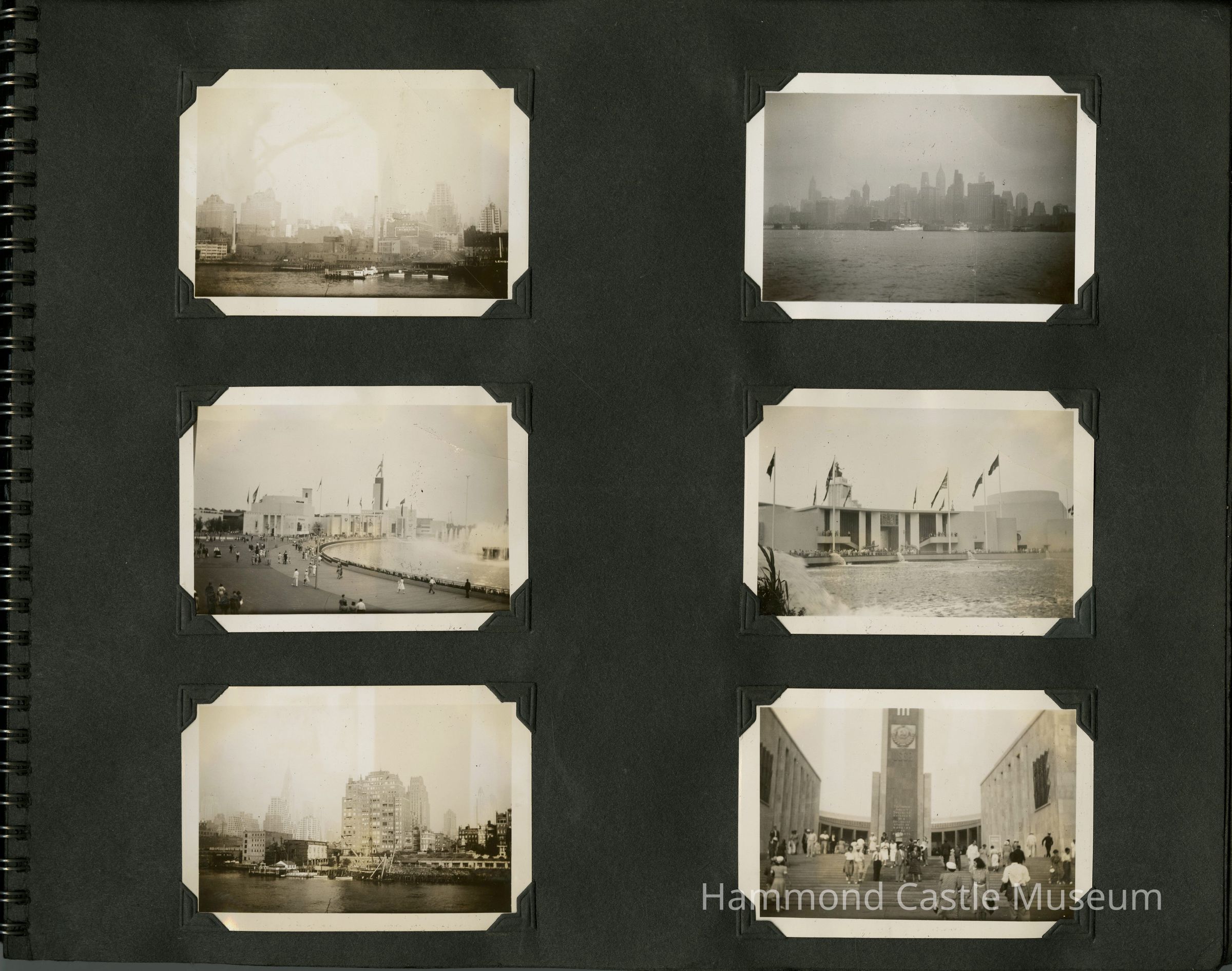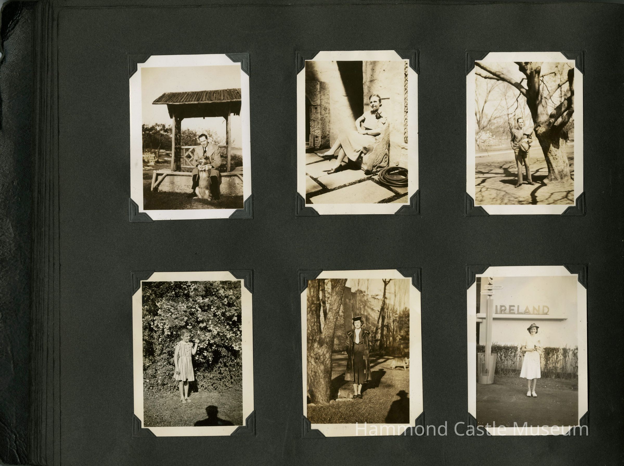 Photo album belonging to butler, Leslie Hillman, Contains images of England, Boston, 1939 World's Fair, NYC, castle and staff.