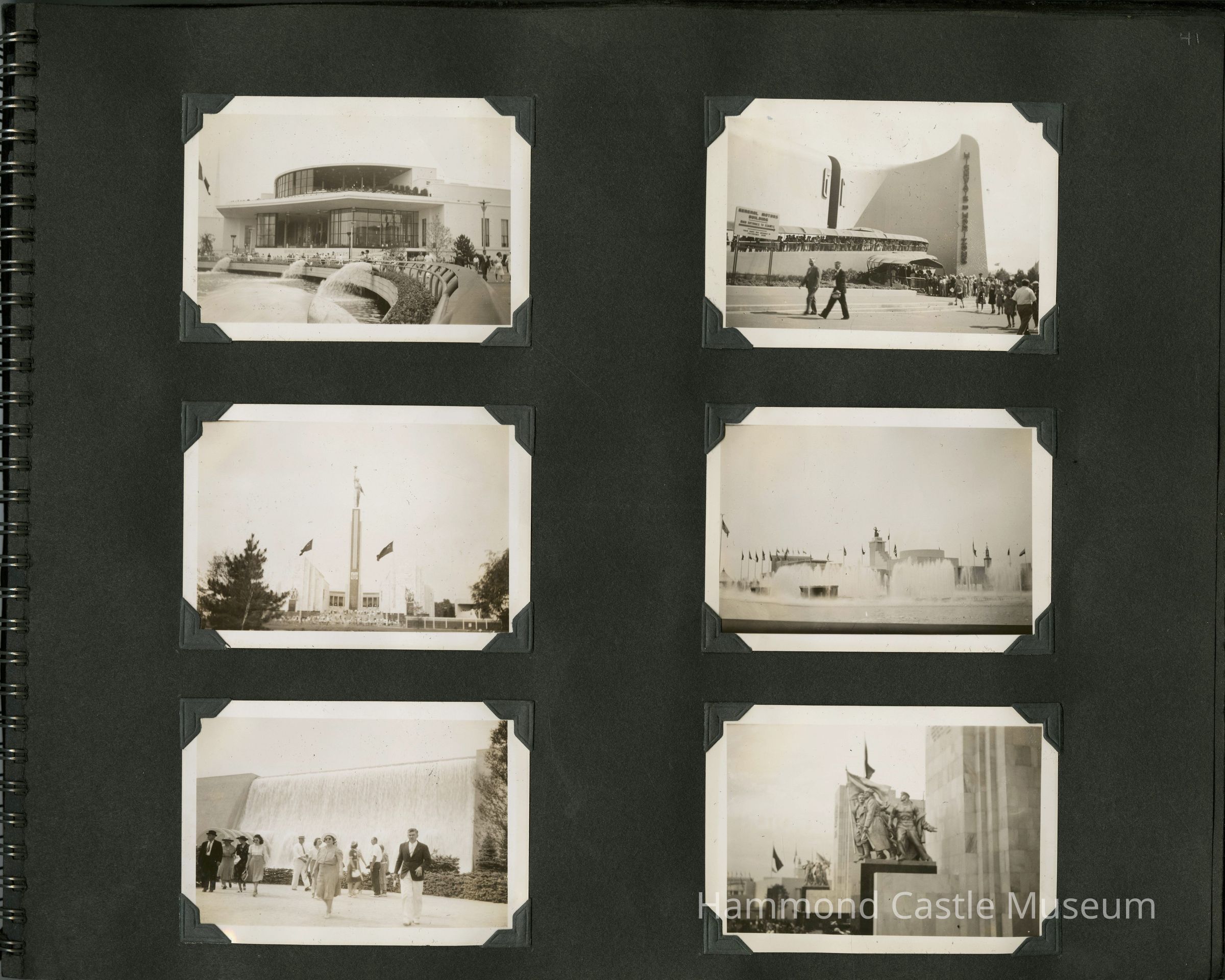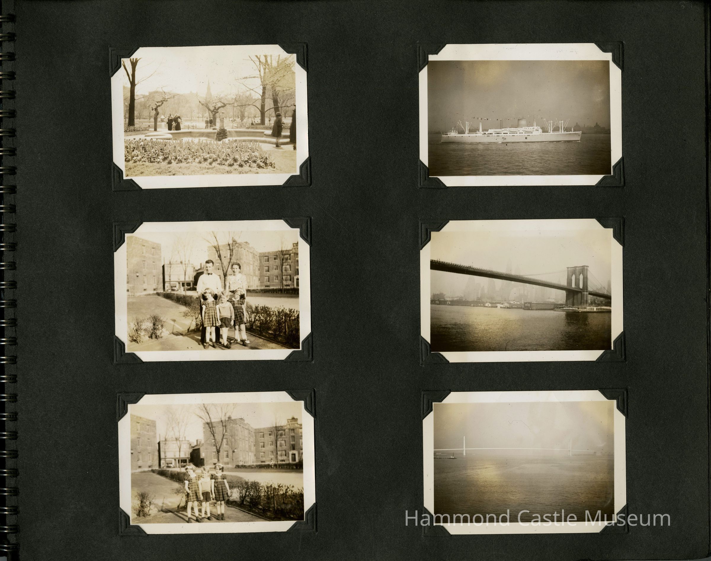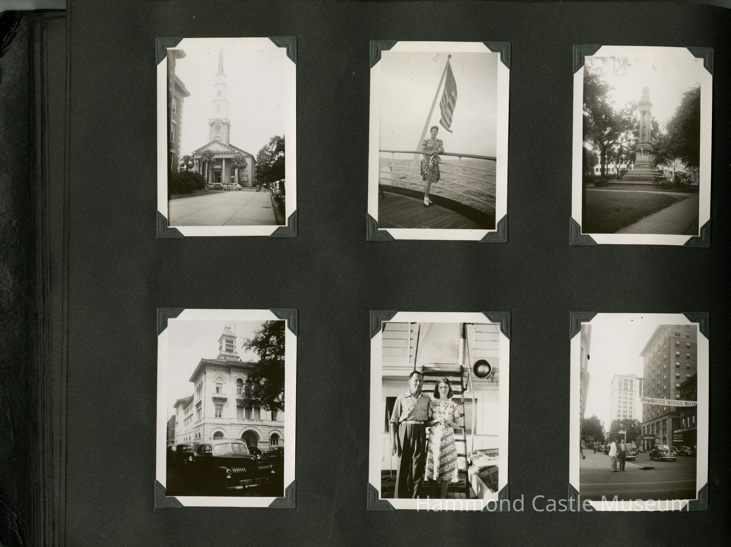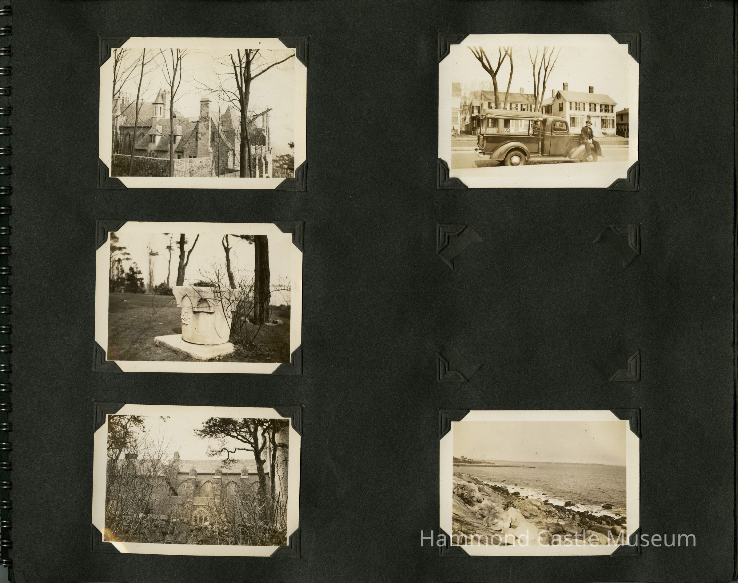 Photo album belonging to butler, Leslie Hillman, Contains images of England, Boston, 1939 World's Fair, NYC, castle and staff.