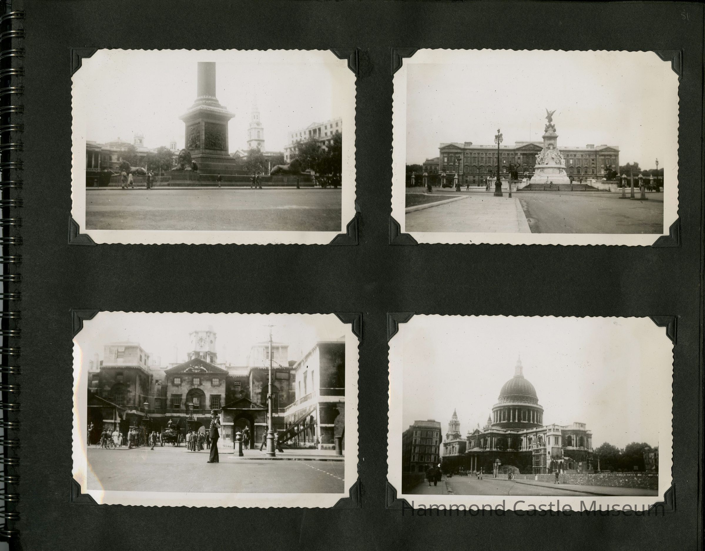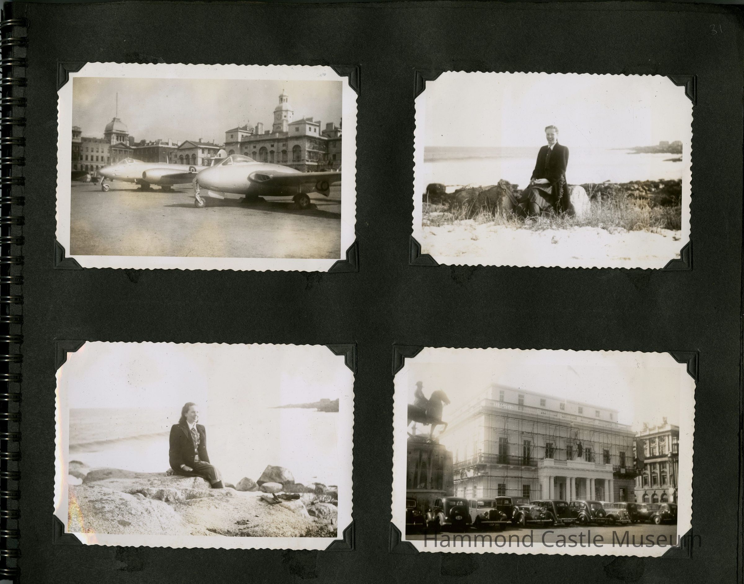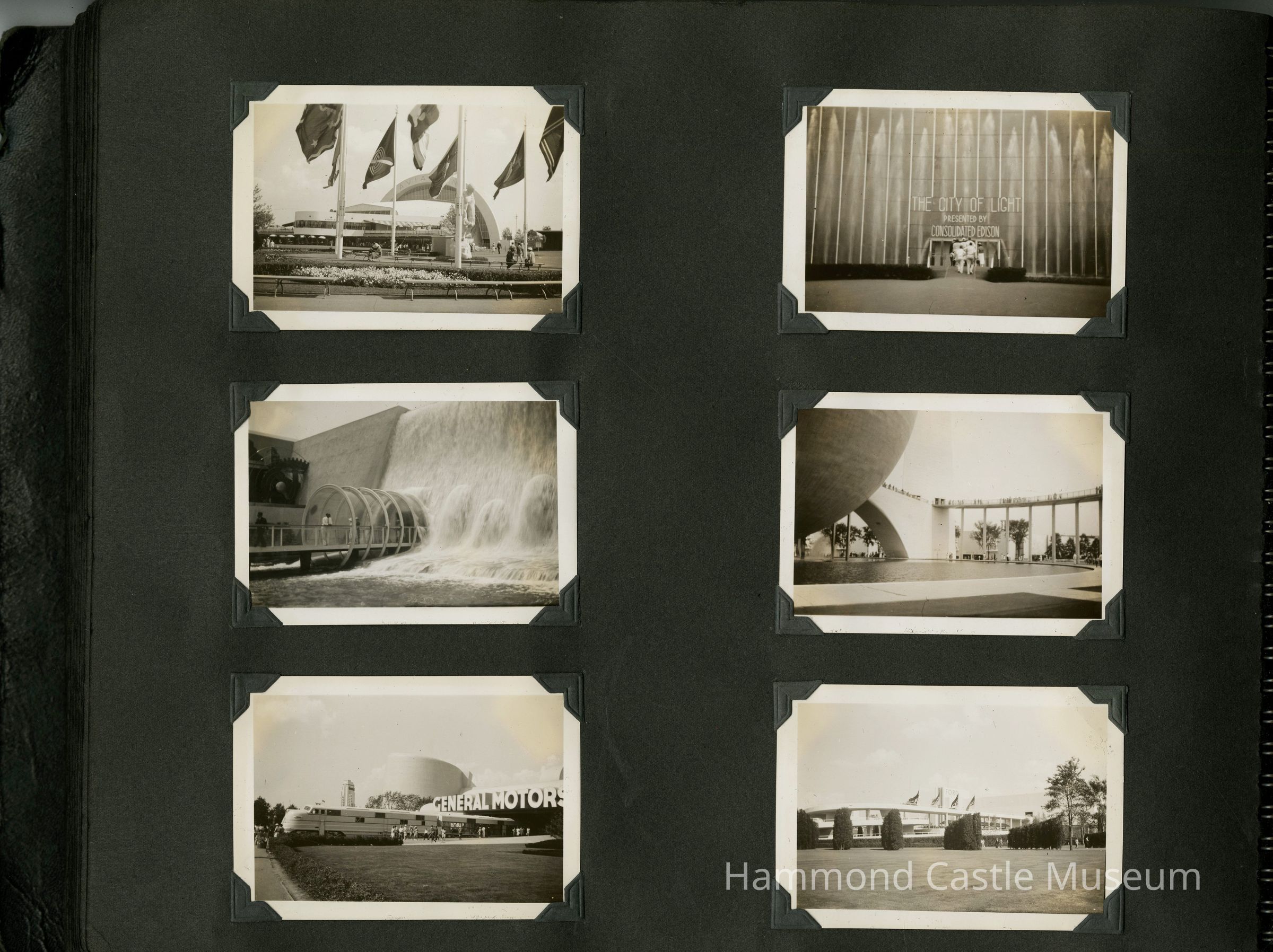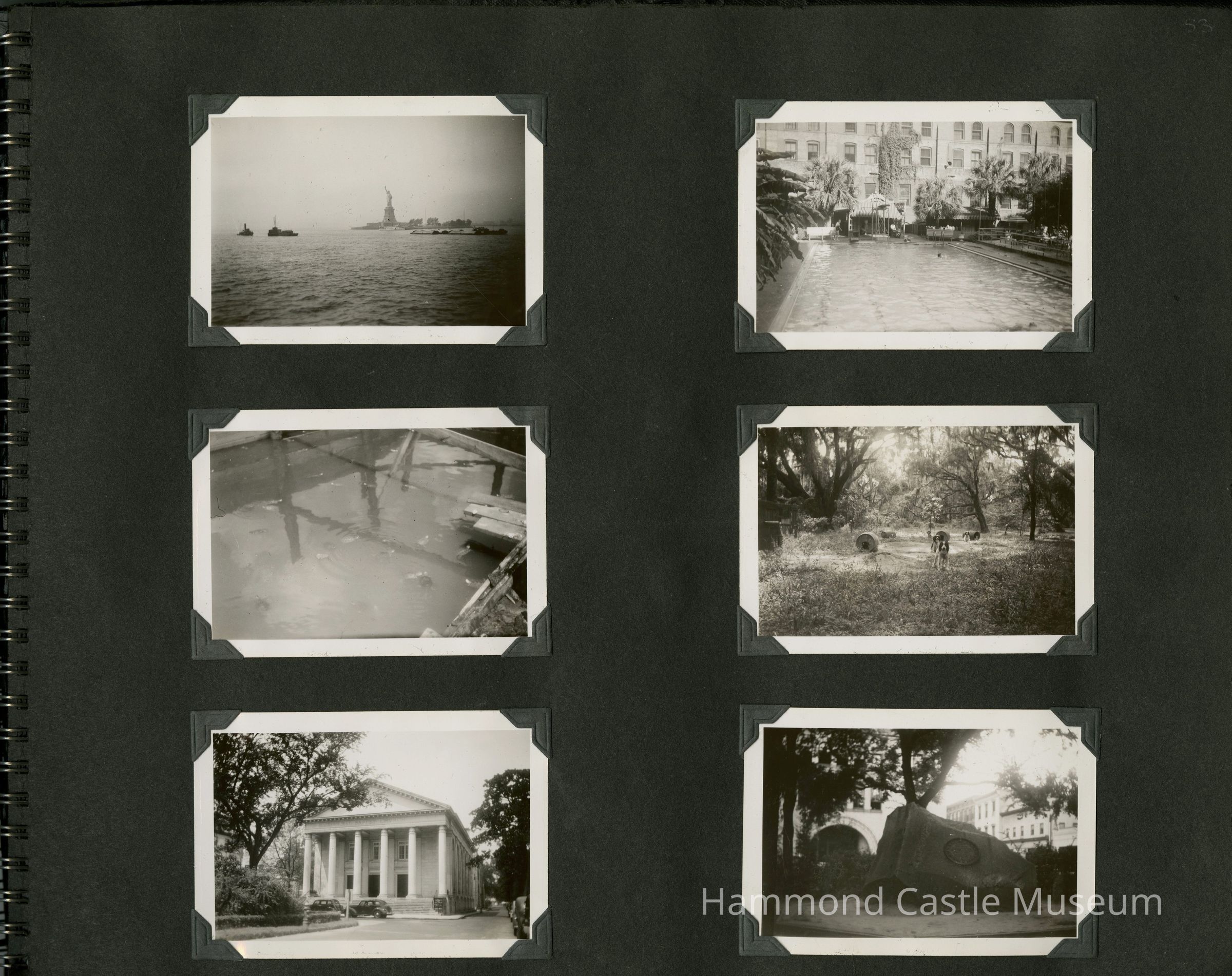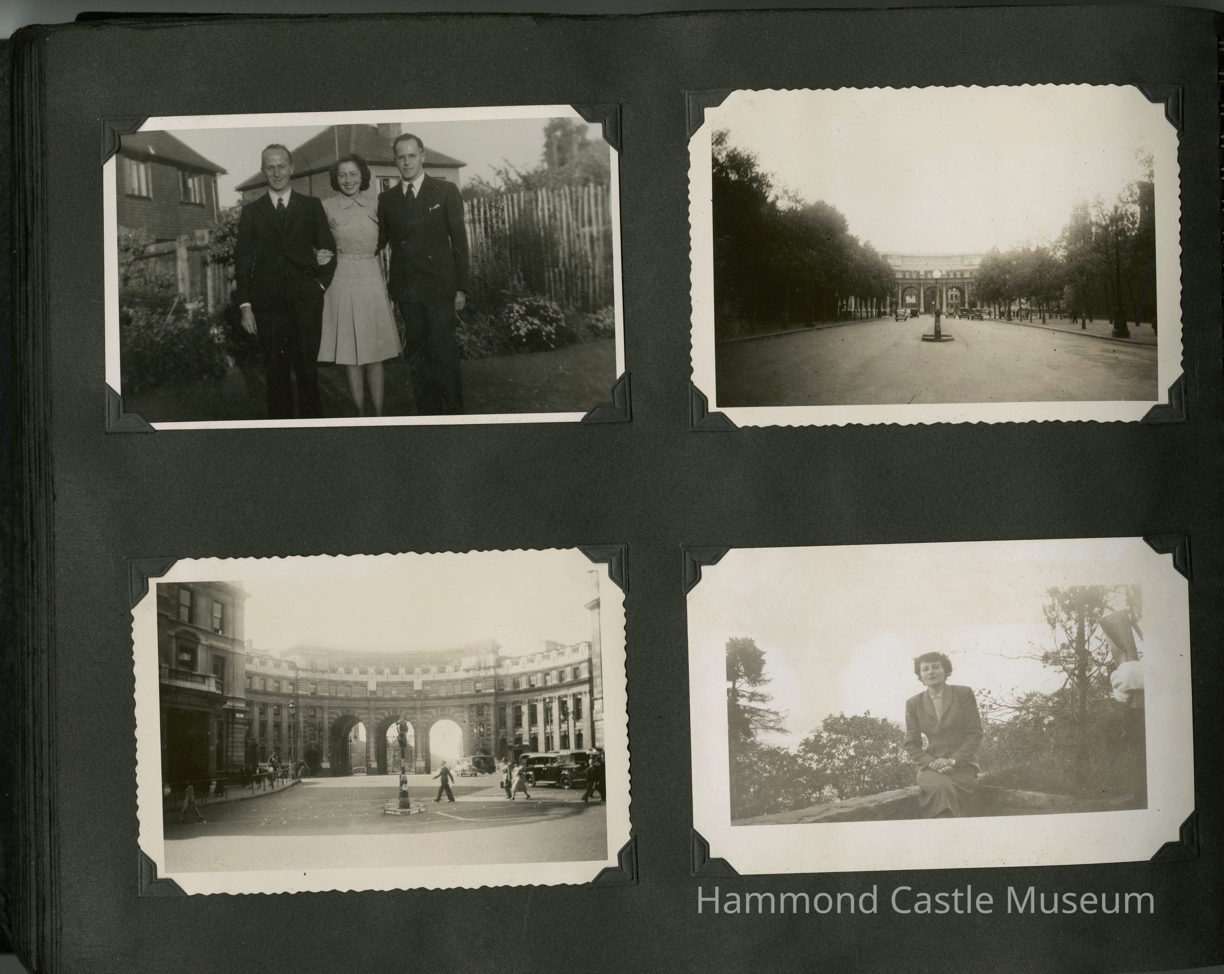Photo album belonging to butler, Leslie Hillman, Contains images of England, Boston, 1939 World's Fair, NYC, castle and staff.