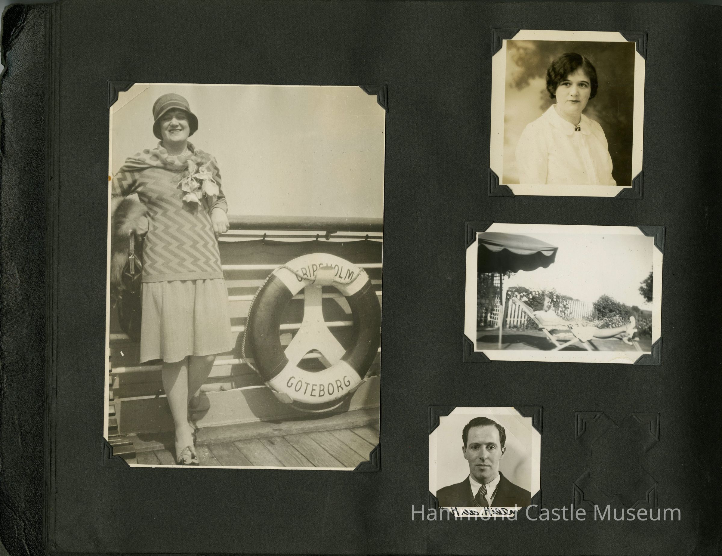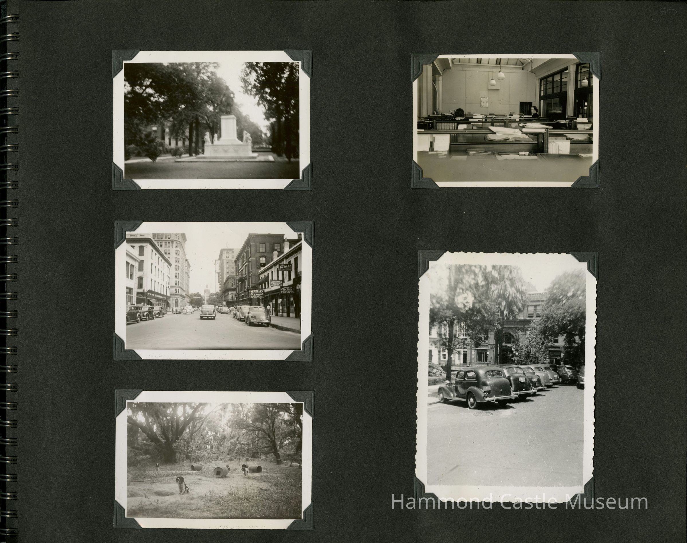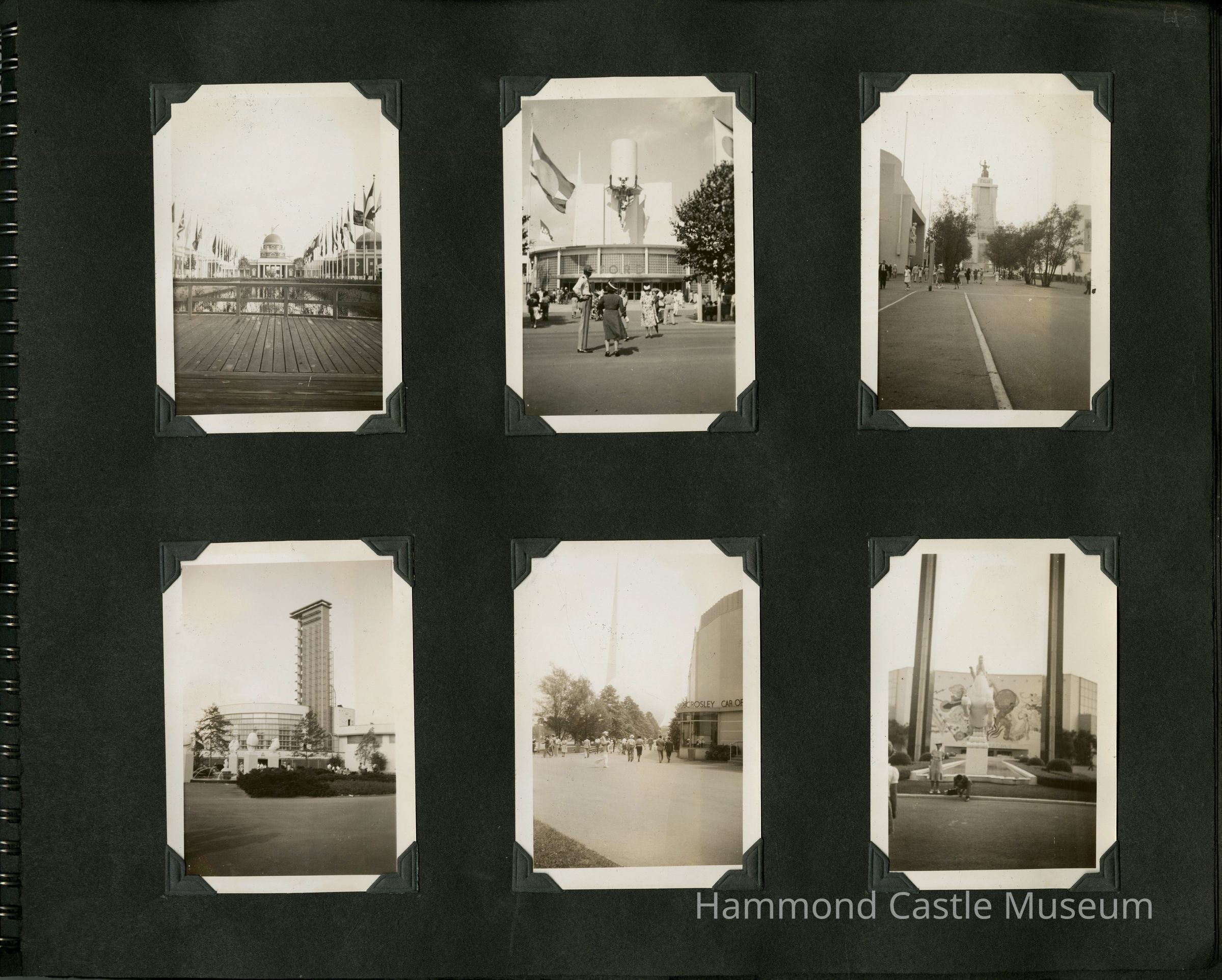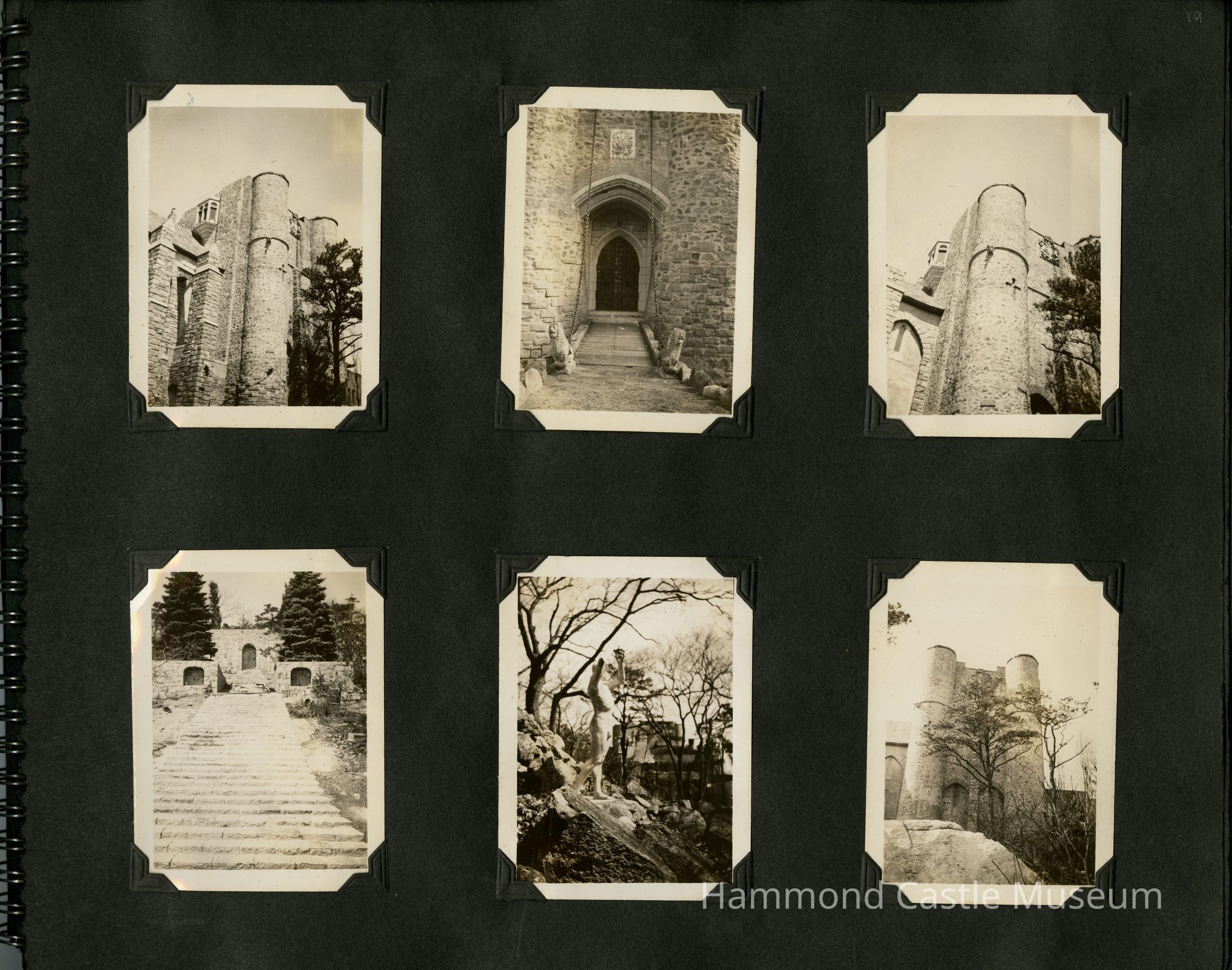 Photo album belonging to butler, Leslie Hillman, Contains images of England, Boston, 1939 World's Fair, NYC, castle and staff.