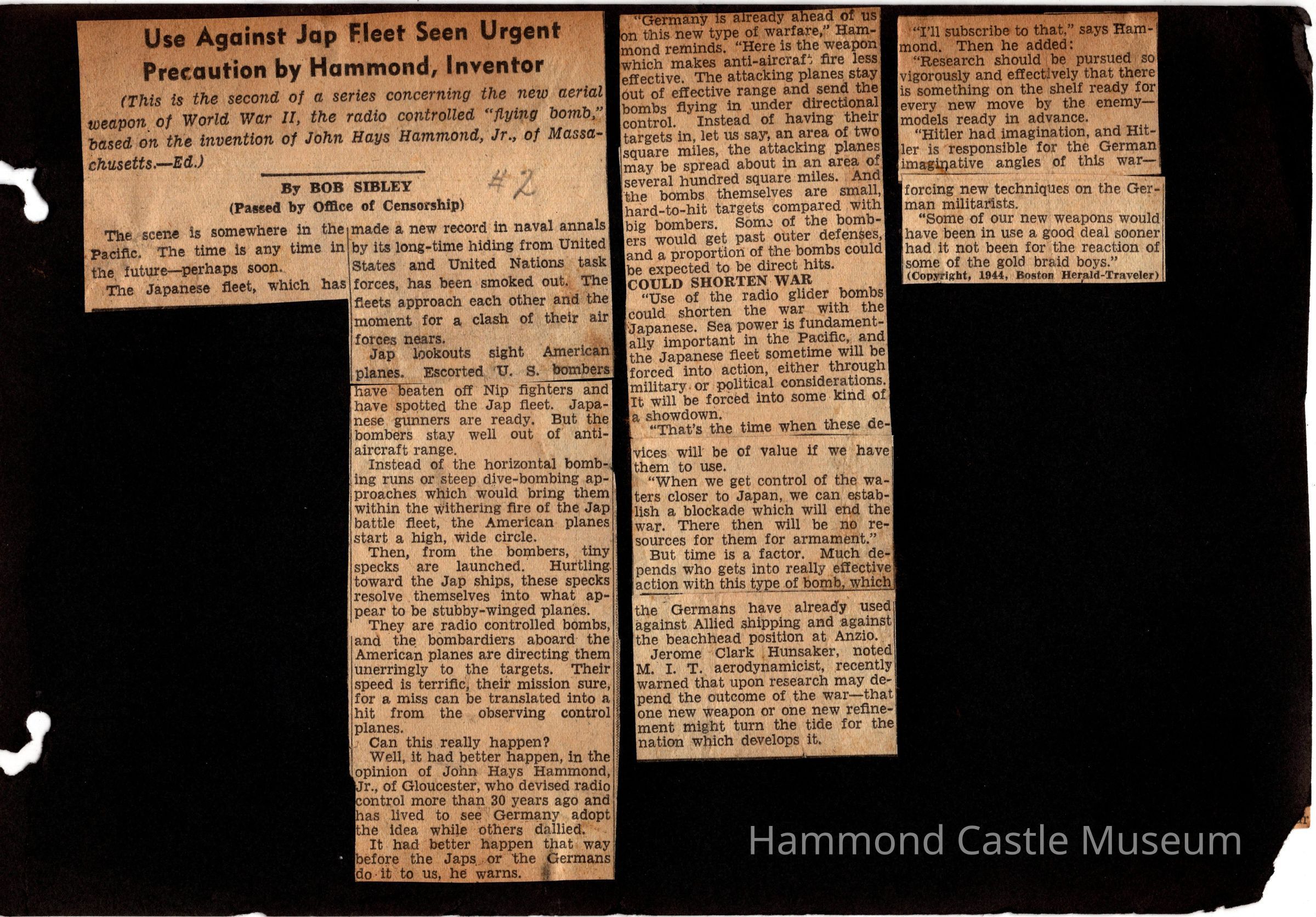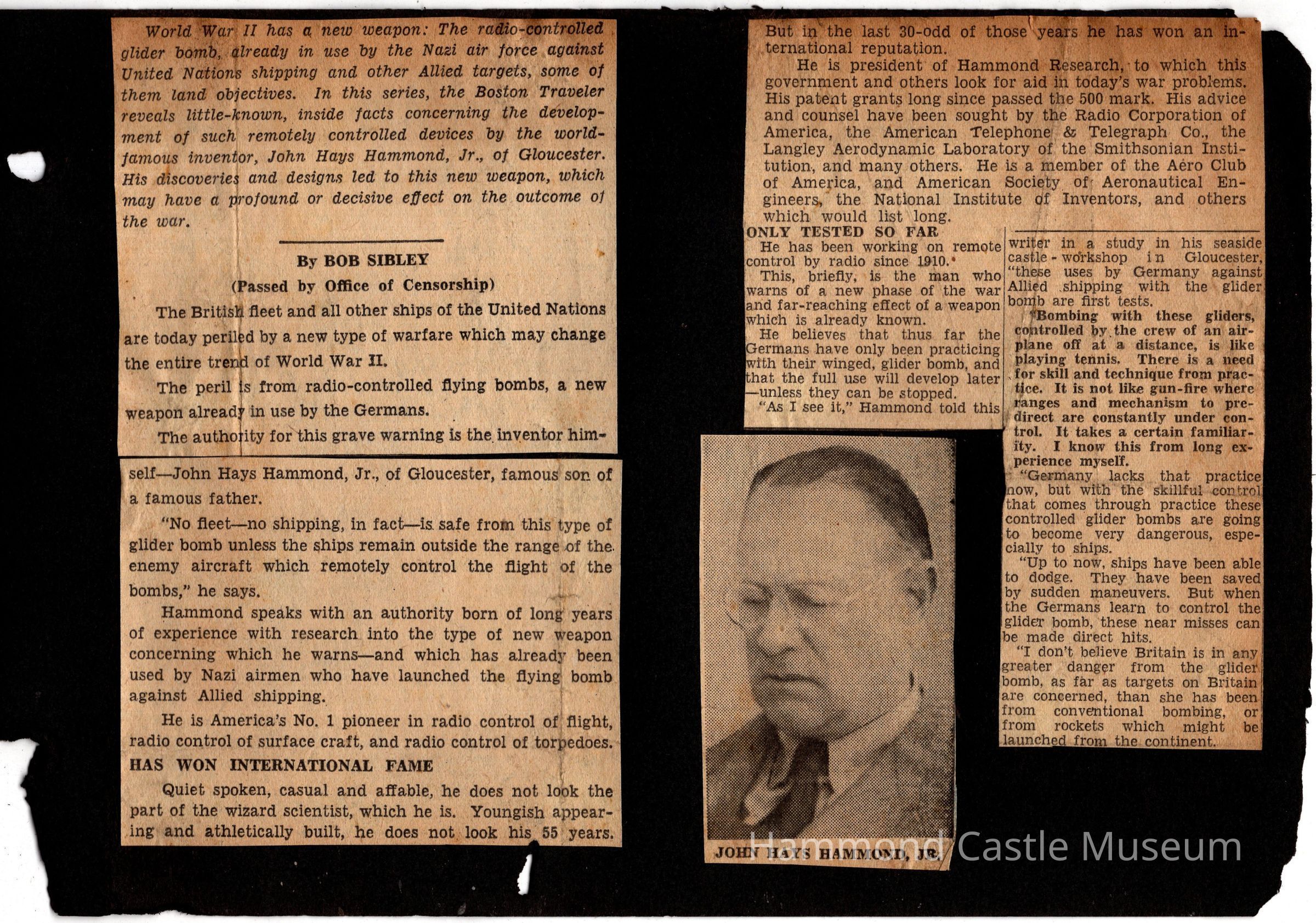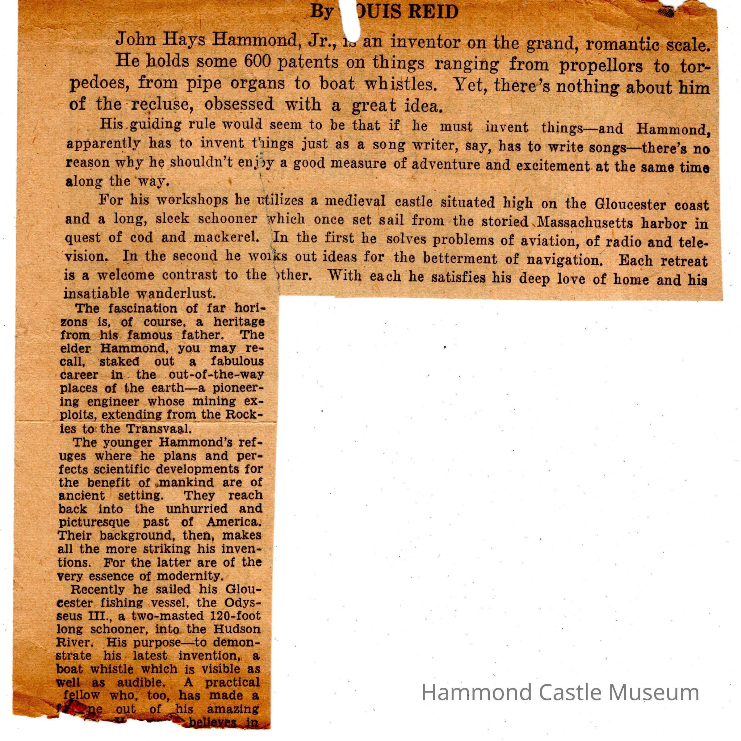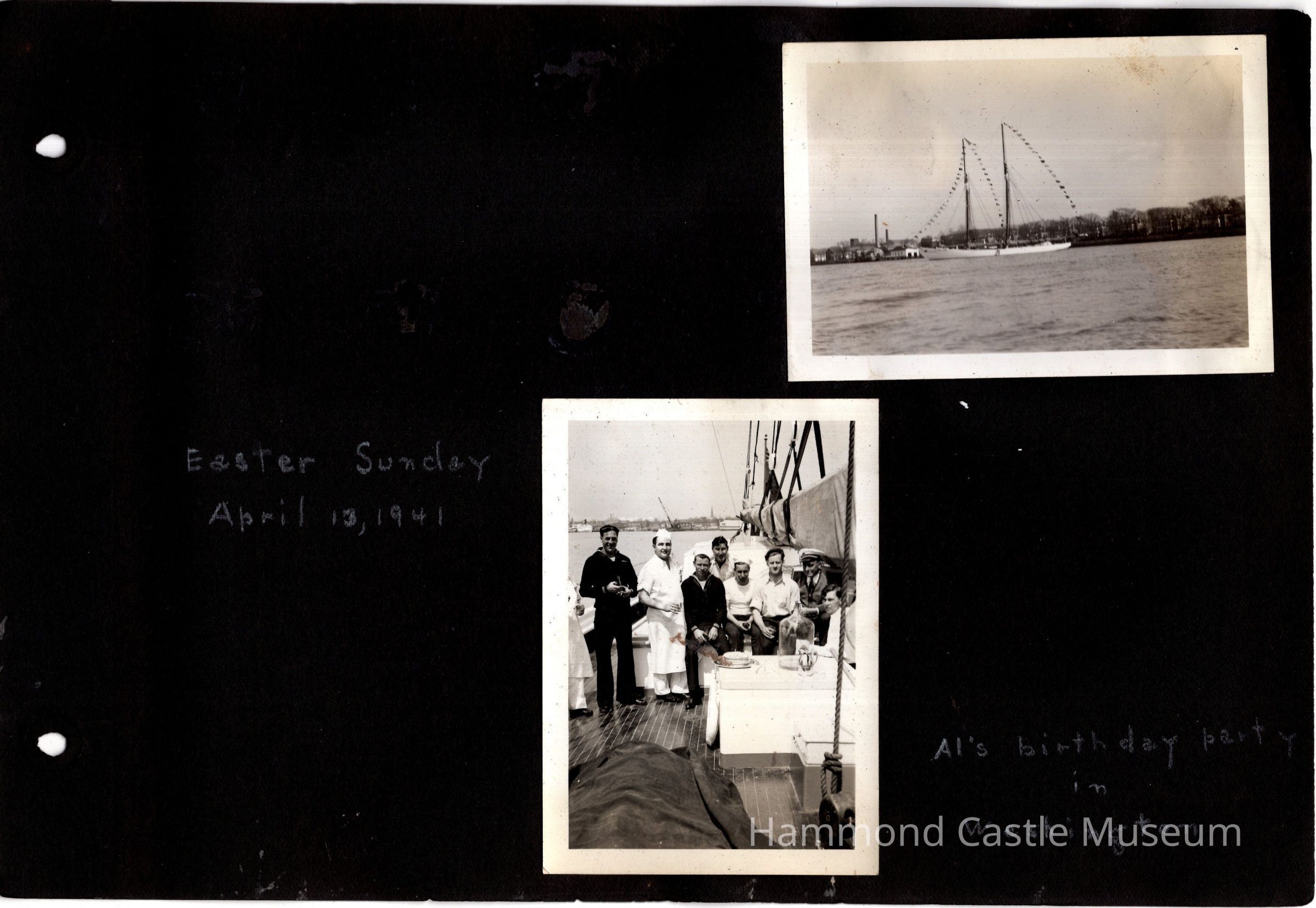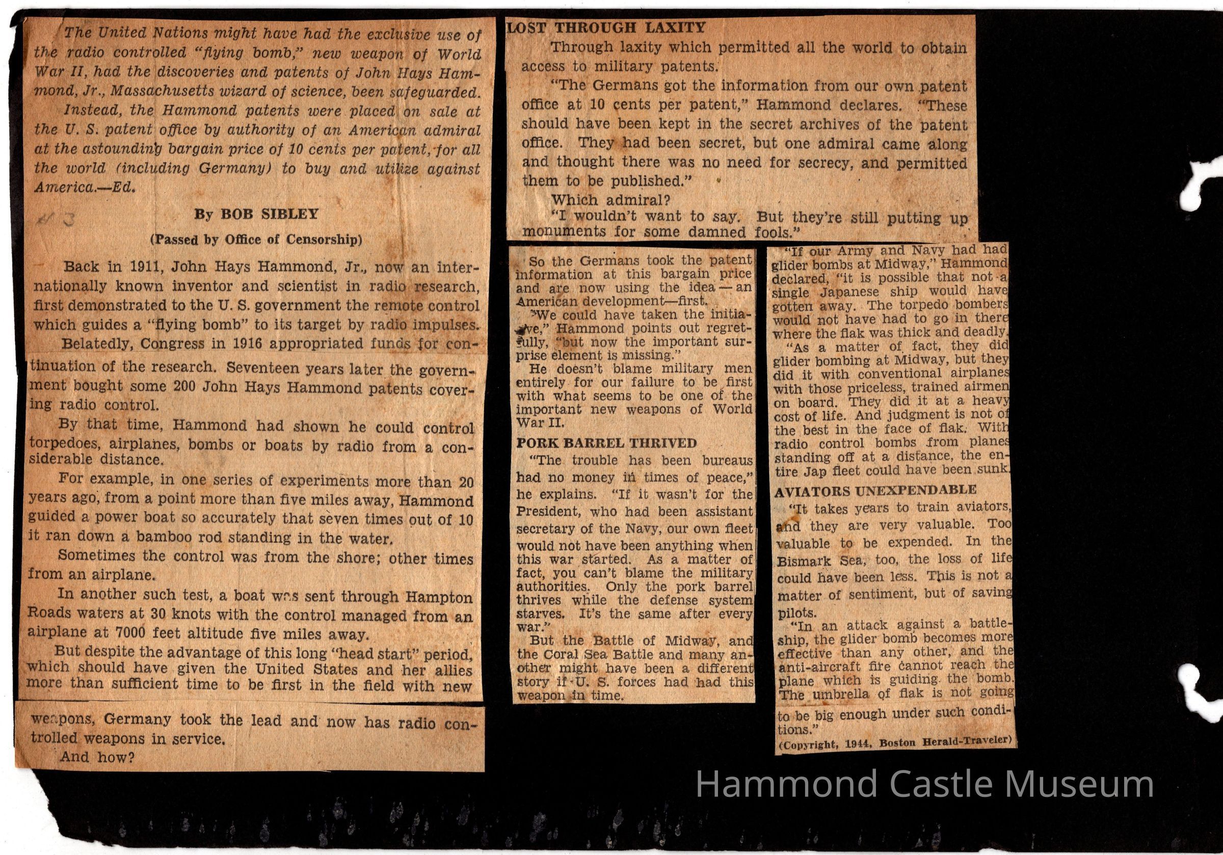 Scrapbook of Odysseus crew and sail to Washington DC kept by crew member, Albert Leslie Lundgren. Also includes news clippings of Hammond's "Visible Whistle," WWII weapons and obituaries.