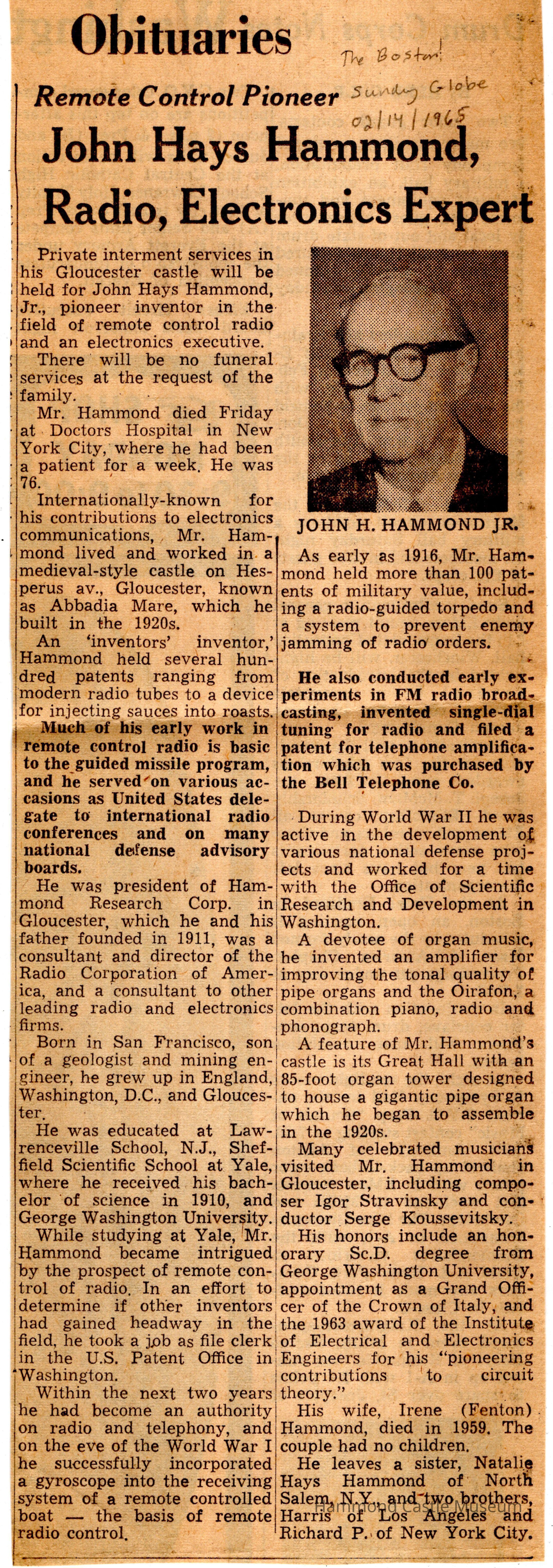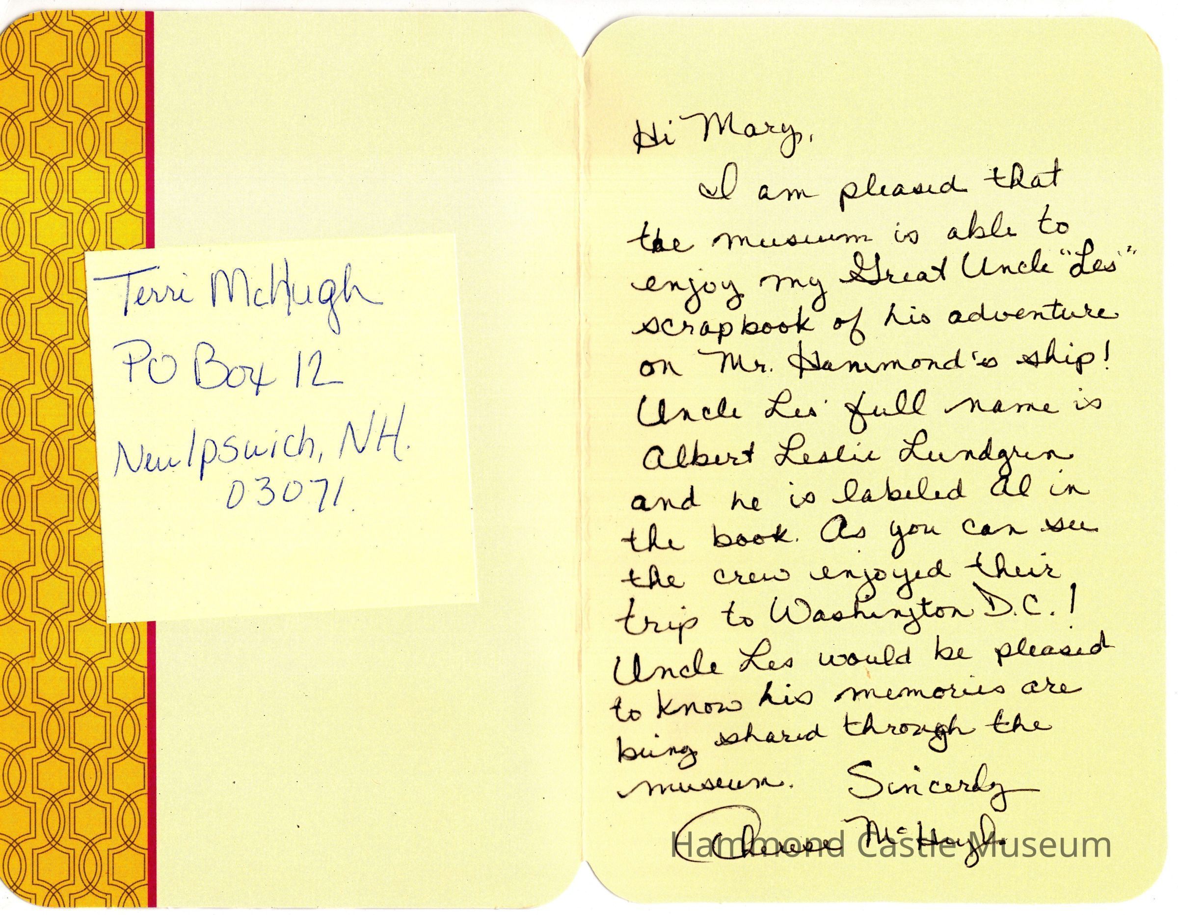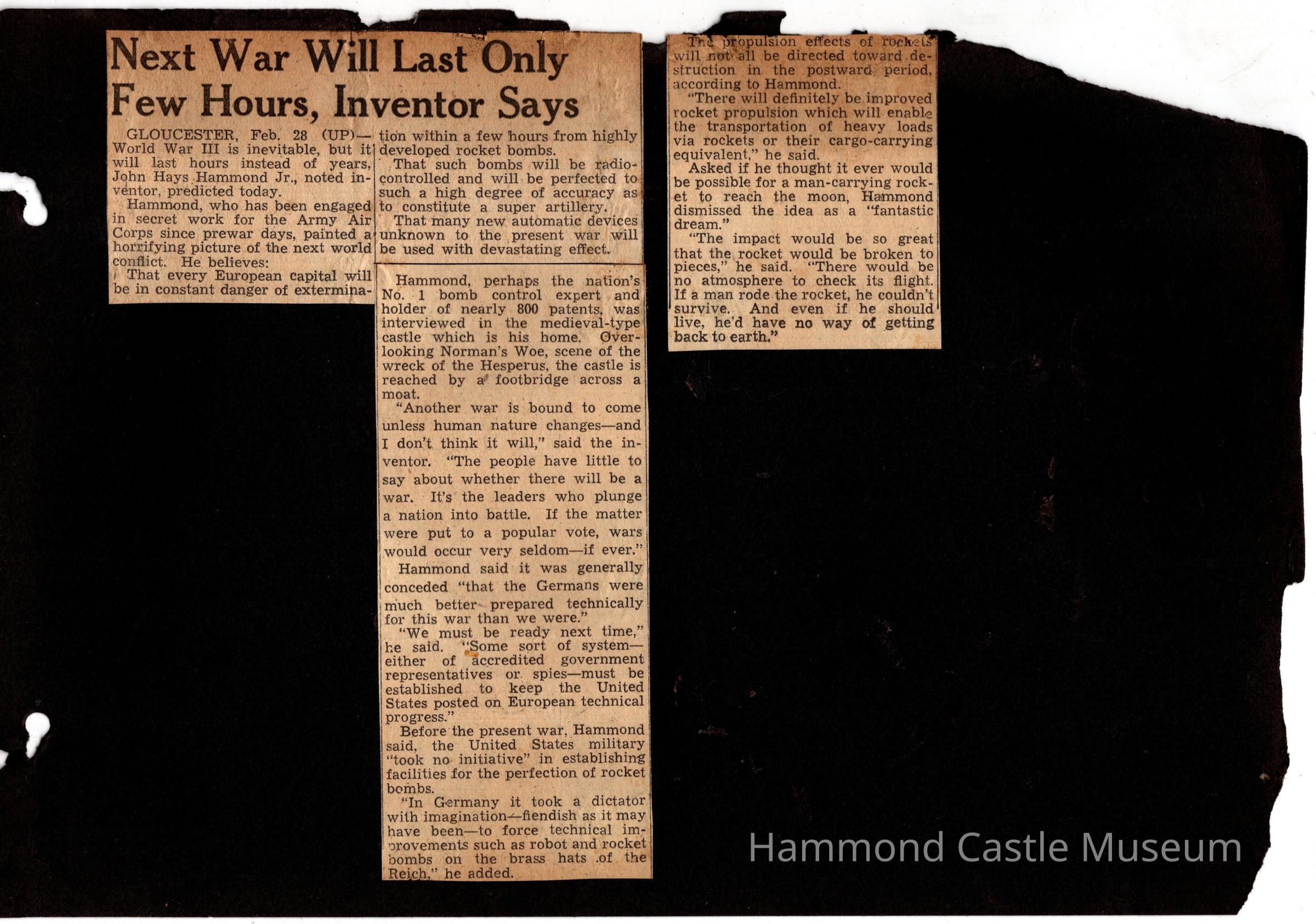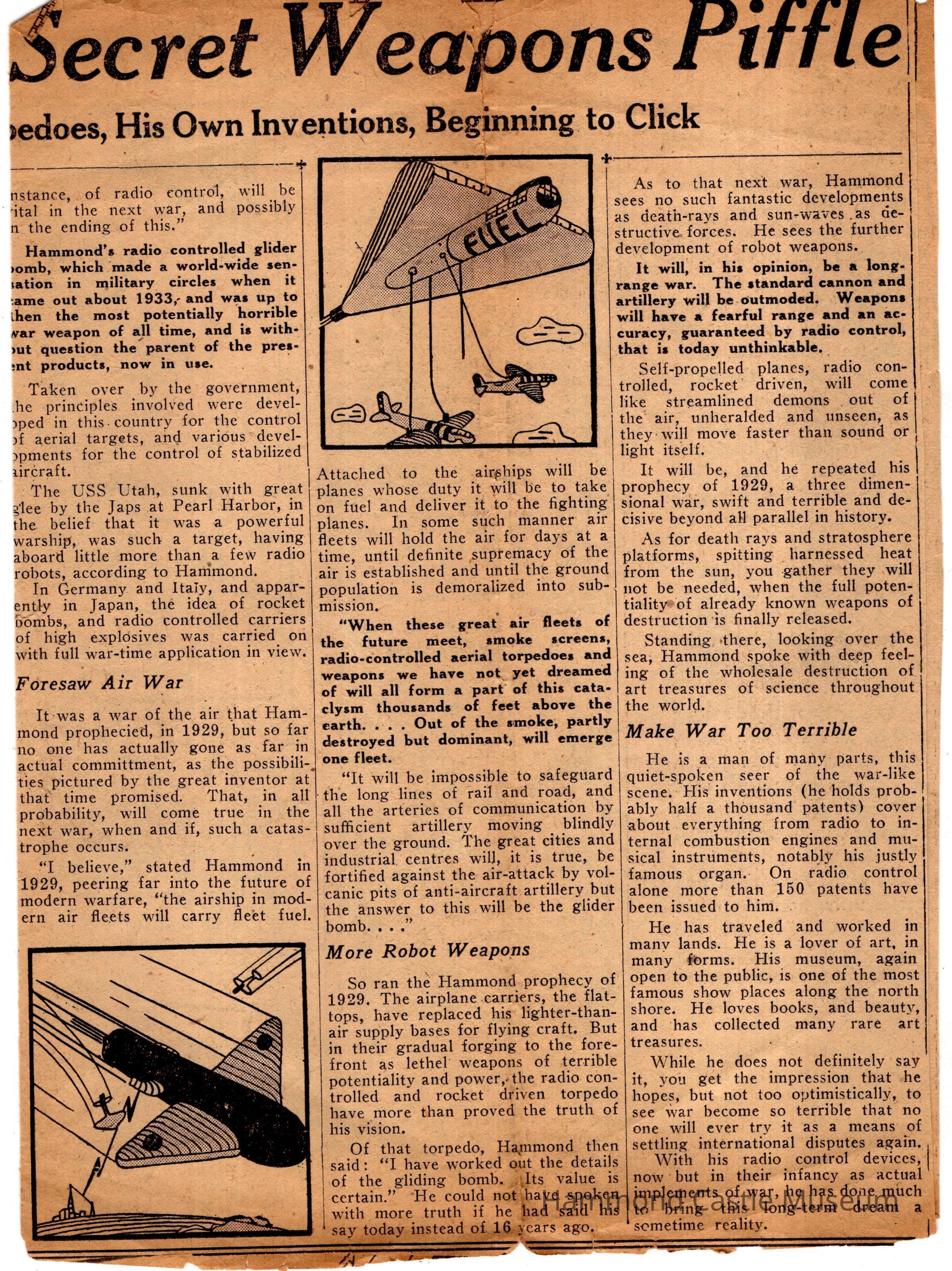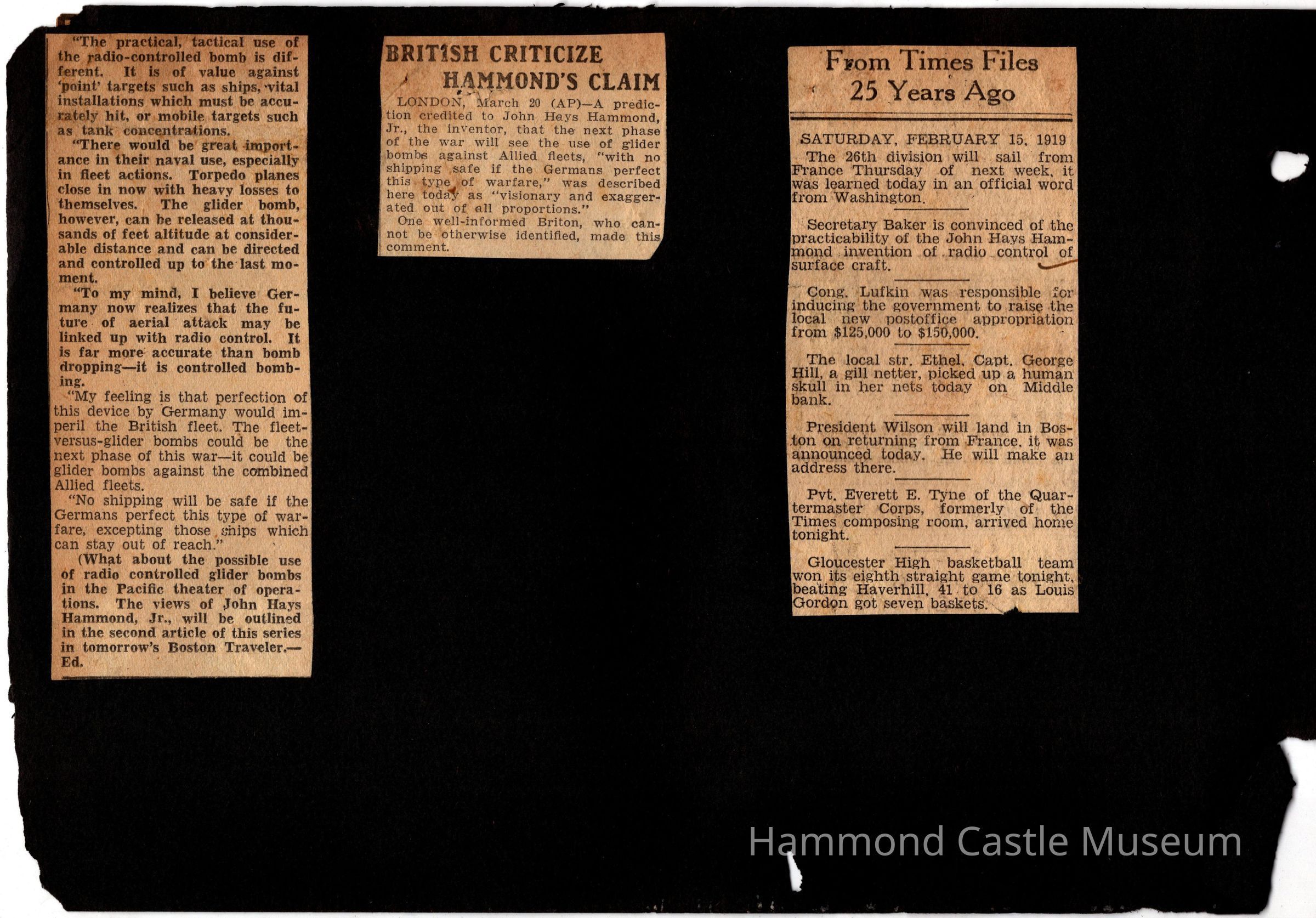 Scrapbook of Odysseus crew and sail to Washington DC kept by crew member, Albert Leslie Lundgren. Also includes news clippings of Hammond's "Visible Whistle," WWII weapons and obituaries.