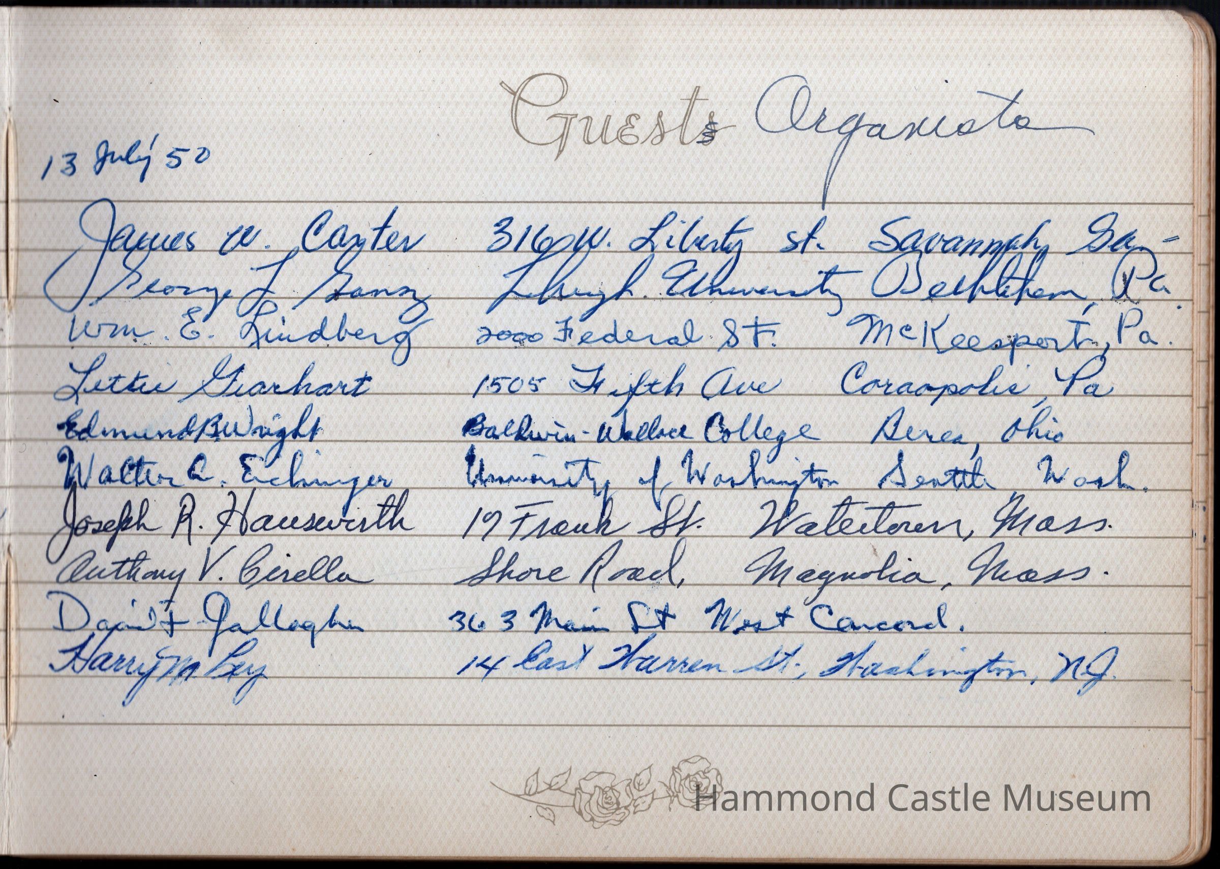 1947-1969 Guest Book #2 - Organists & Religious Retreats