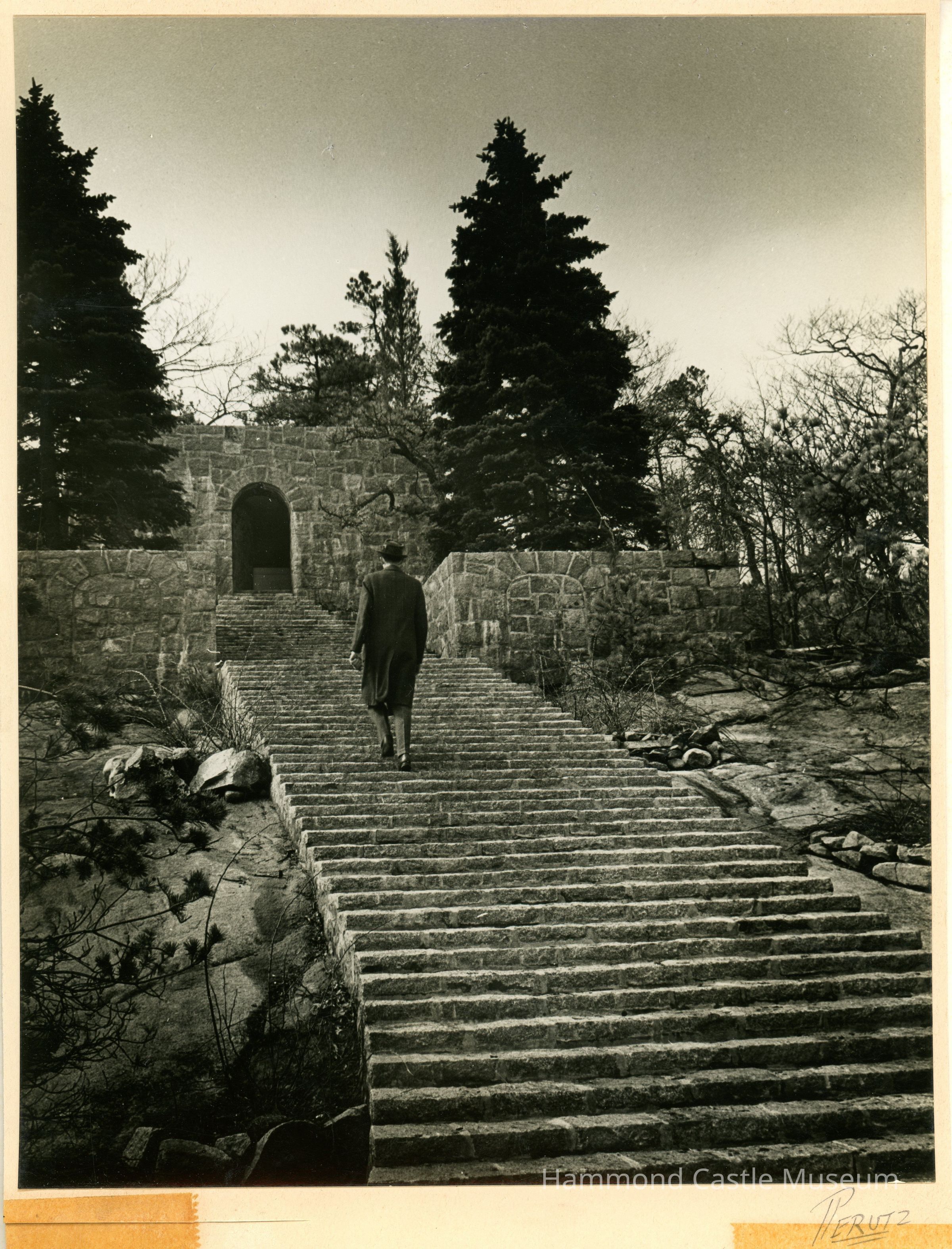 Photo of Hammond on steps at mausoleum Photo source unknown