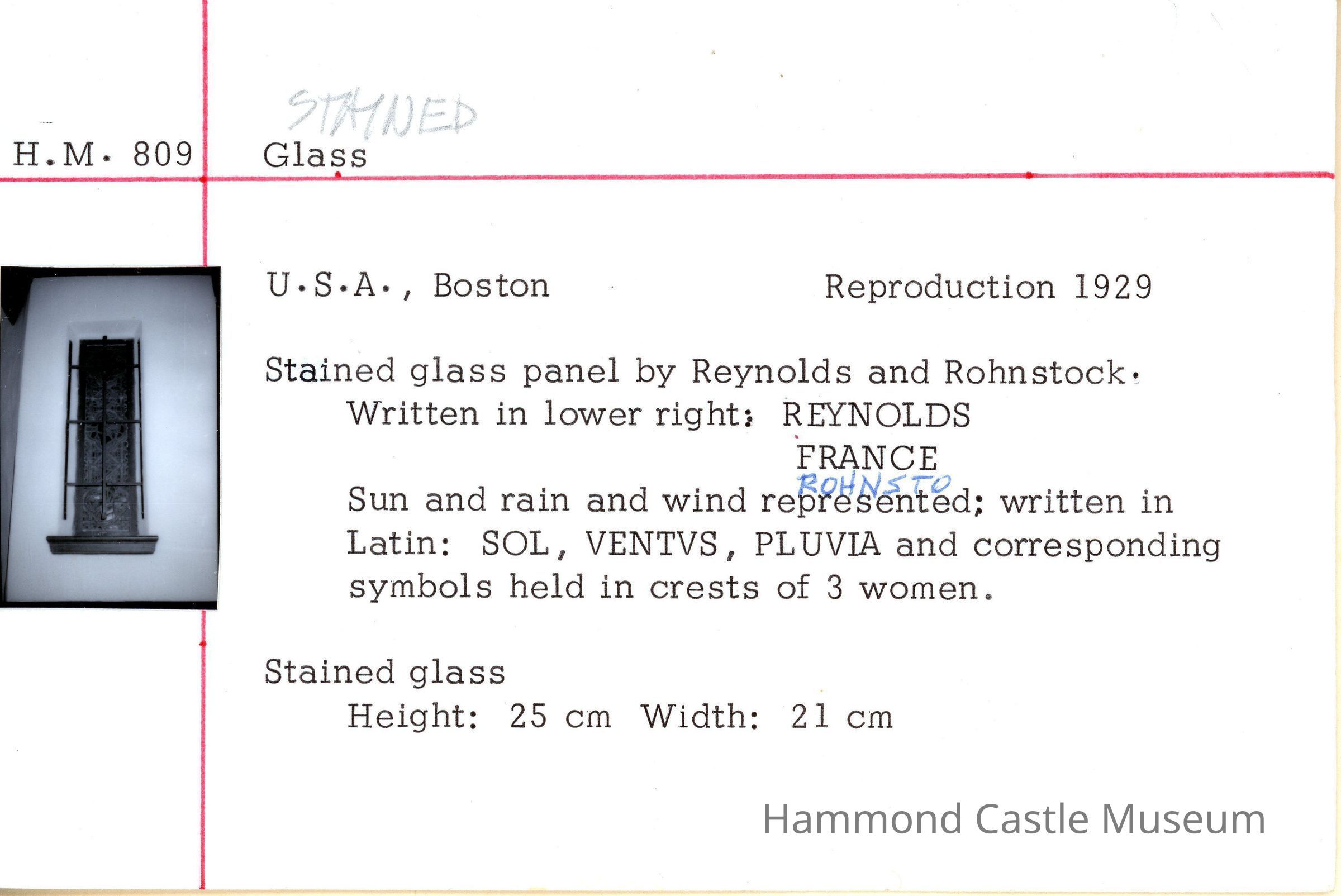1960 ca Reynolds & Rohnstock weather stained glass windowEntry/Object ID