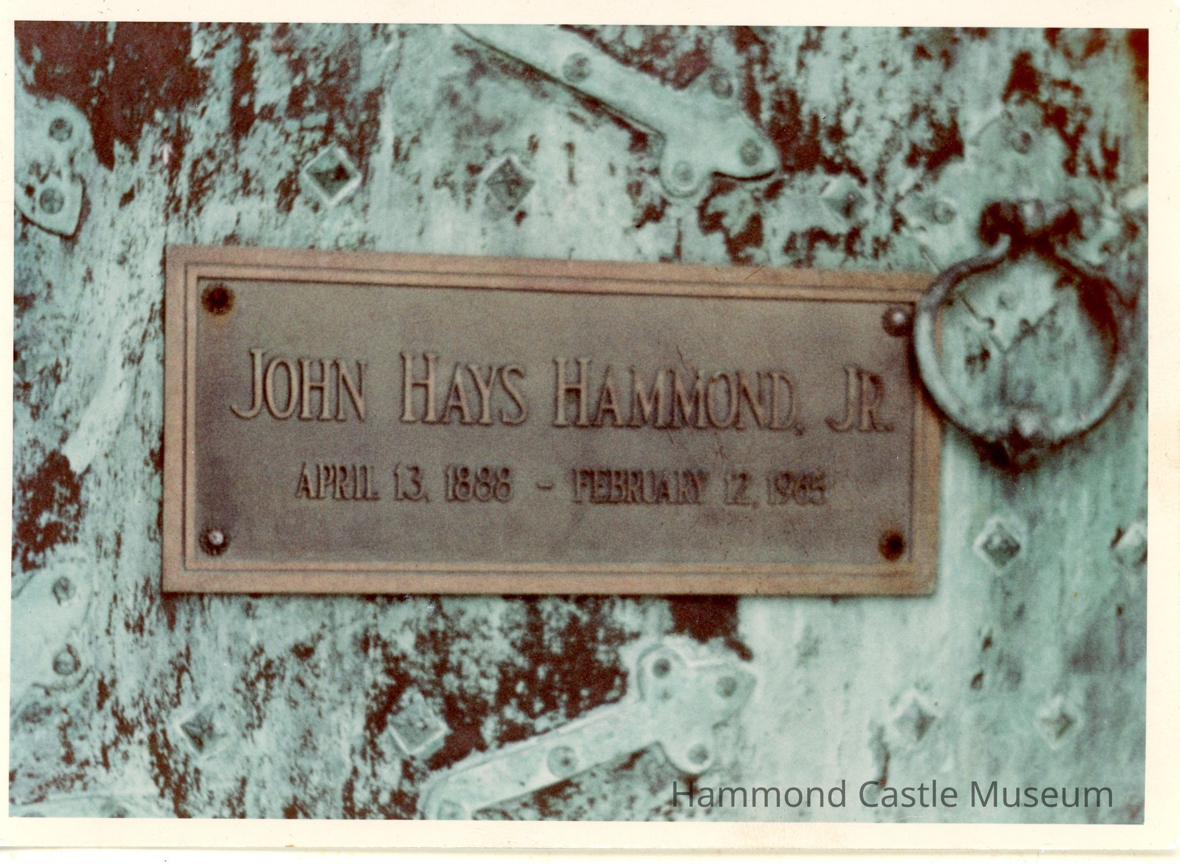Photo of bronze plaque on mausoleum door Photo source unknown
