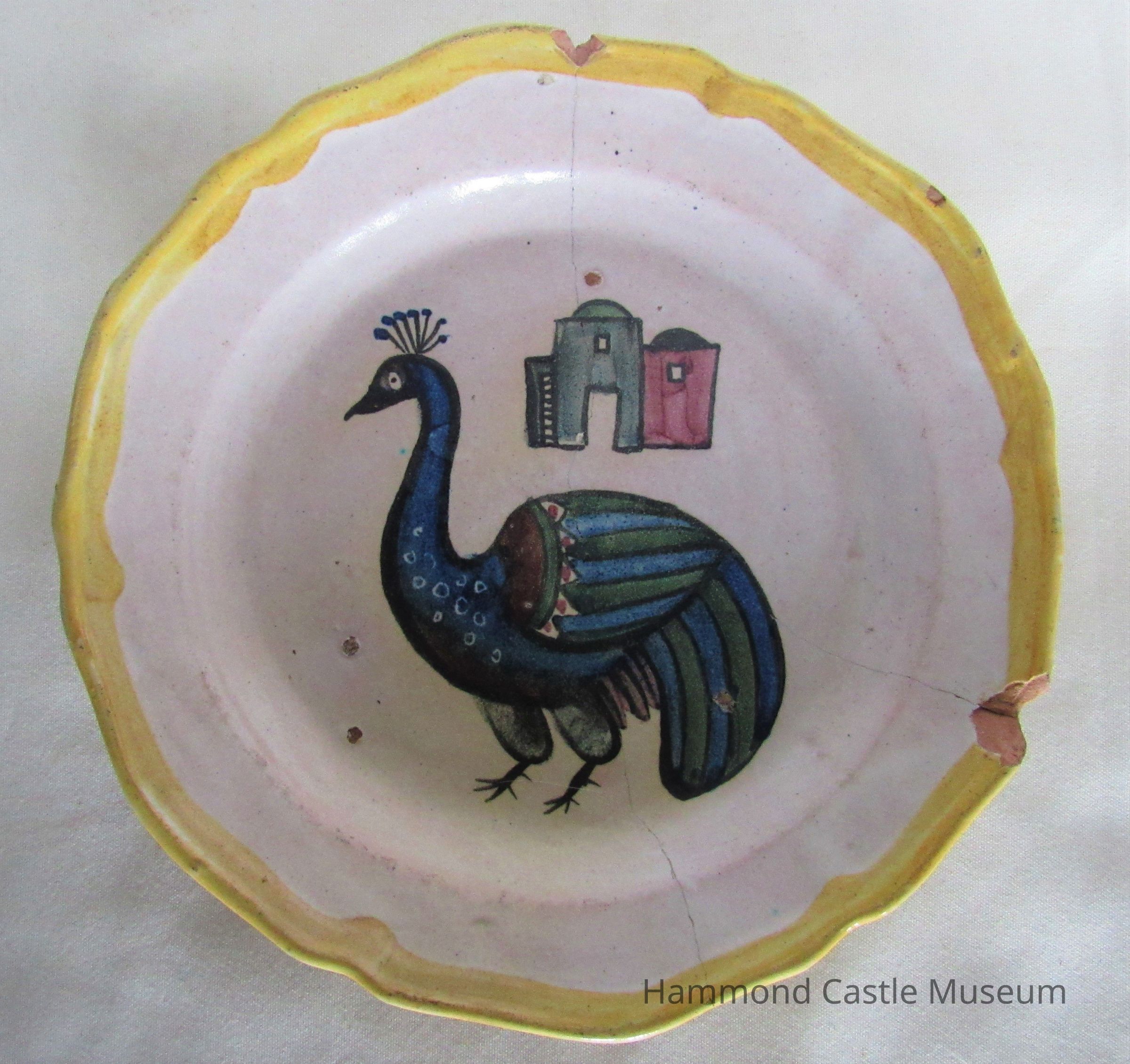 19th/20th c. Italian Earthenware Bowl with Peacock & Buildings