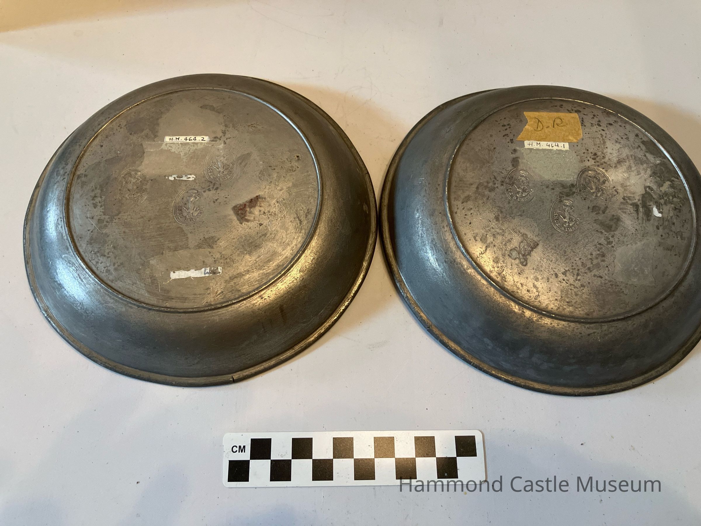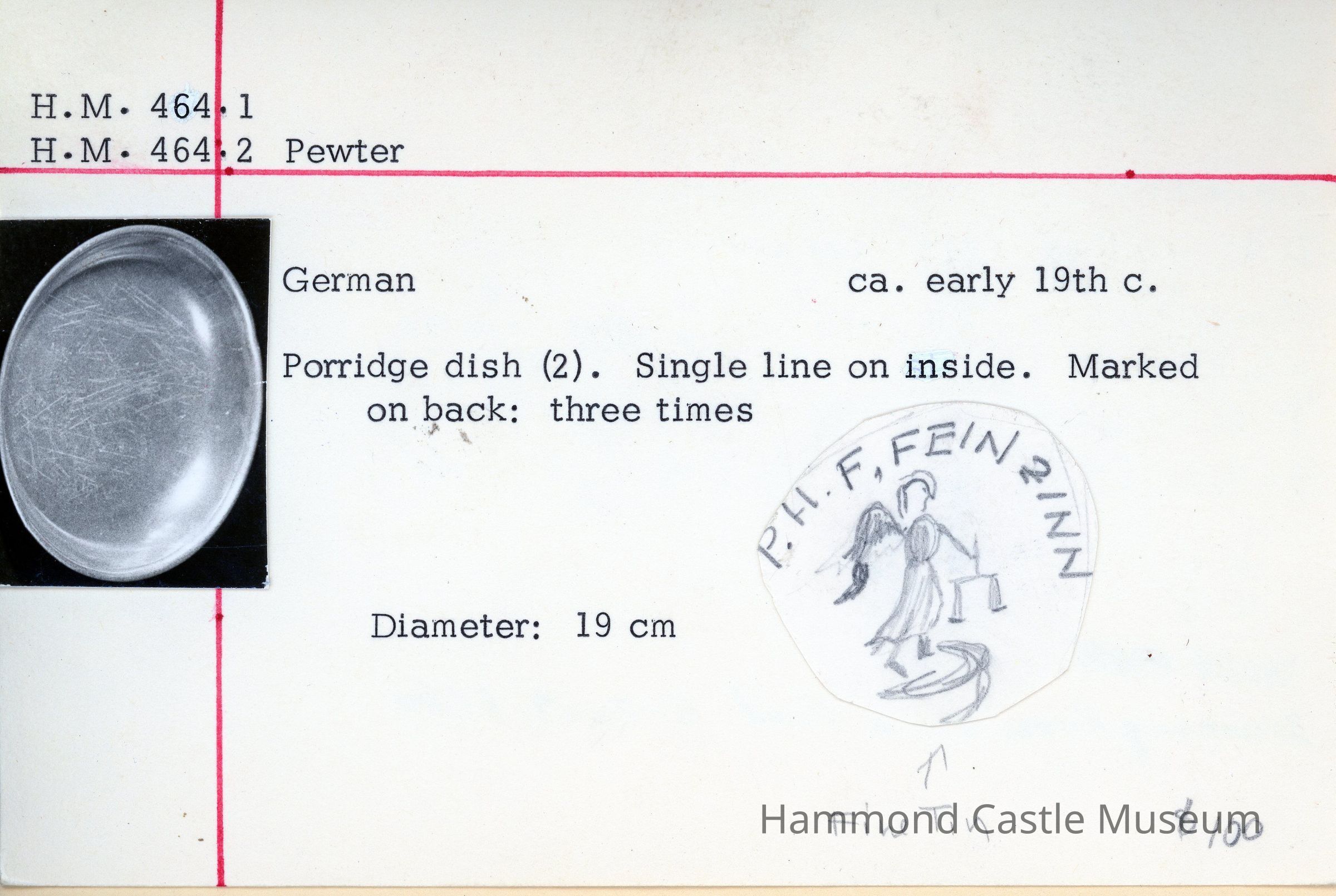 Pair of porridge dishes. Single line on inside. Marked on back: three times (see catalogue card). German circa early-19th century