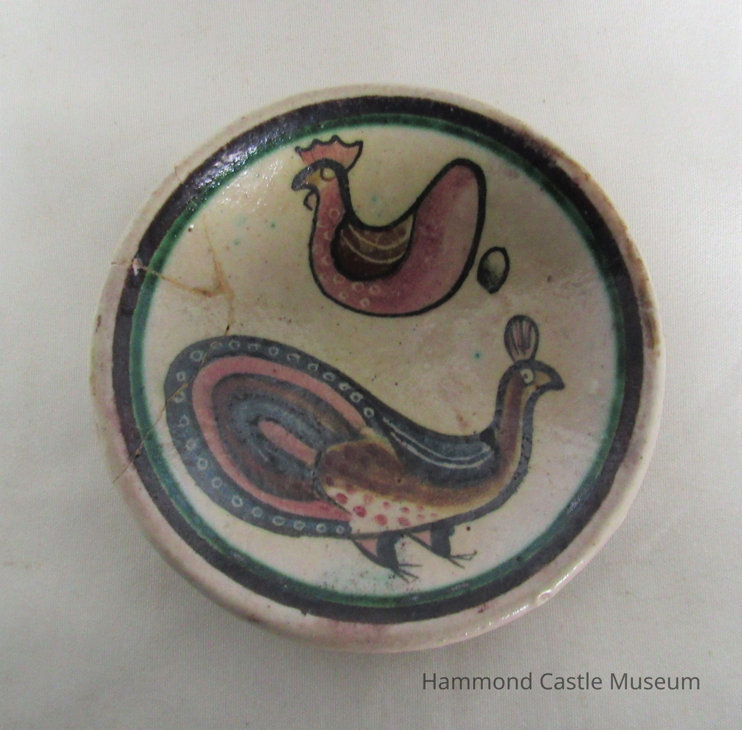 19th/20th c. Italian Earthenware Bowl with Peacock & Laying Hen