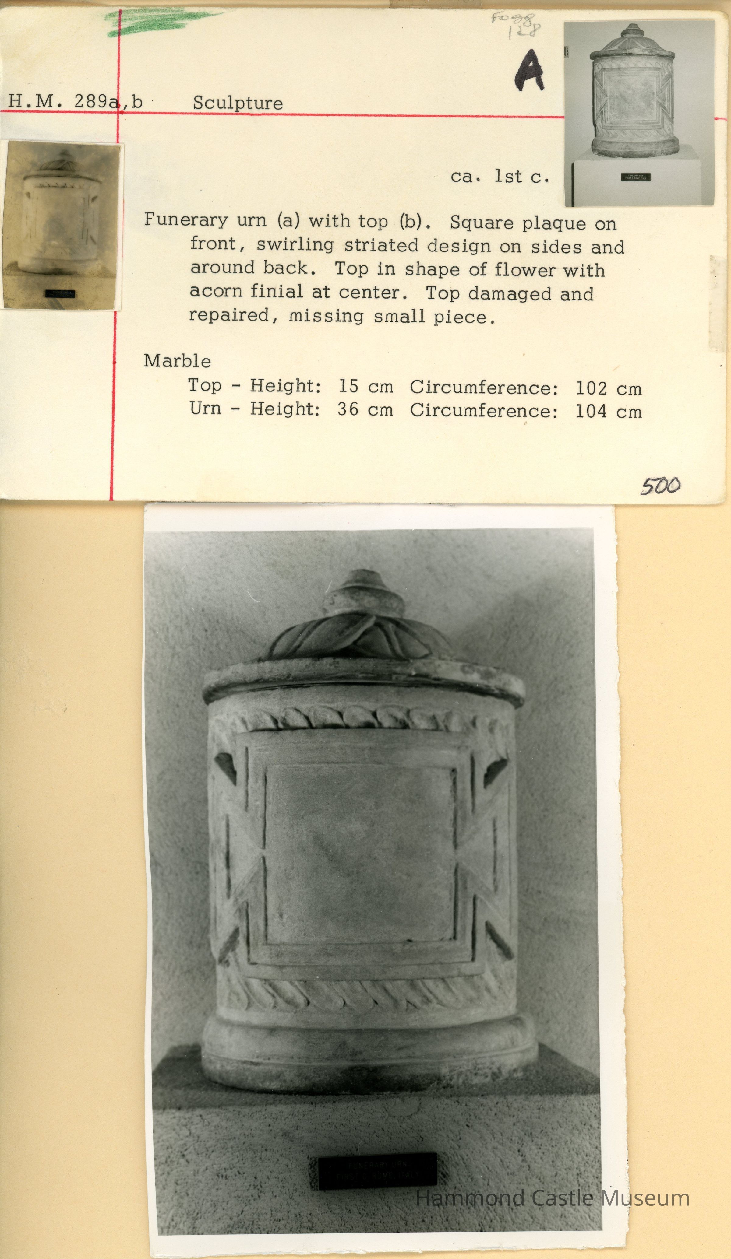 1993-06-12 Sotheby's Catalog, #155 - HM289 a&b marble cinerarium (funerary urn)Note Type