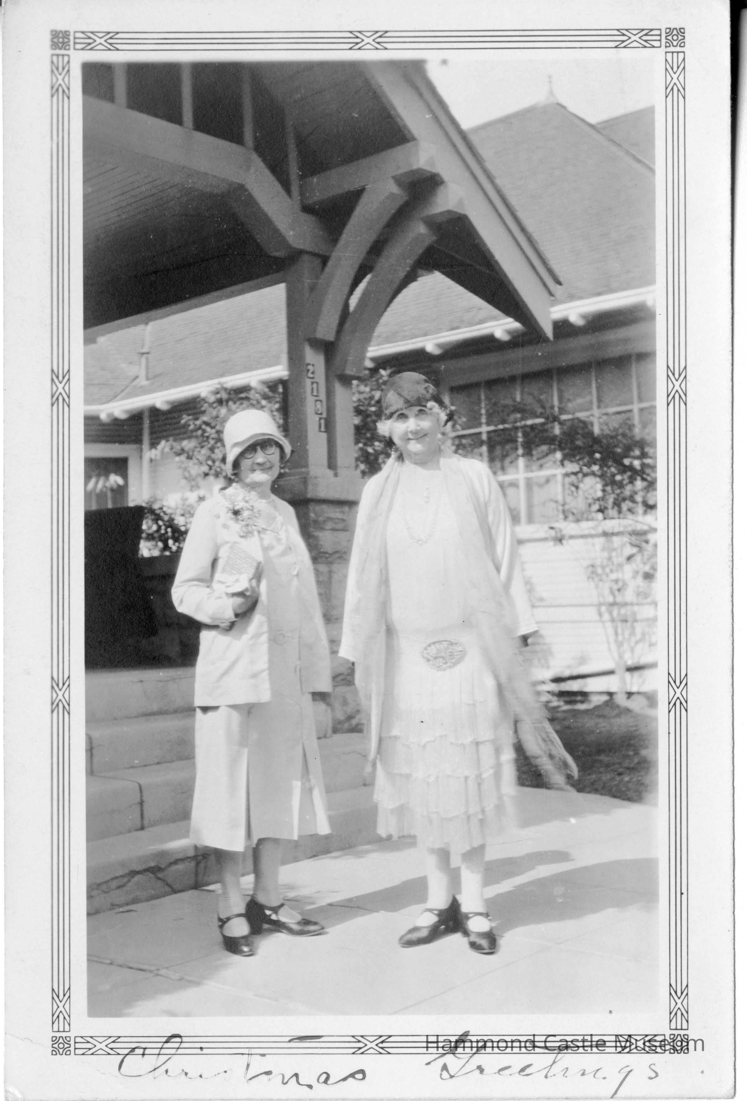 Photo of 2 ladies at porch steps, signed "Christmas Greetings"
