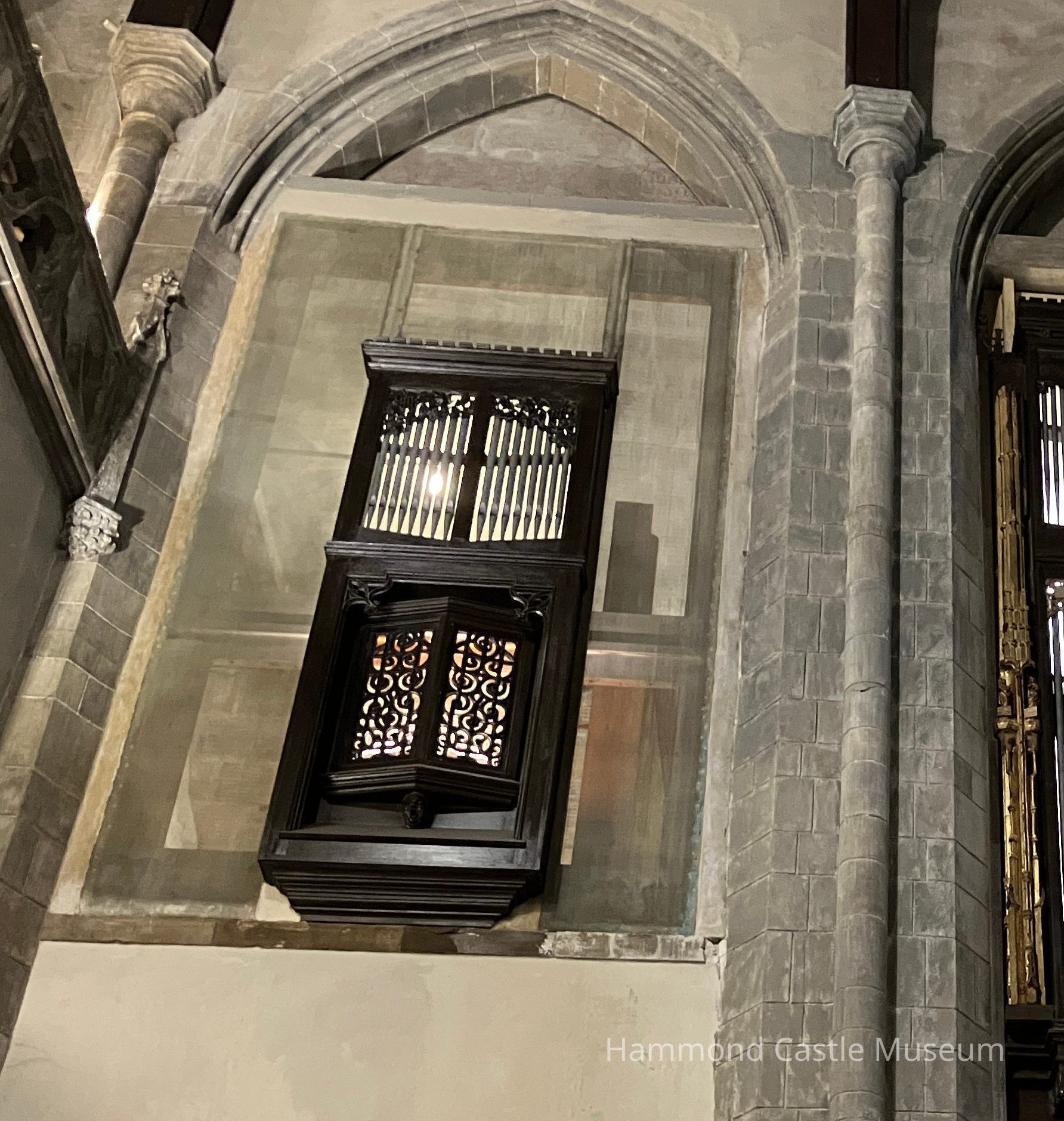 Wooden Shutter doors for organ chambers used as symmetrical decoration in Great Hall.