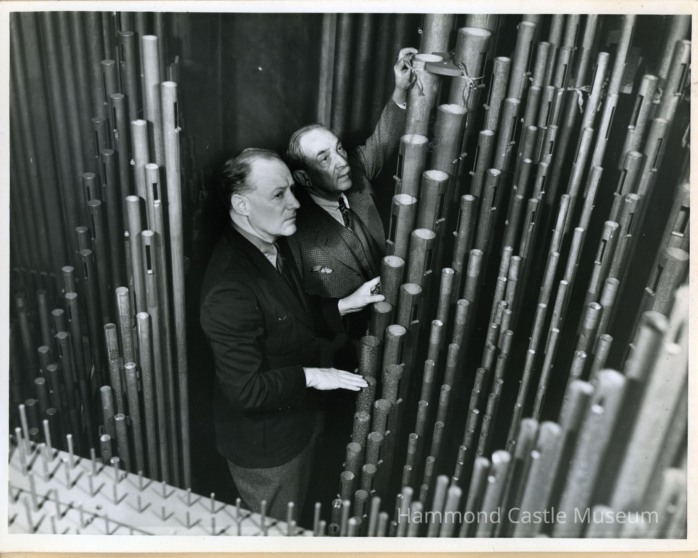 Photo of Hammond & Charles Willett with organ pipes John Adams image
