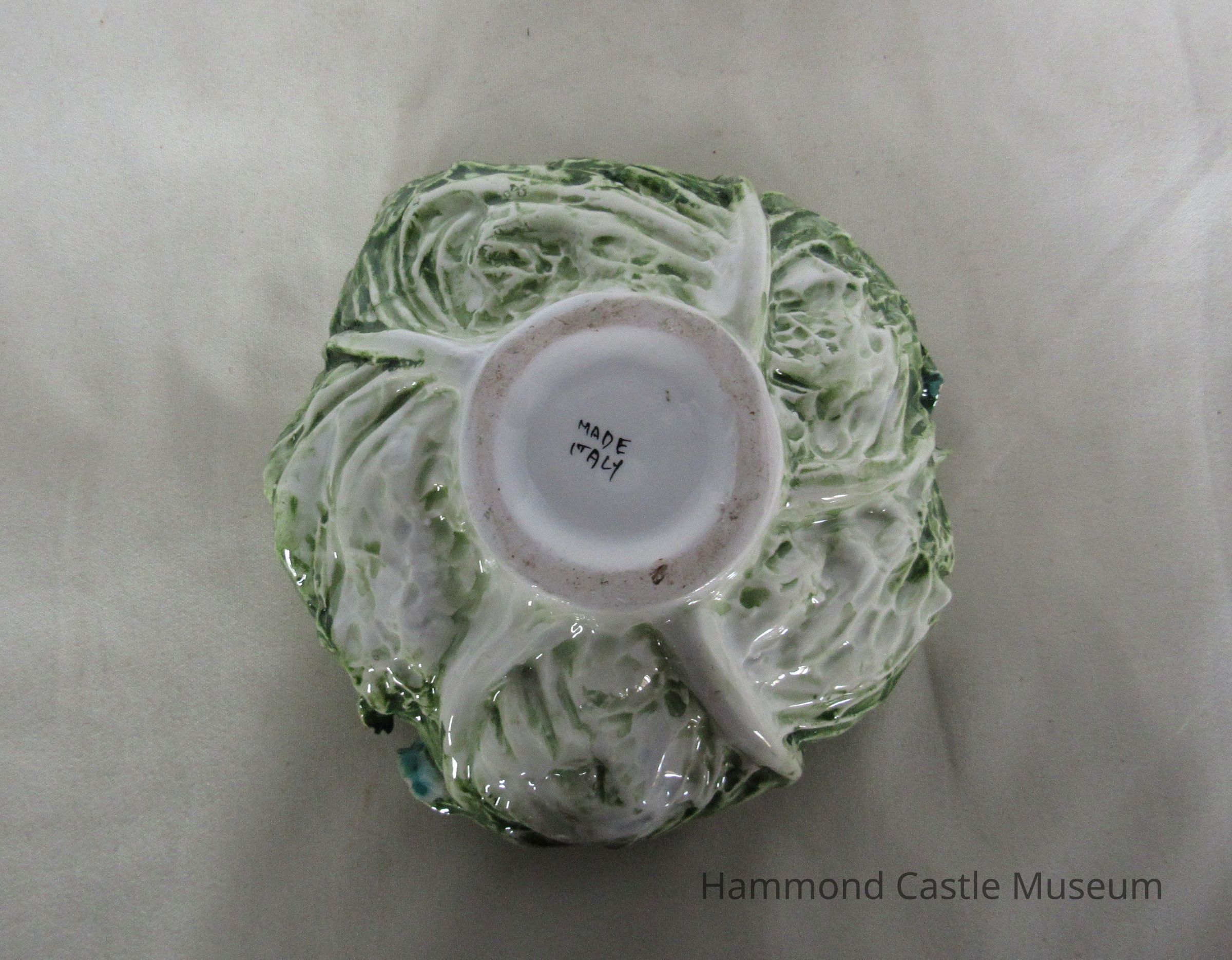 Ceramic tureen with lid and plate, all decorated to look like a cabbage