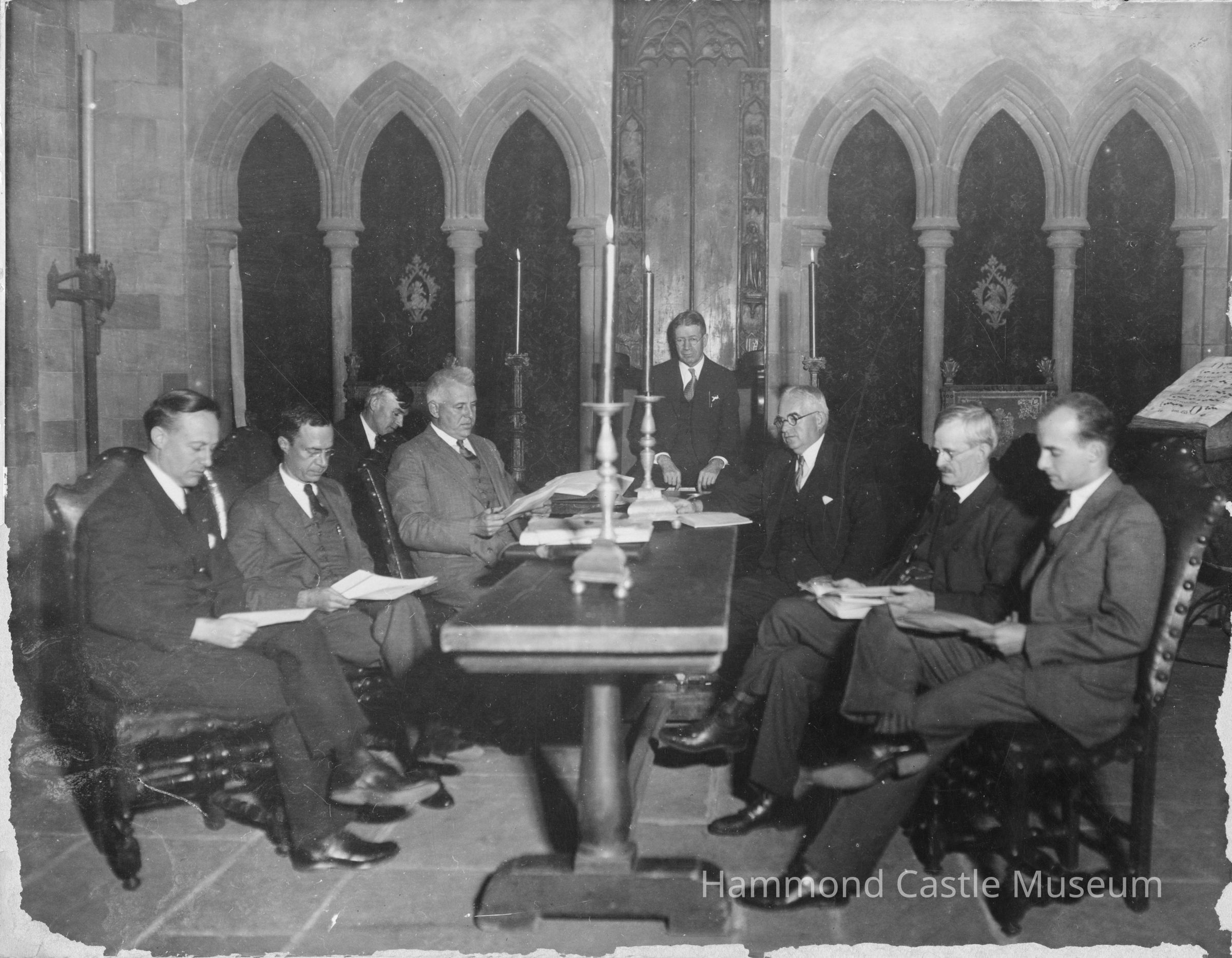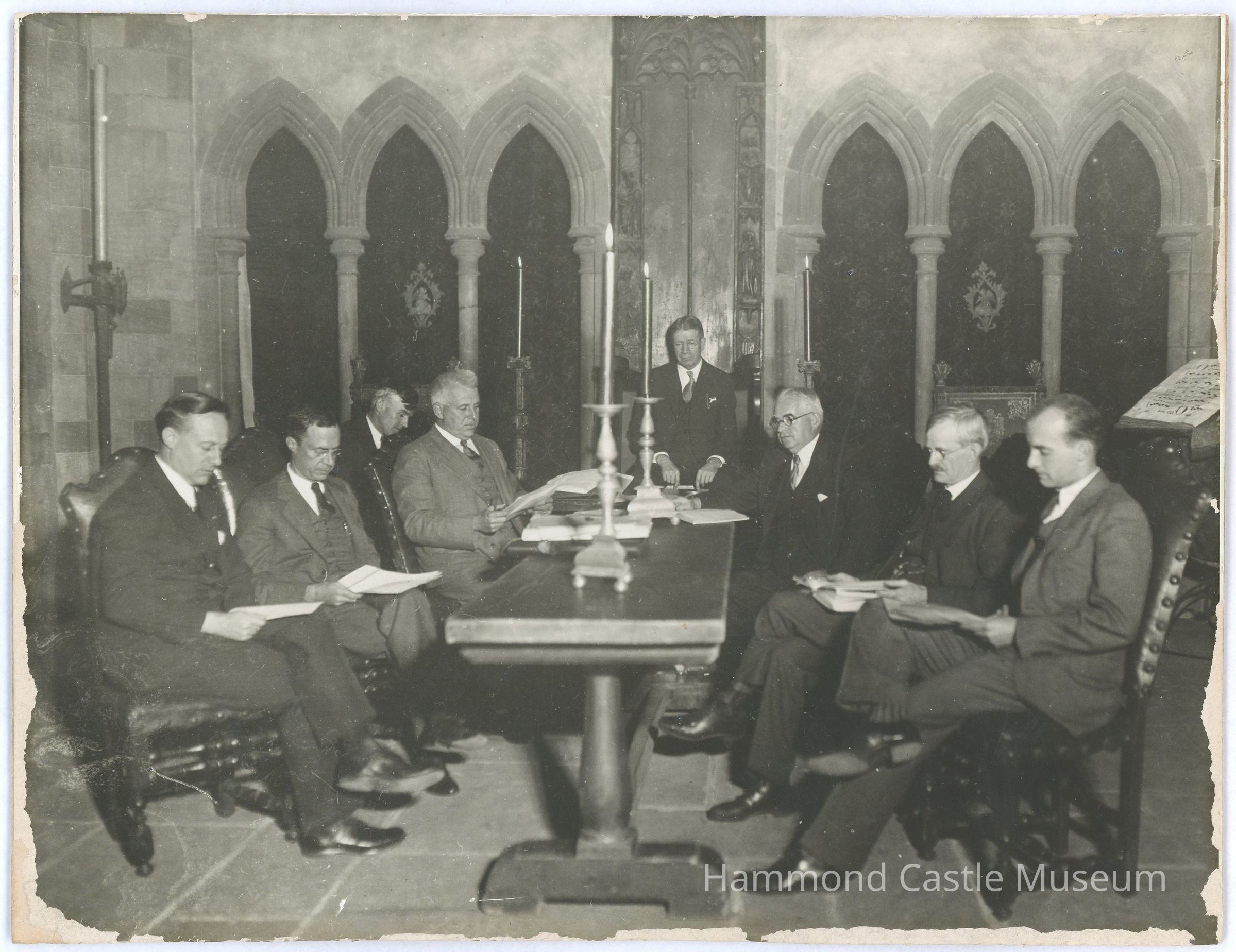 Photo of meeting in Great hall with Hammond on the left Choate B. Alderman image