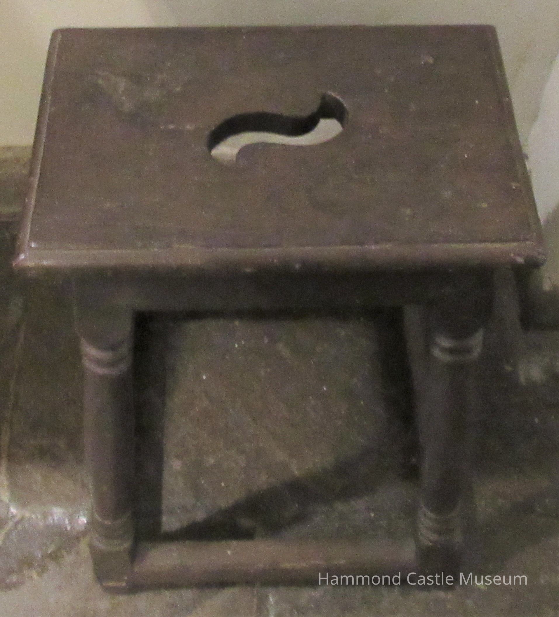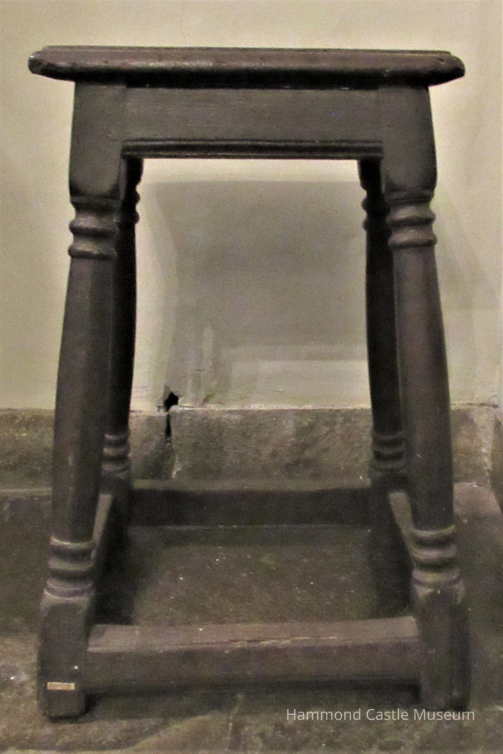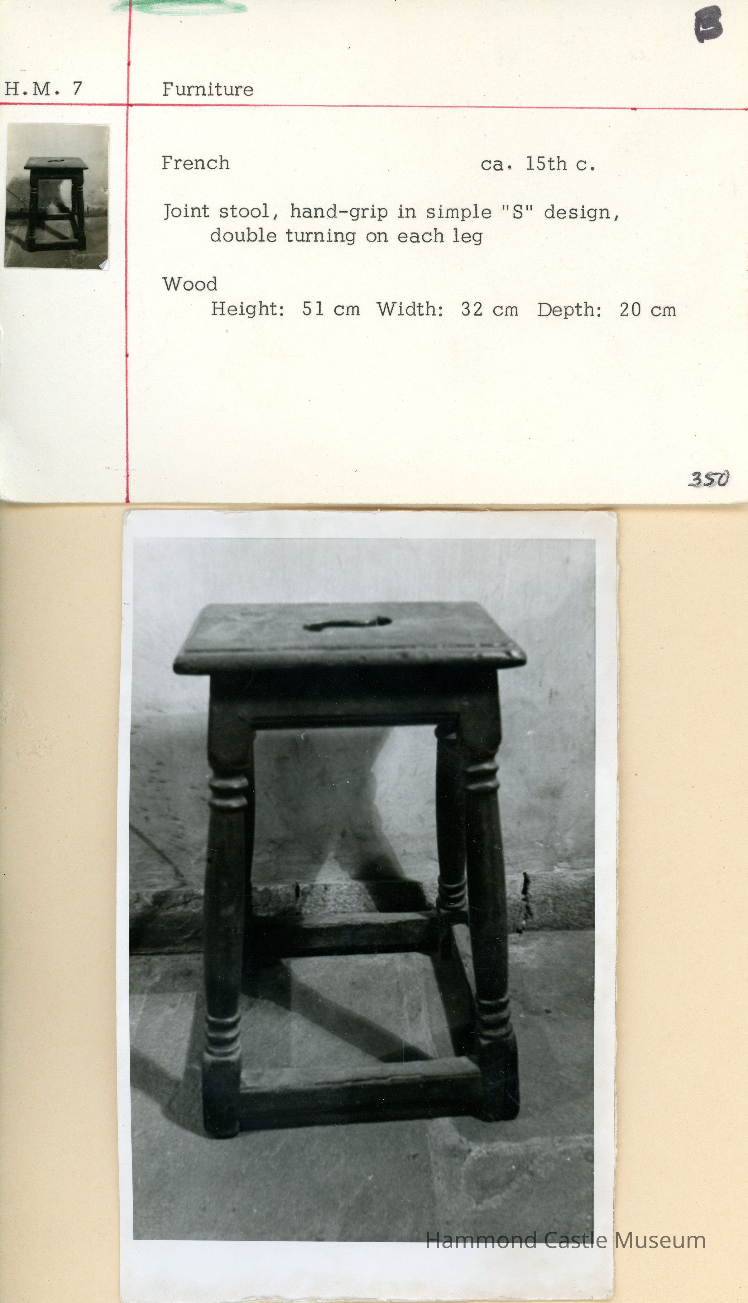 15th c. French Wooden Stool with "S" Handgrip Joint stool, hand-grip in simple "S" design, double turning on each leg.