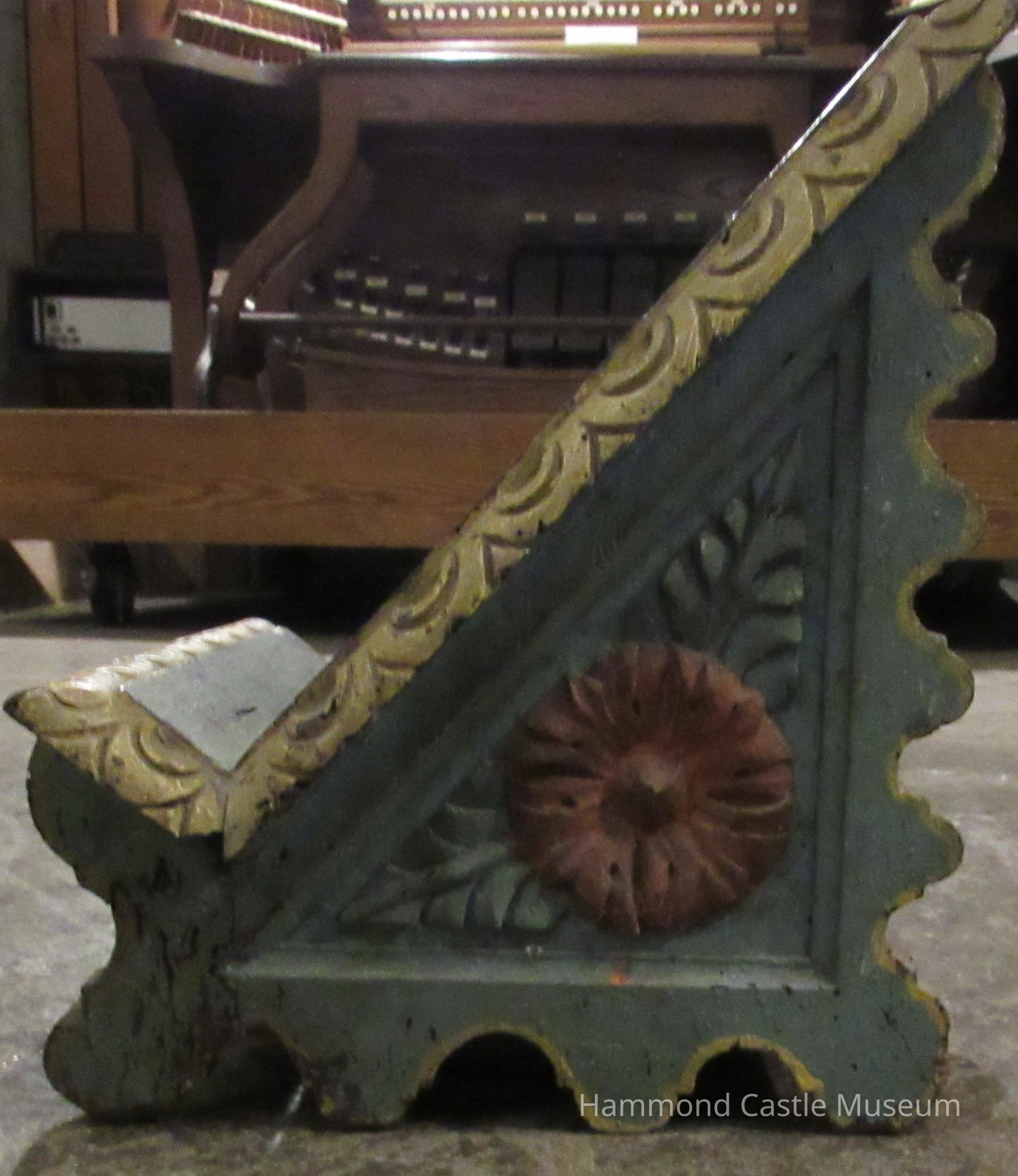 Polychromed carved wood with roses and other flowers in Moorish style.