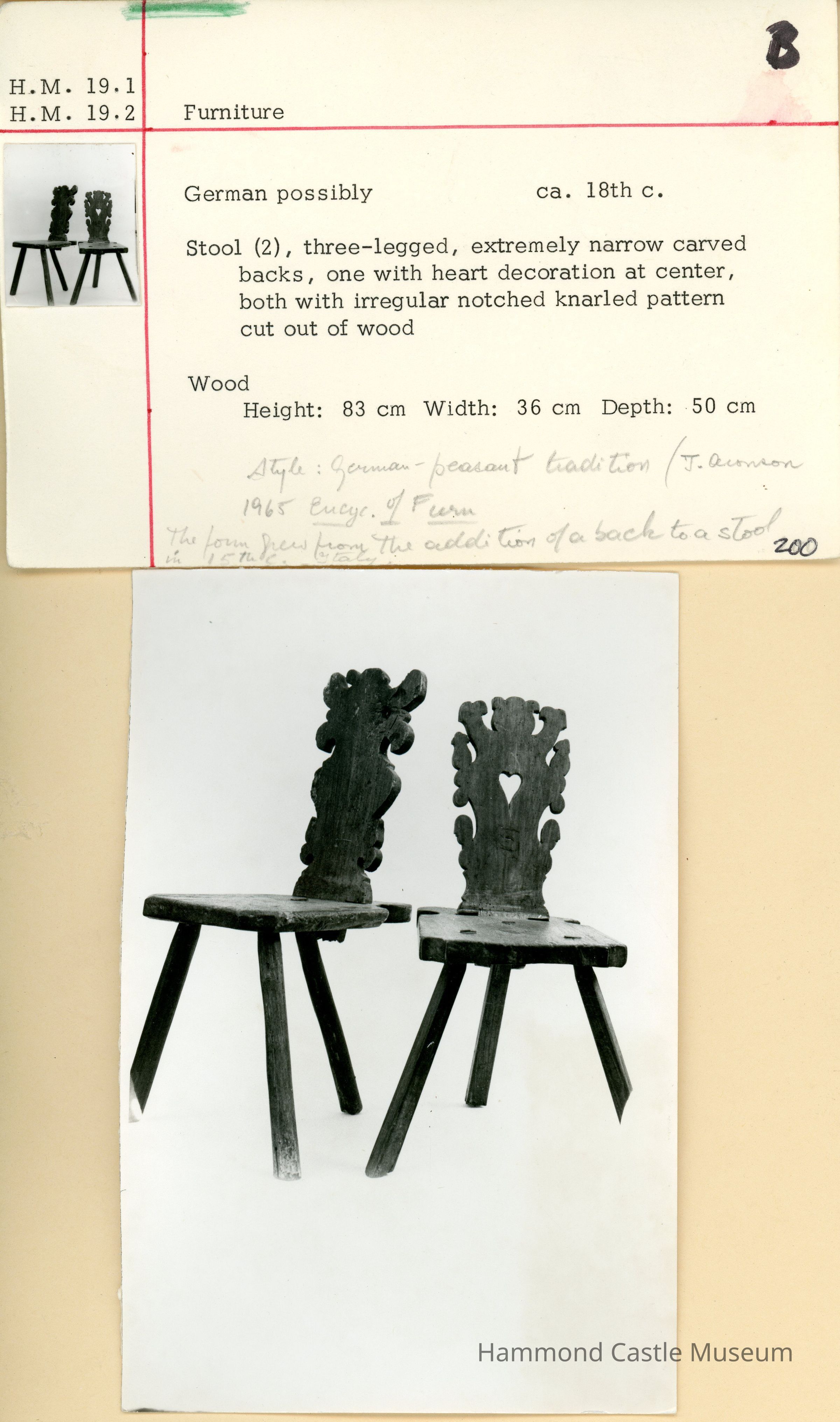 "The sgabello is a type of chair or stool with carved and often elaborately ornamented wood legs and back. The form originated in Renaissance Italy, and its popularity spread throughout Europe in the sixteenth and seventeenth centuries." (https://www.metmuseum.org/art/collection/search/670538)Collection