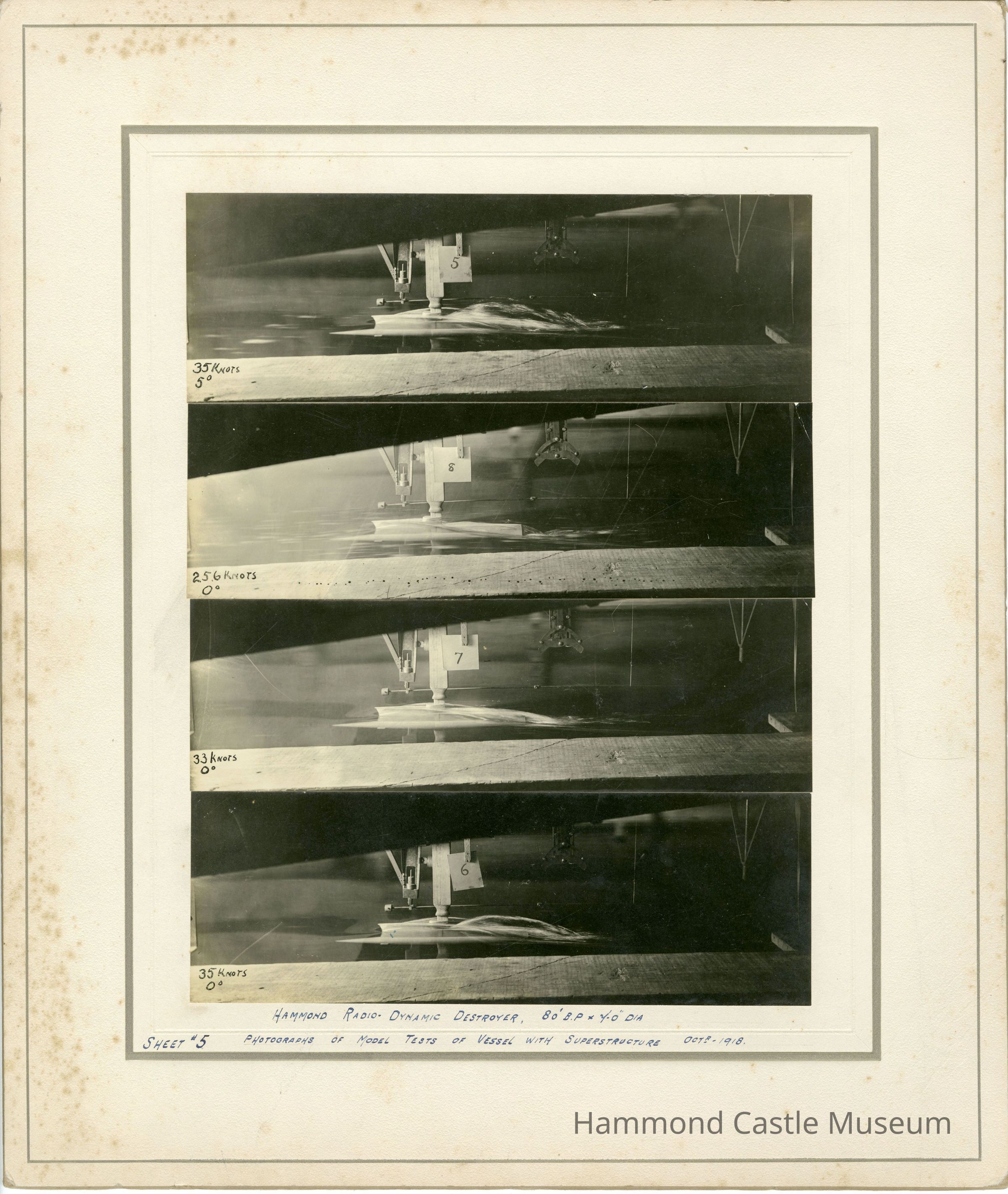 Photos & notes of Hammond Radio-Dynamic Destroyer Sheet #5 Model Tests of Vessel without Superstructure, Oct 1918