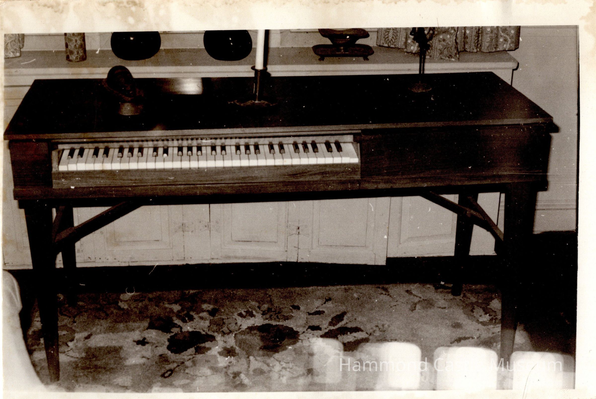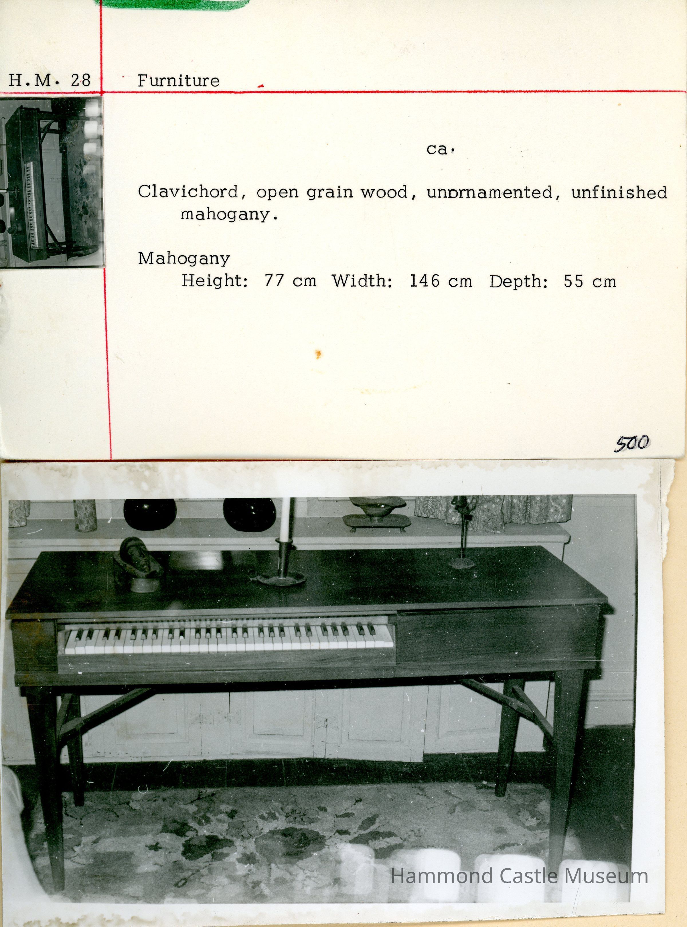 Clavichord, open grain wood, unornamented, unfinished mahogany. Listed as Schramm Spinet Purchased April 25, 1928, in Munich, Germany 1965 Probate Inventory - Lower Guestroom