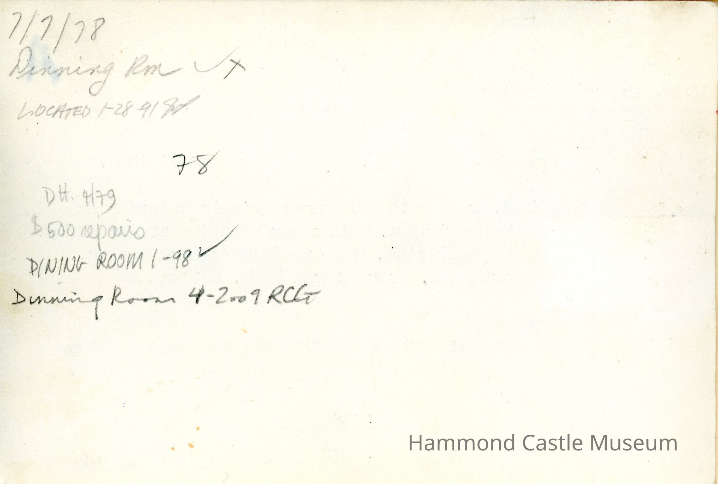 1970ca Handwritten Inventory p(7) - Dining Room & Sicilian RoomNote Type