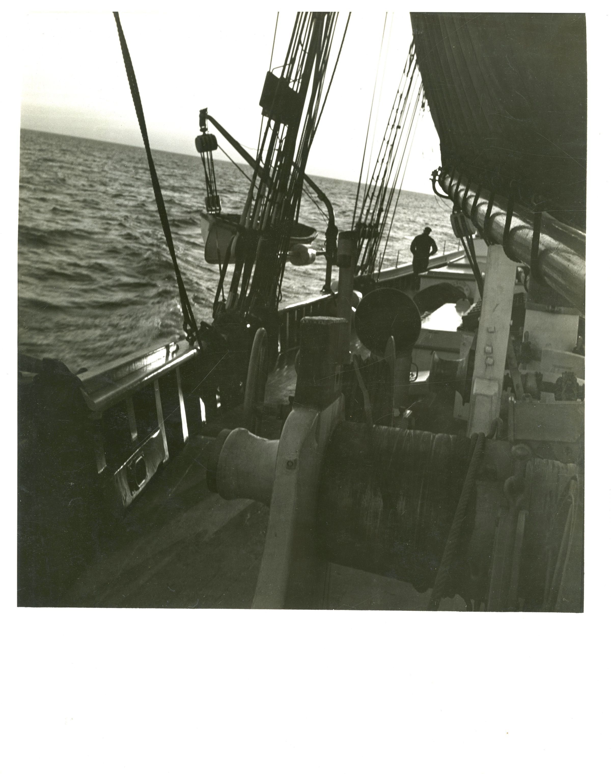 Photo of schooner deck at sea, probably Odysseus