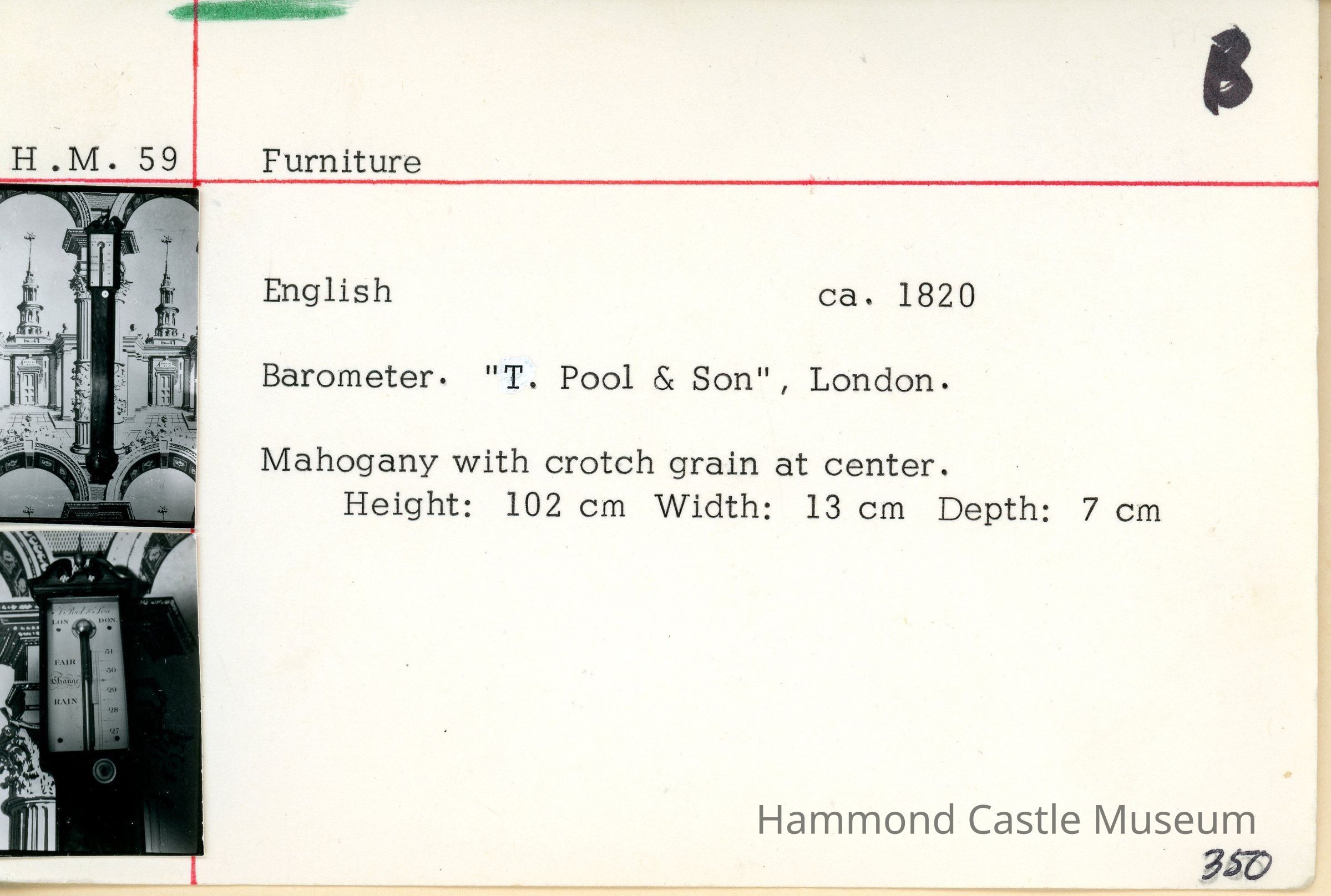 Mahogany barometer with crotch grain at center. "T. Pool & Son", London. 1820 ca.