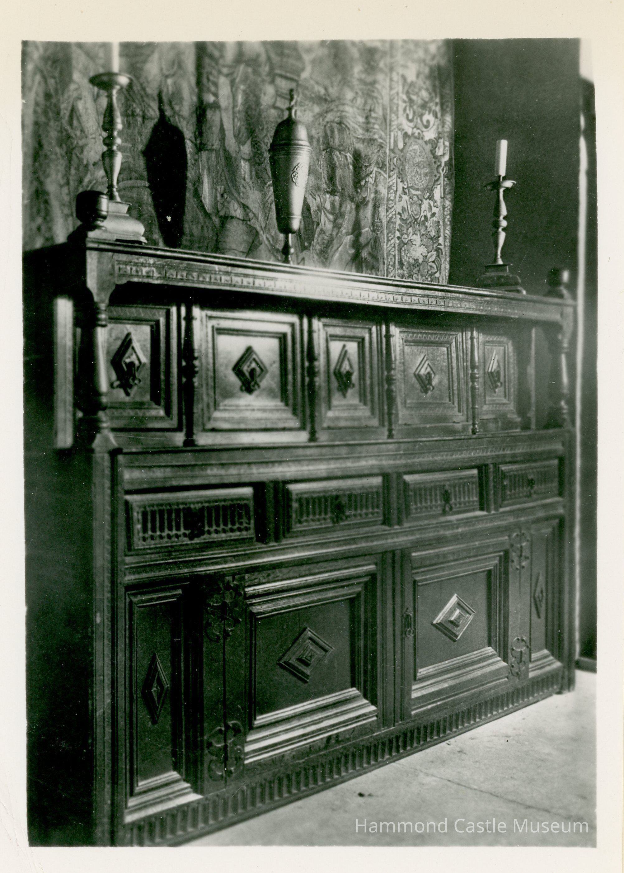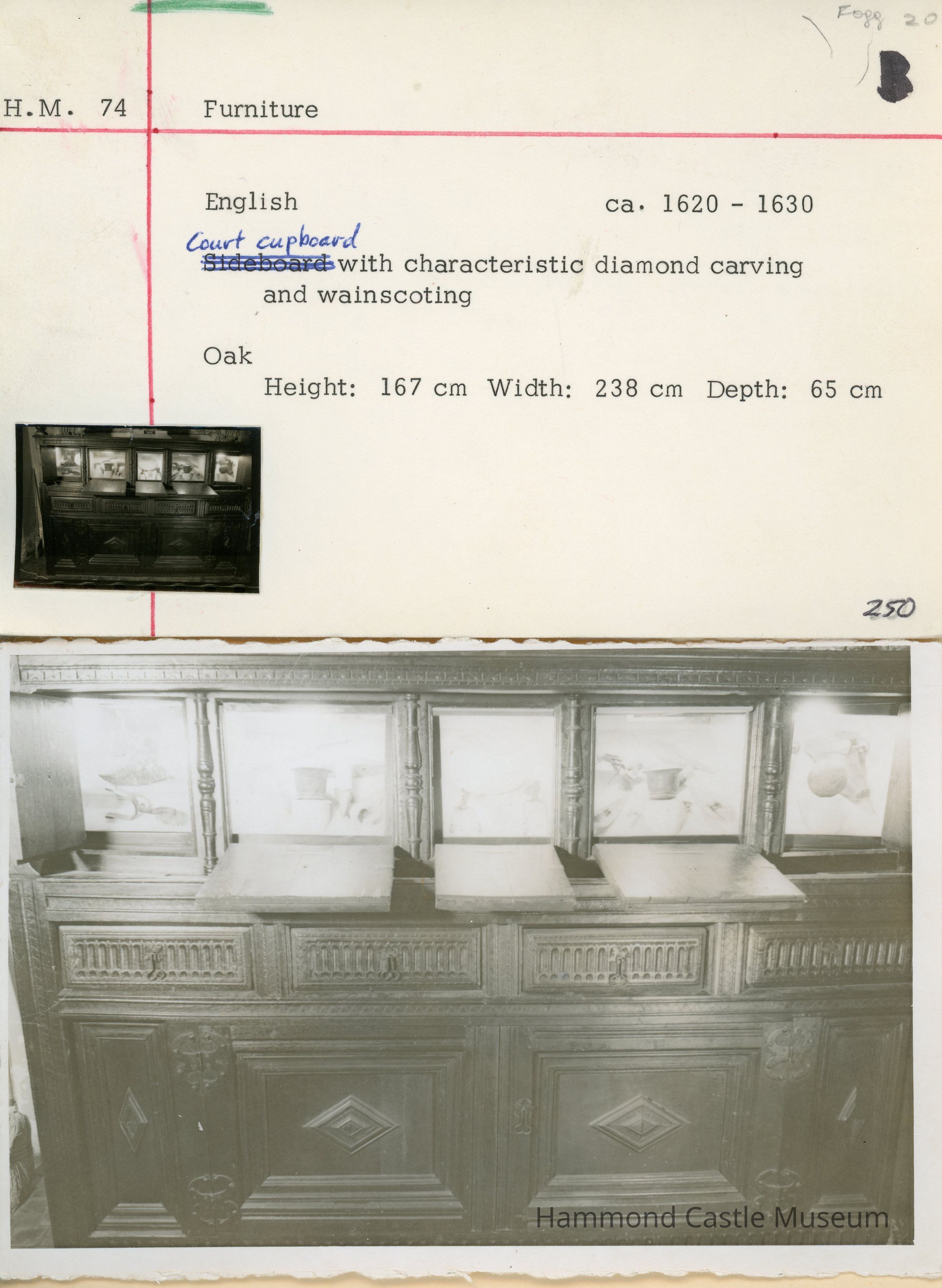 HM74 English 17thc cupboard w diamond motif infoNote Type