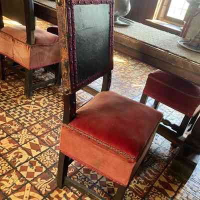 2009, chairs were reupholstered with maroon velvet and placed in dining room.Collection