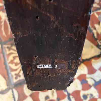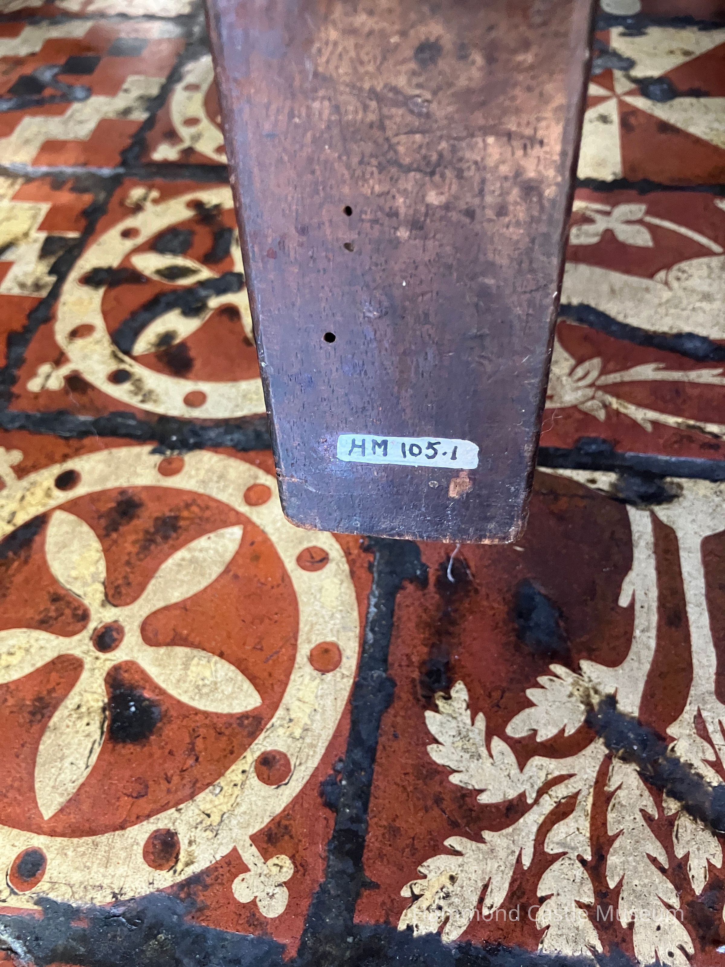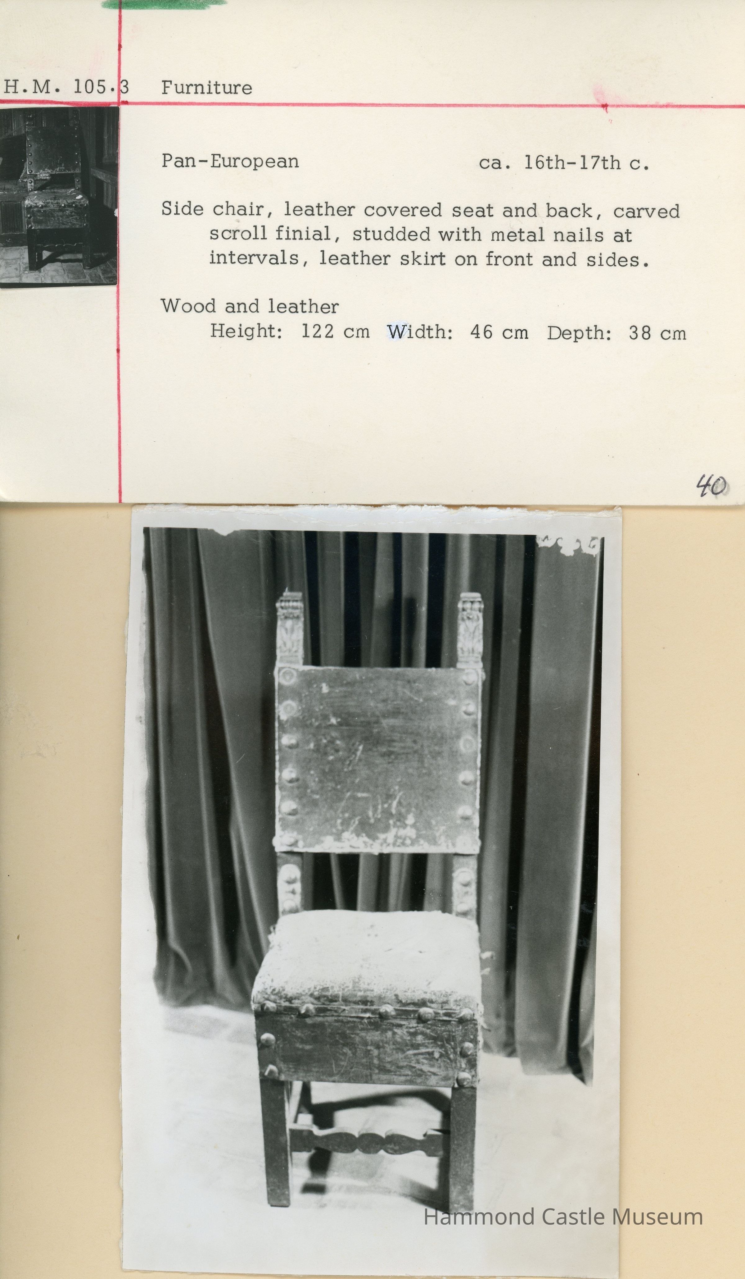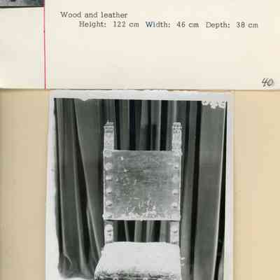 HM105. 1&2 16-17th c leather & wood chairs no arms (1983 condition report)Note Type