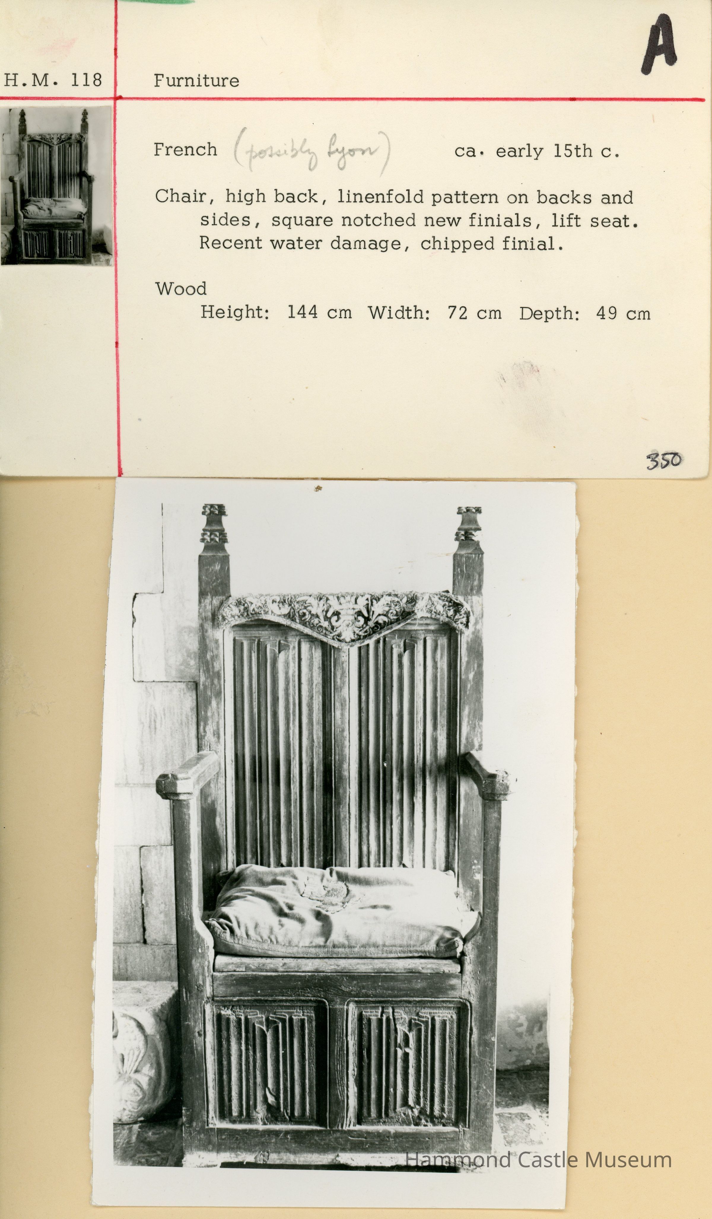 15th c. French Chair with "Folded Linen" PanelsEntry/Object ID