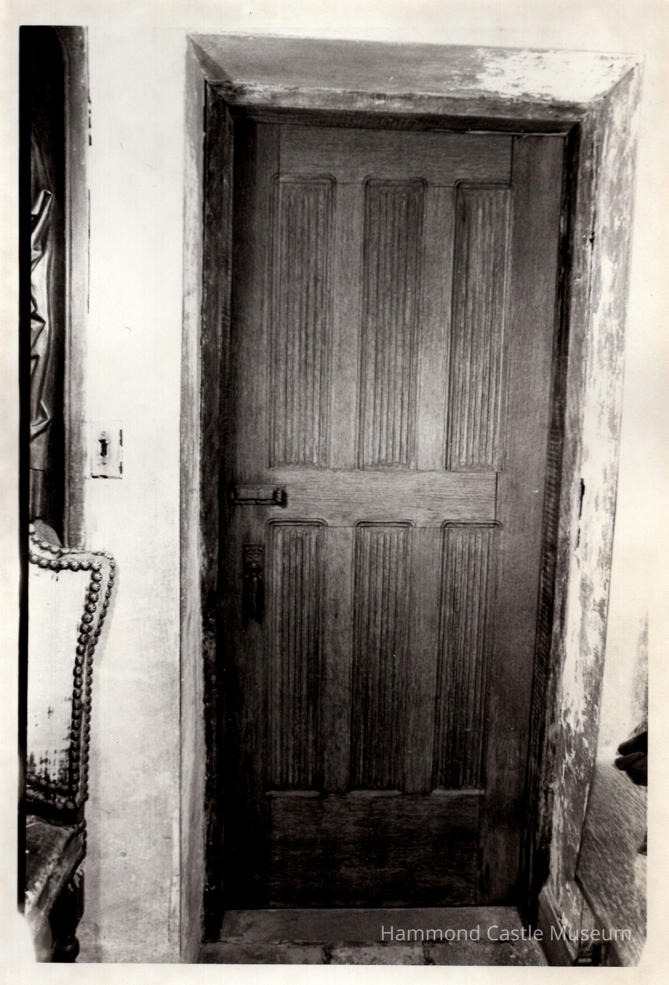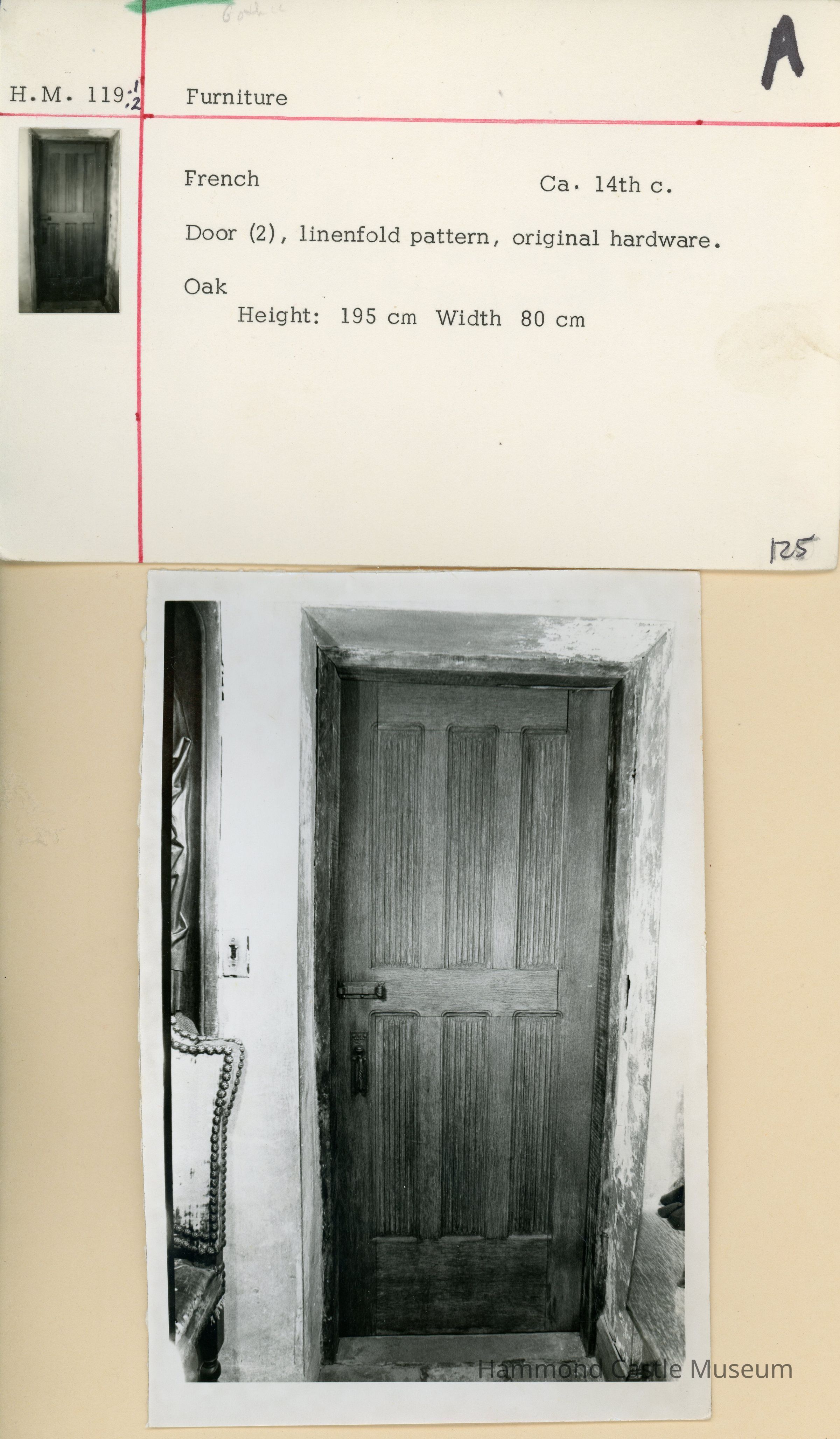 Set of 2 13c French wooden doors in Gothic Guestroom 6 paneled linenfold pattern, original hardware.