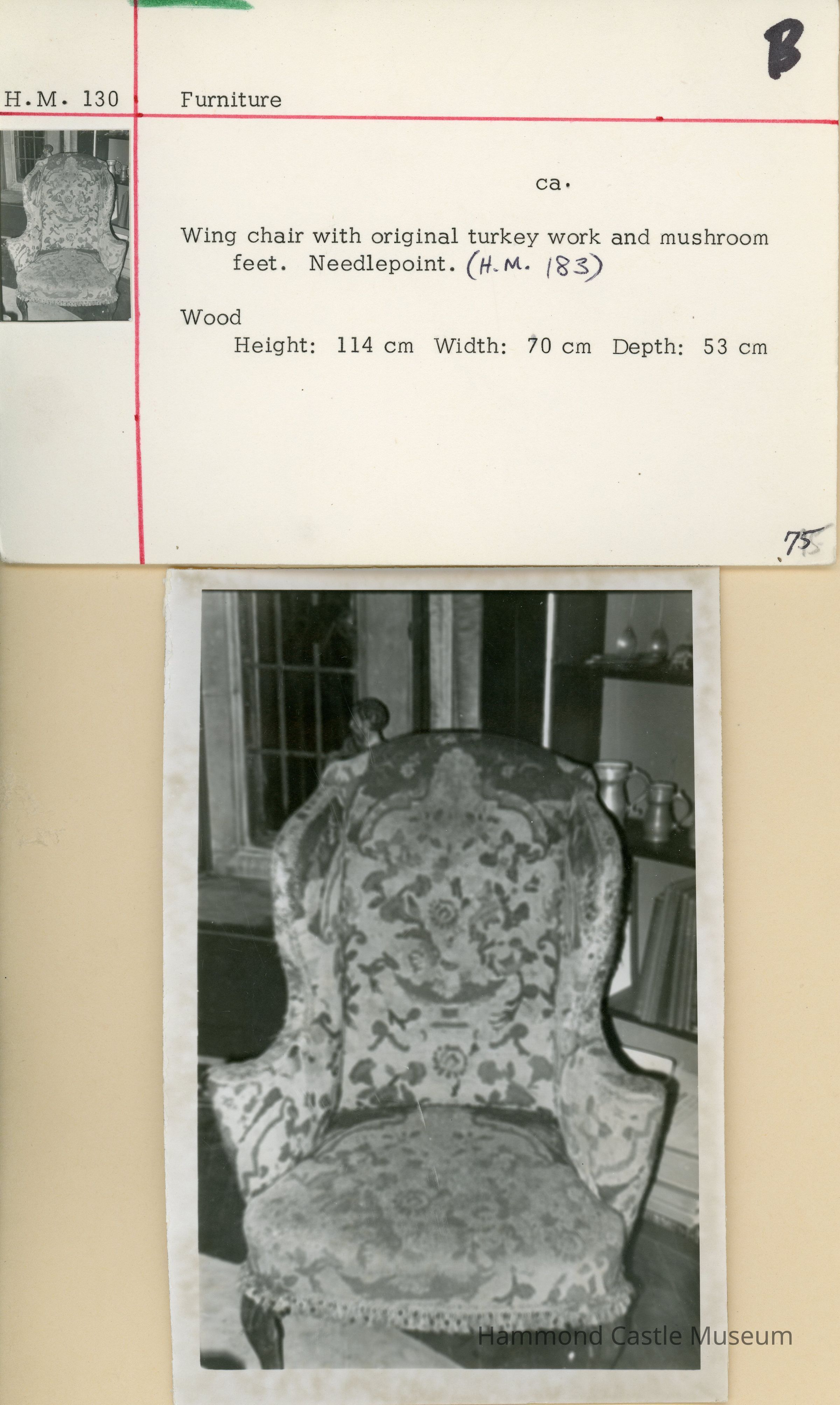 HM130 & HM183 turkey work wing chair w needlepoint (1983 condition report)