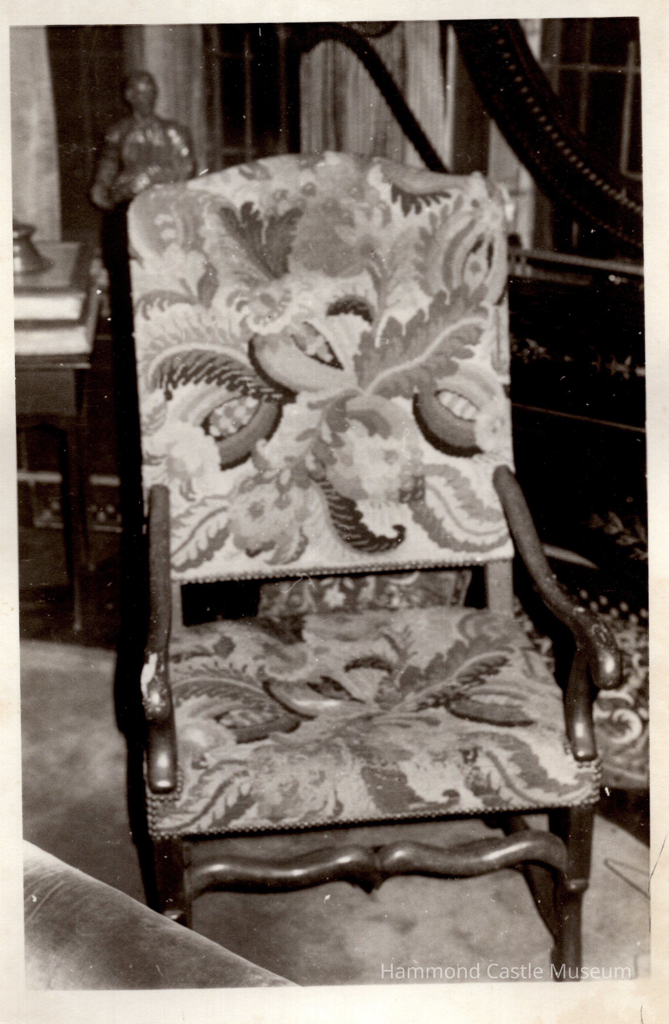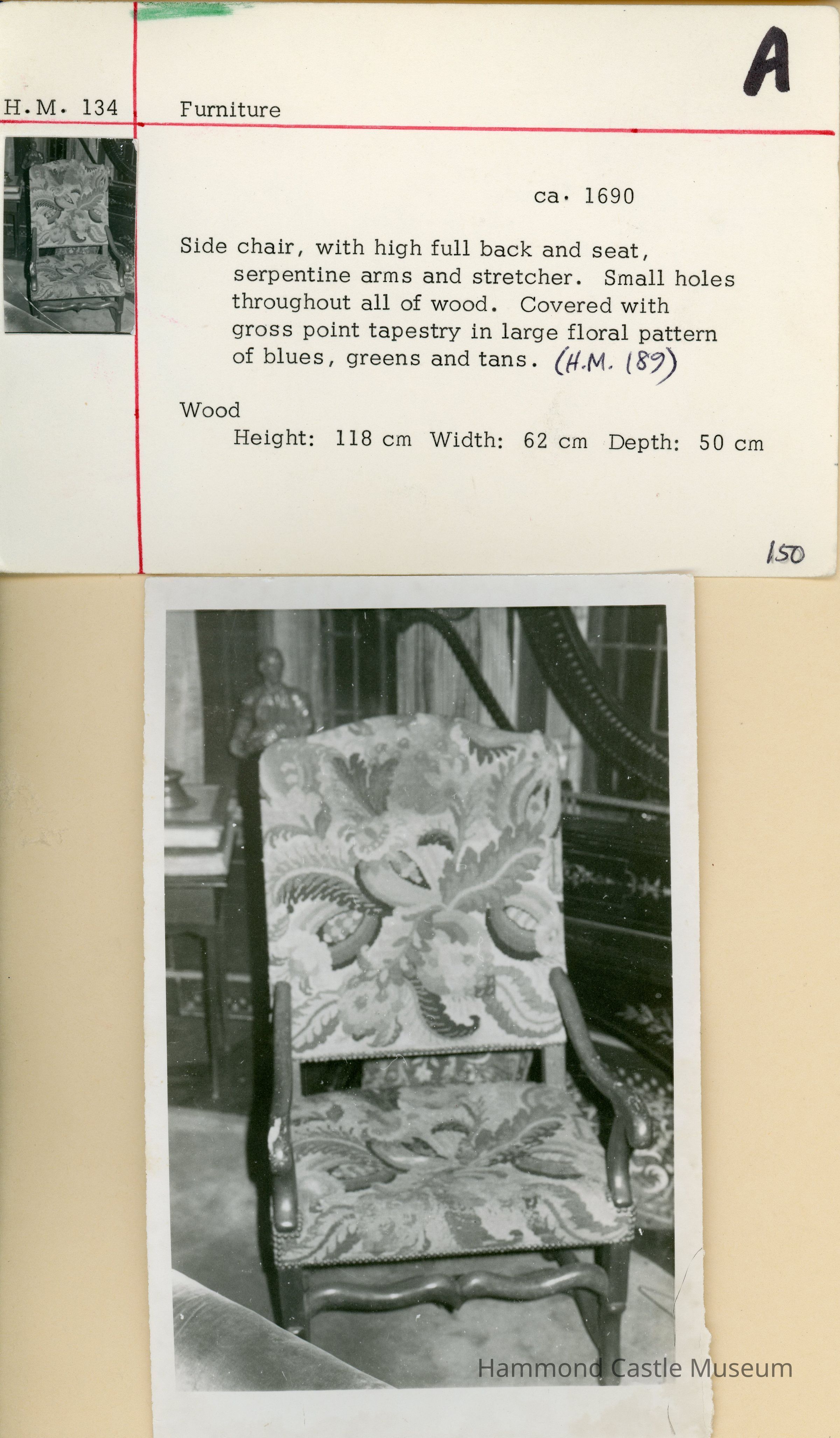 HM134 chair w serpentine arms & HM 189 tapestry (1983 condition report)