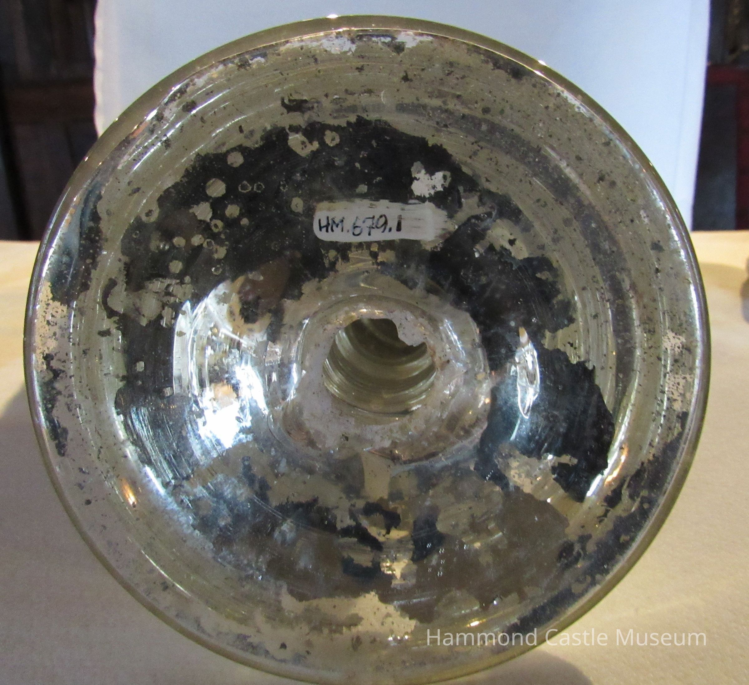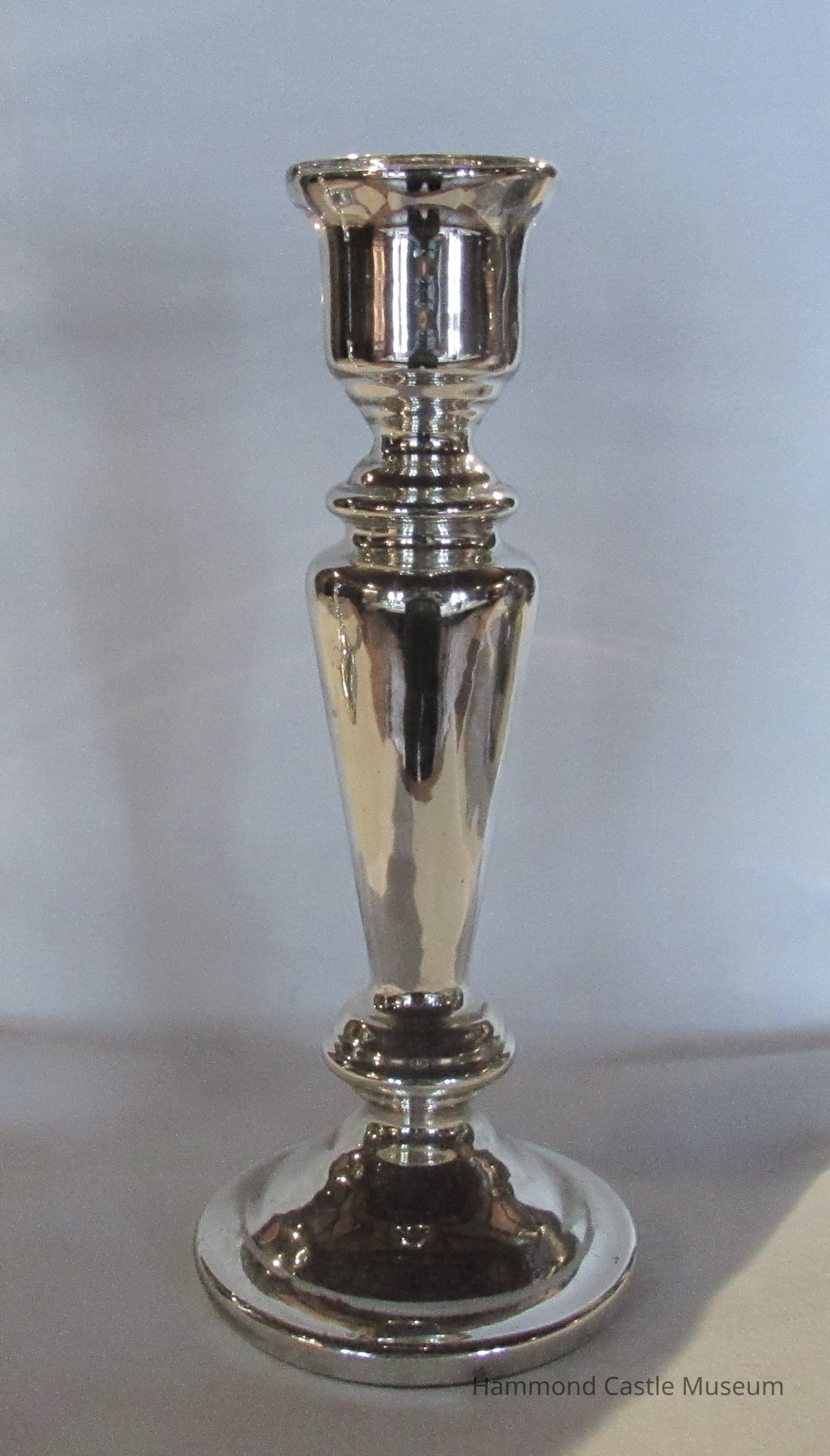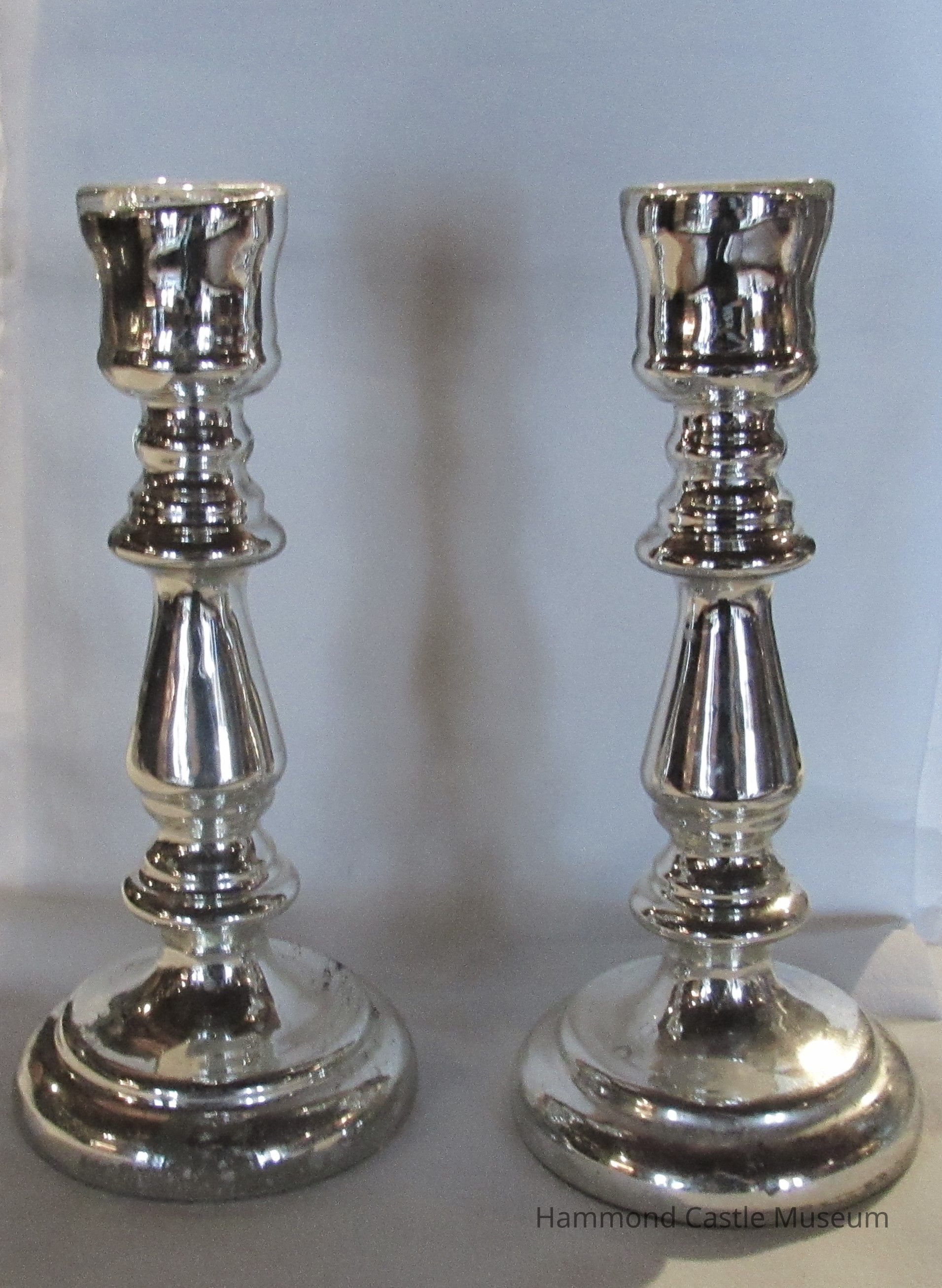 4 Tall Candlesticks Thick molding, hollow. Glass with silver coating. Glass overlay.