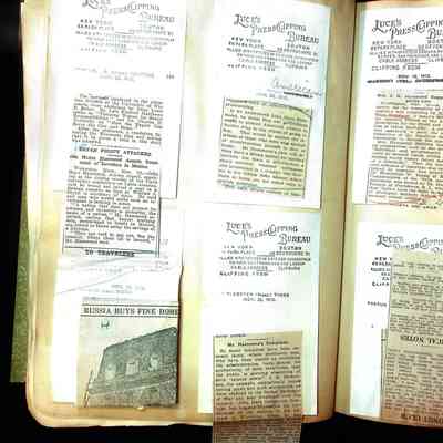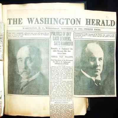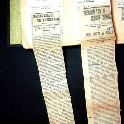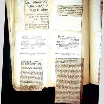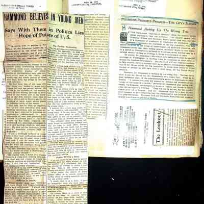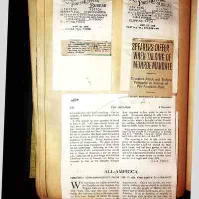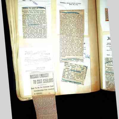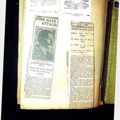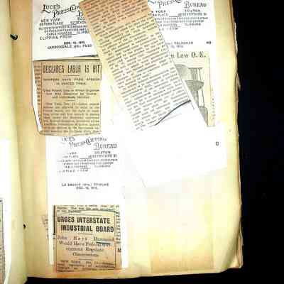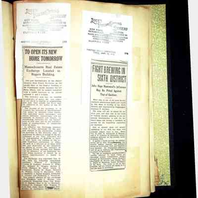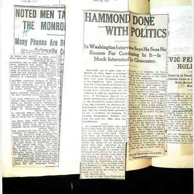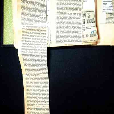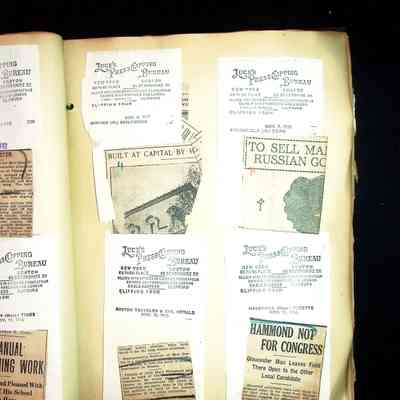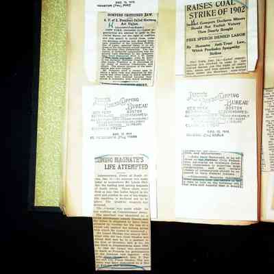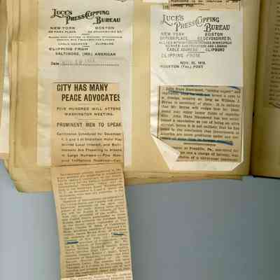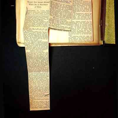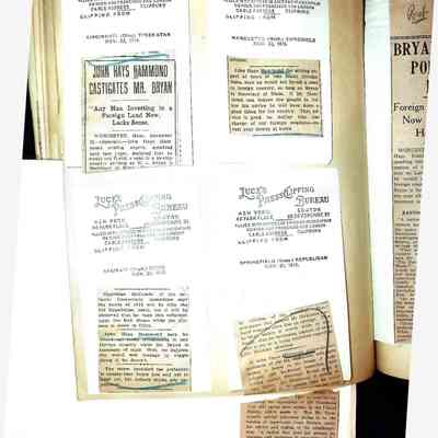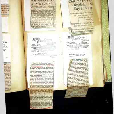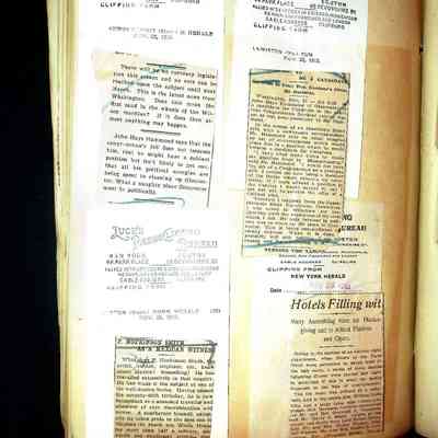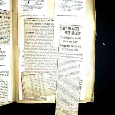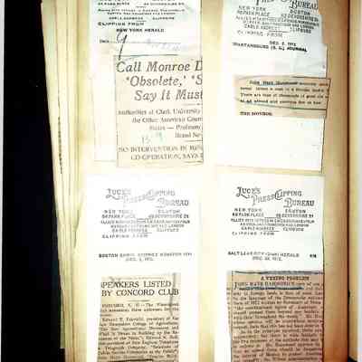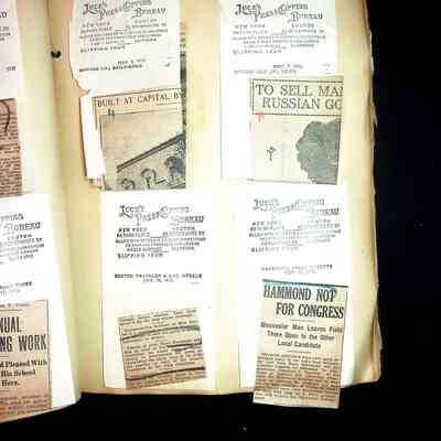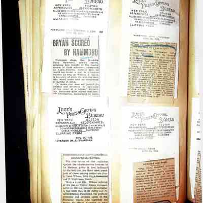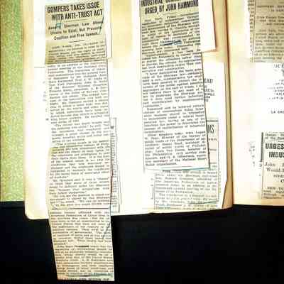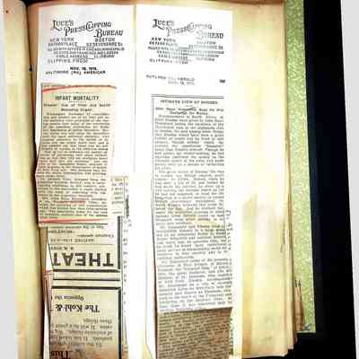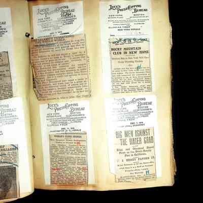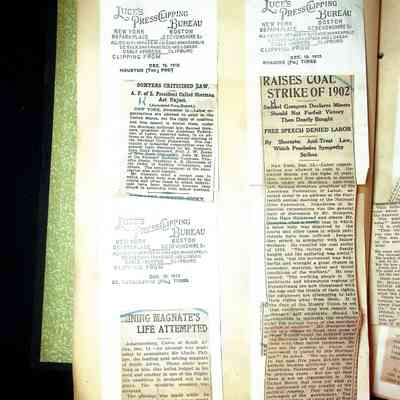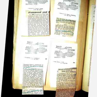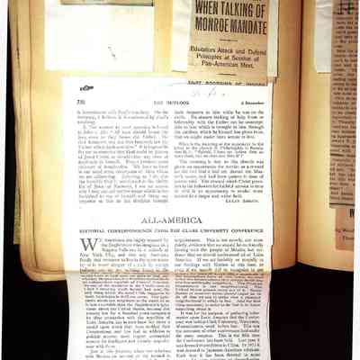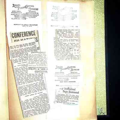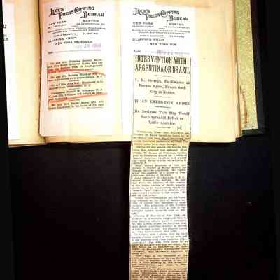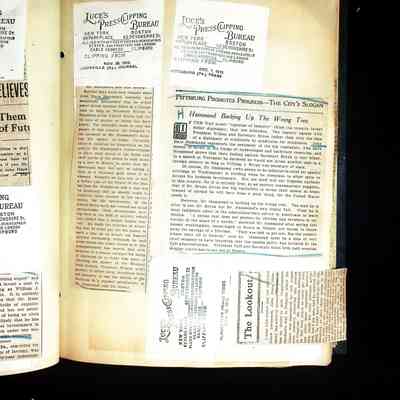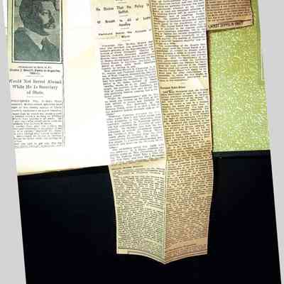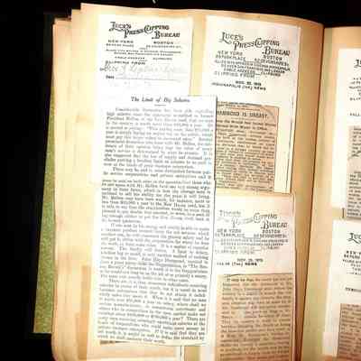 1913 scrapbook of newspaper articles about John Hays Hammond (Sr) and Mrs. Hammond covering governmental policies, Sherman Act, Eugenics & politics.