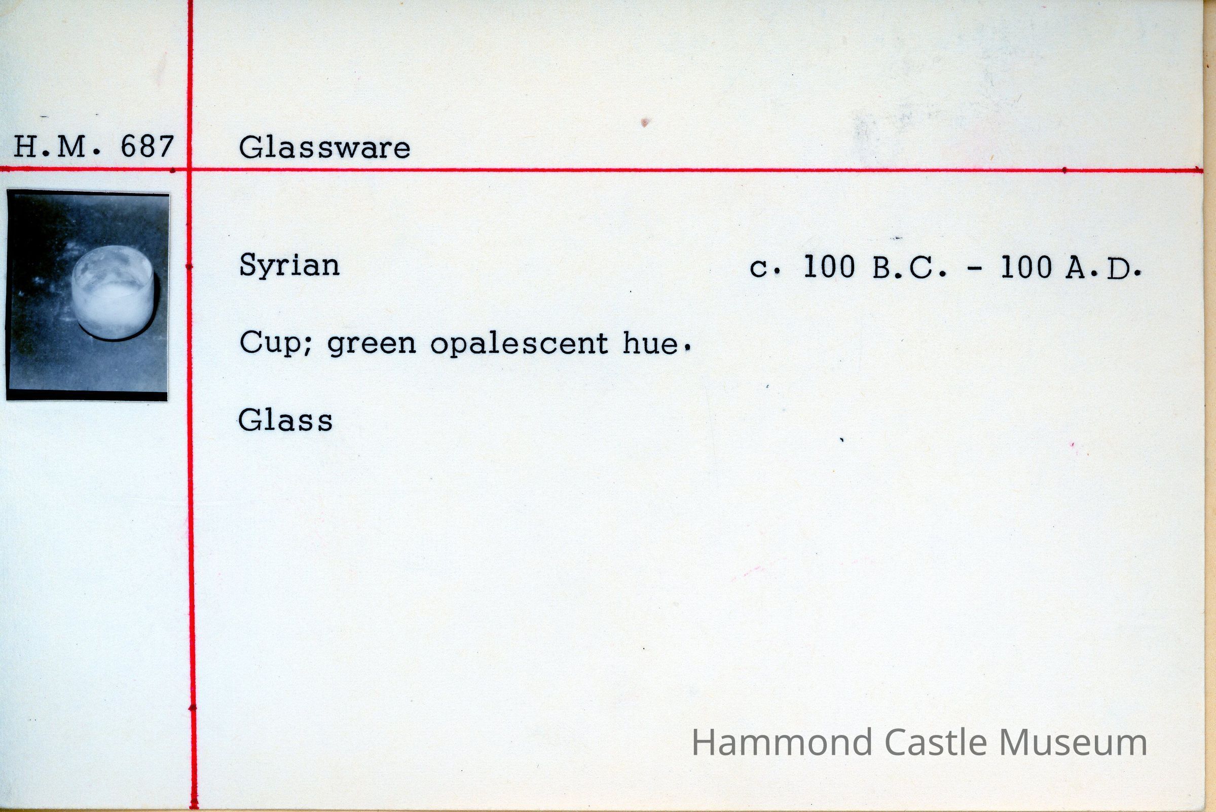 Cup; green opalescent hue. Ancient Syrian or Roman 100 BC - 100 AD/CE