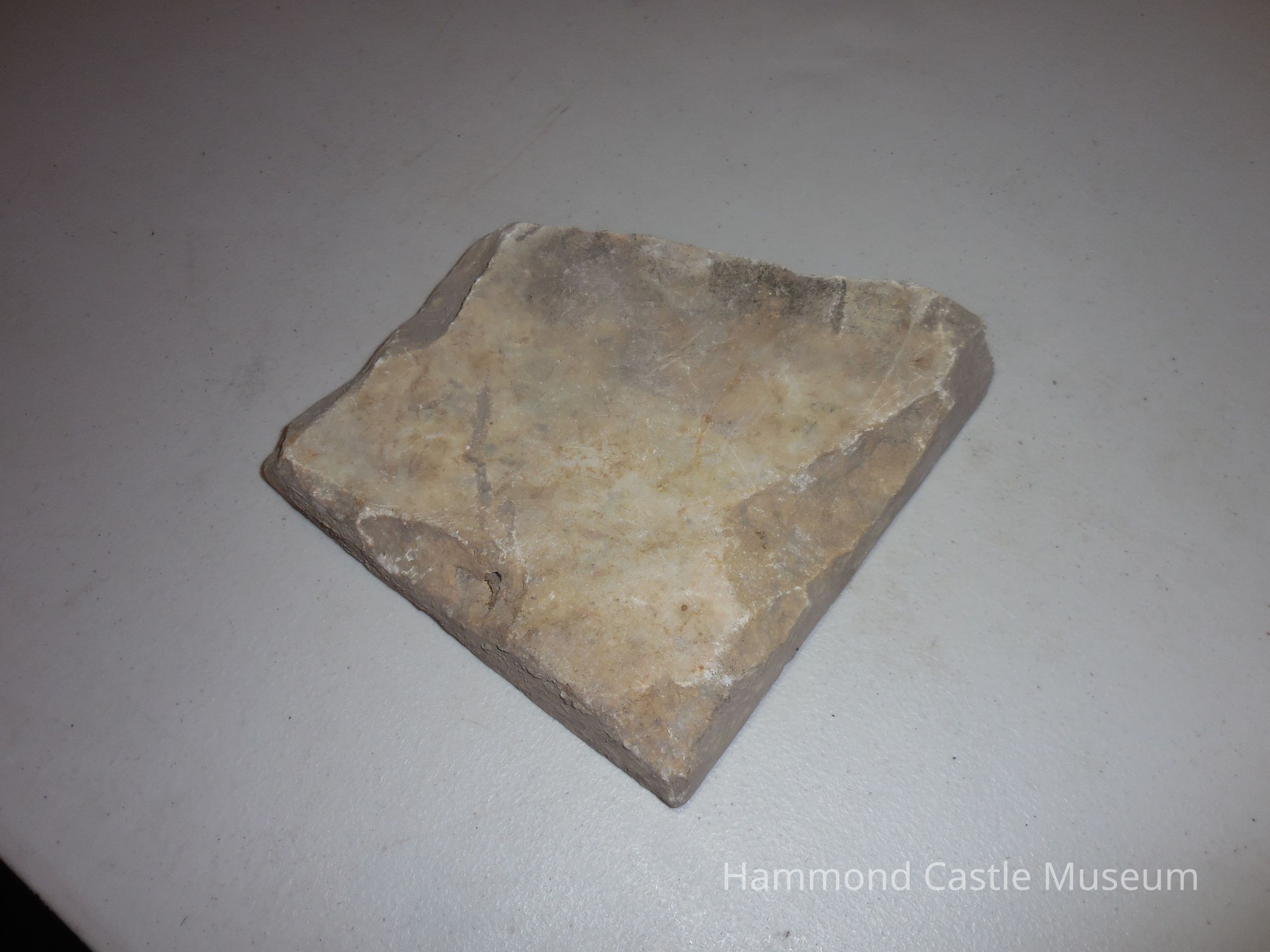 Marble fragment with inscription (in record-storage closet) 'Reportedly Roman, but possibly forgery inscribed - ENL II TECIT * no translation