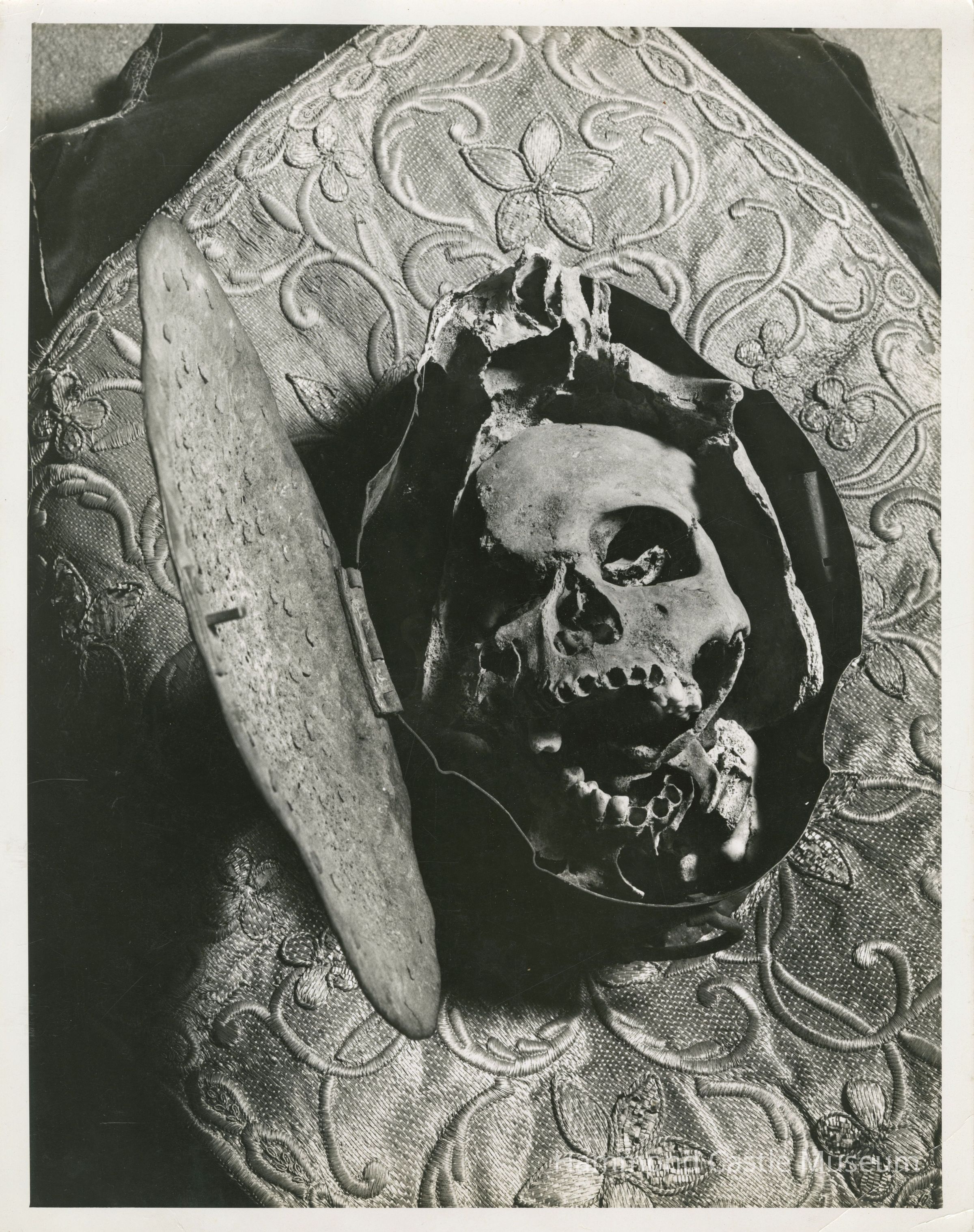 This skull was presented as a gift to Mr. Hammond during his travels in the Caribbean. It was claimed to be from a member of Christopher Columbus' crew.